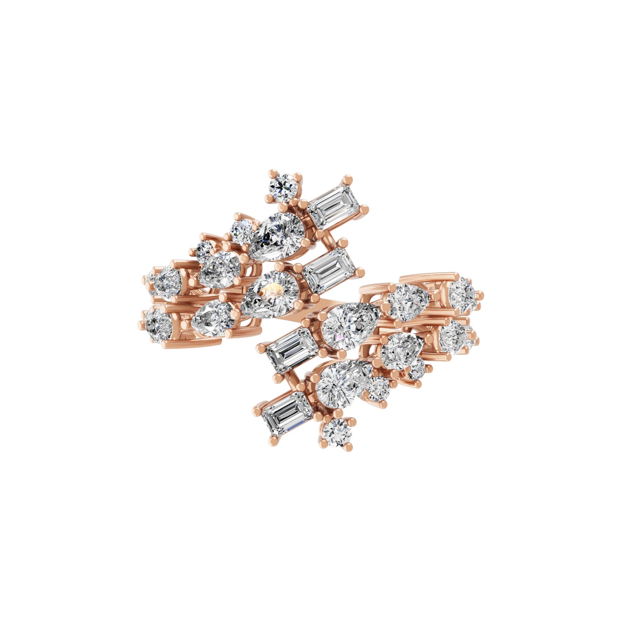 14k Fine Gold Lab Grown Diamond Multi Shaped 1.87Ct Prong Setting Bypass Ring