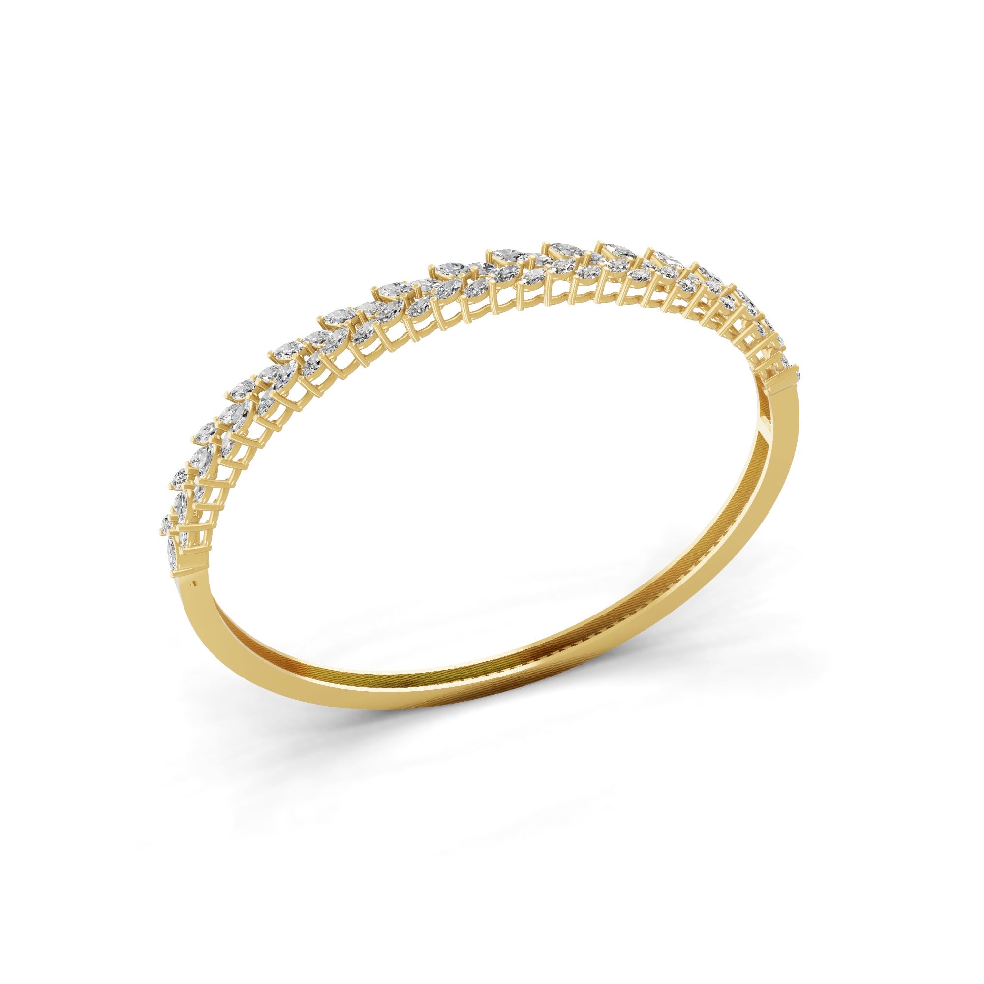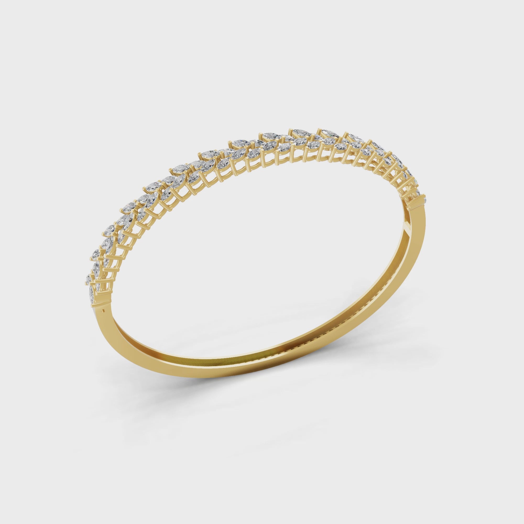 Marquise Cut Lab Grown Diamond 4.34Ct Bypass Bangle 14K Fine Gold Bracelet
