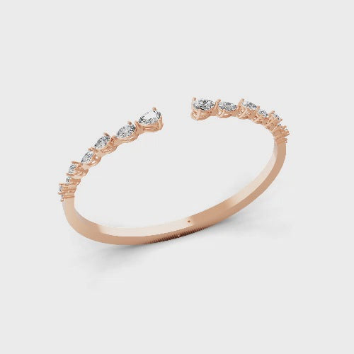 3.10Ct Lab Grown Diamond Pear Shaped Cuff Bangle Bracelet 14K Fine Gold