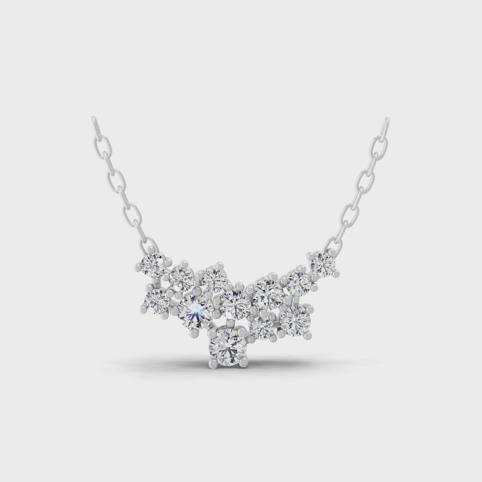 14K Fine Gold Cluster Pendant Chain Necklace 0.64Ct Lab Grown Diamond
