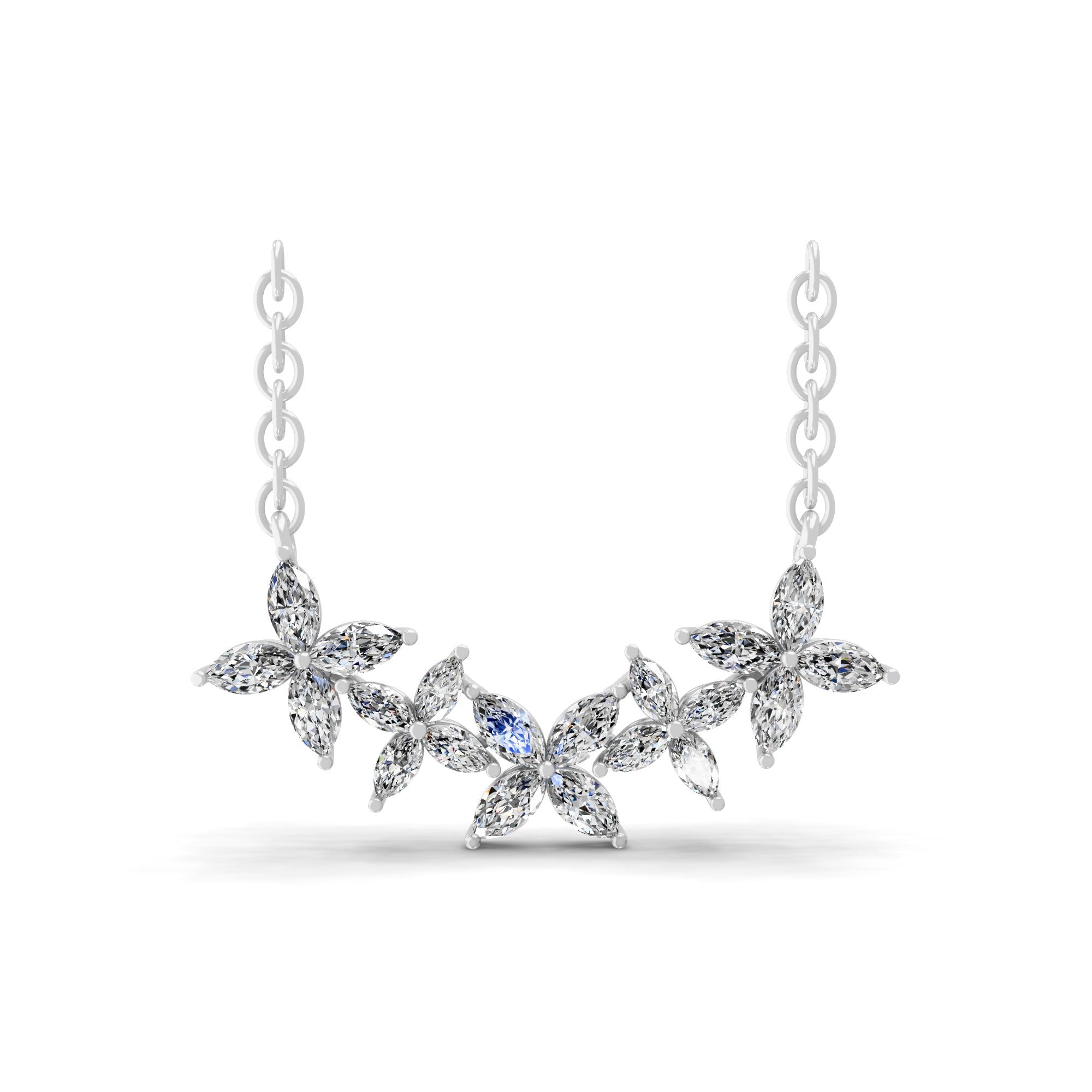 Butterfly Marquise Cut Cluster Necklace 14K Gold Lab Grown Diamond 3.38Ct