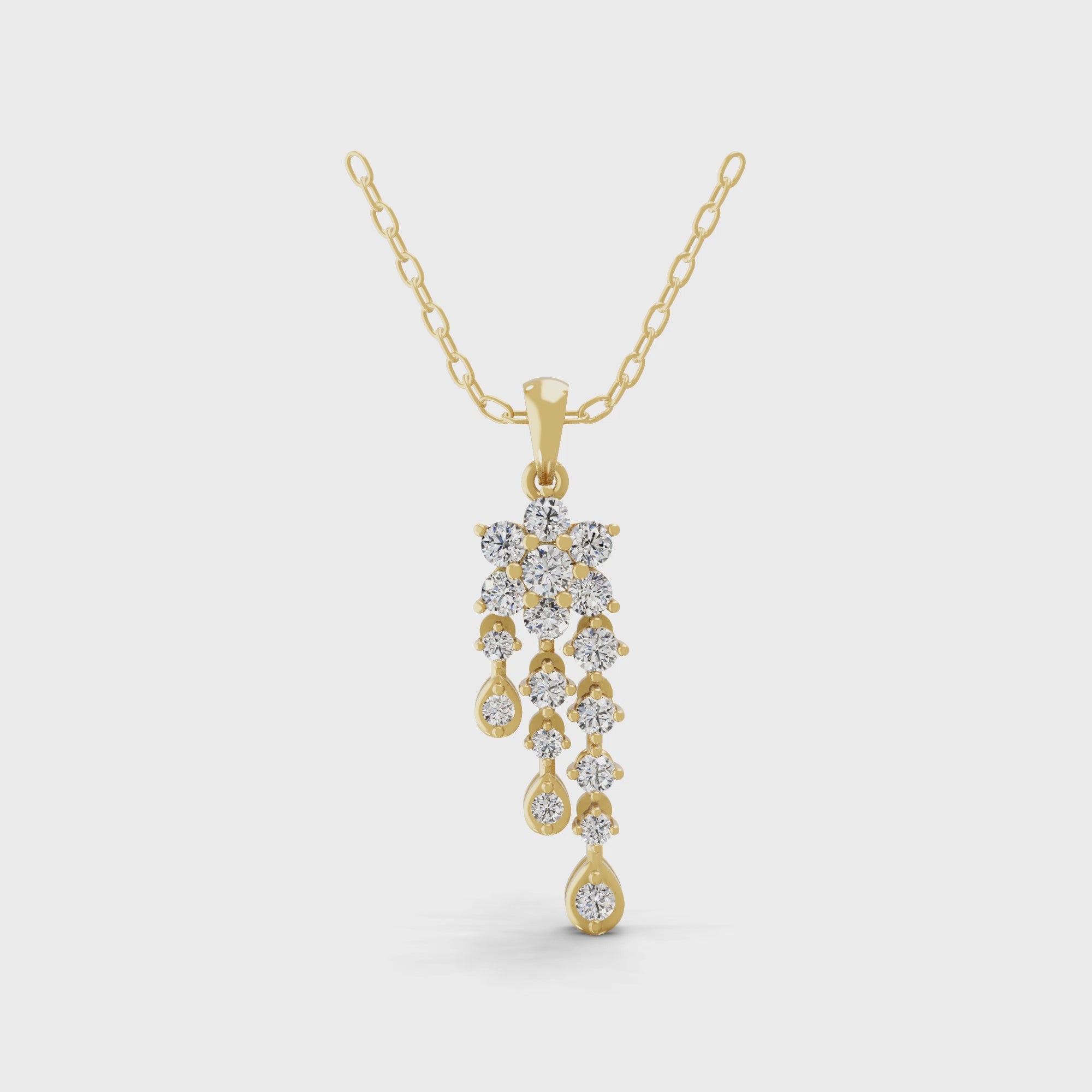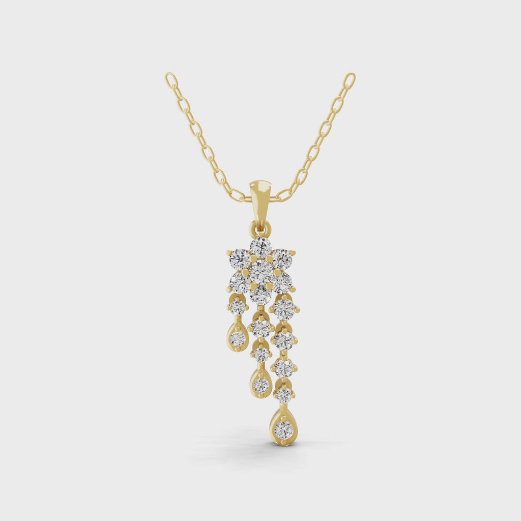 Floral Motifs Pendant Necklace 14K Fine Gold 0.77Ct Lab Grown Diamond
