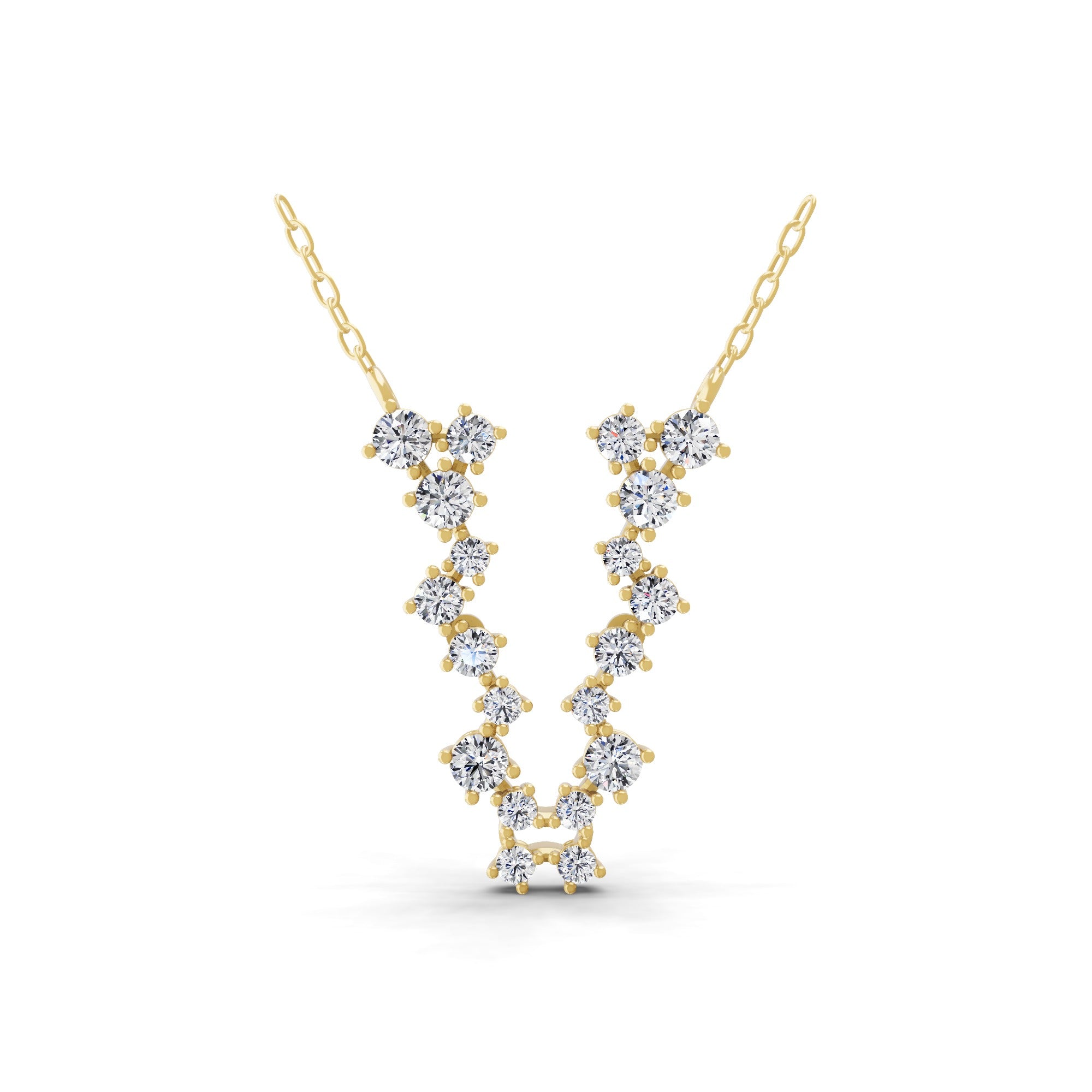 Round Cut Cluster Chain Necklace Lab Grown Diamond 1.27Ct 14K Fine Gold