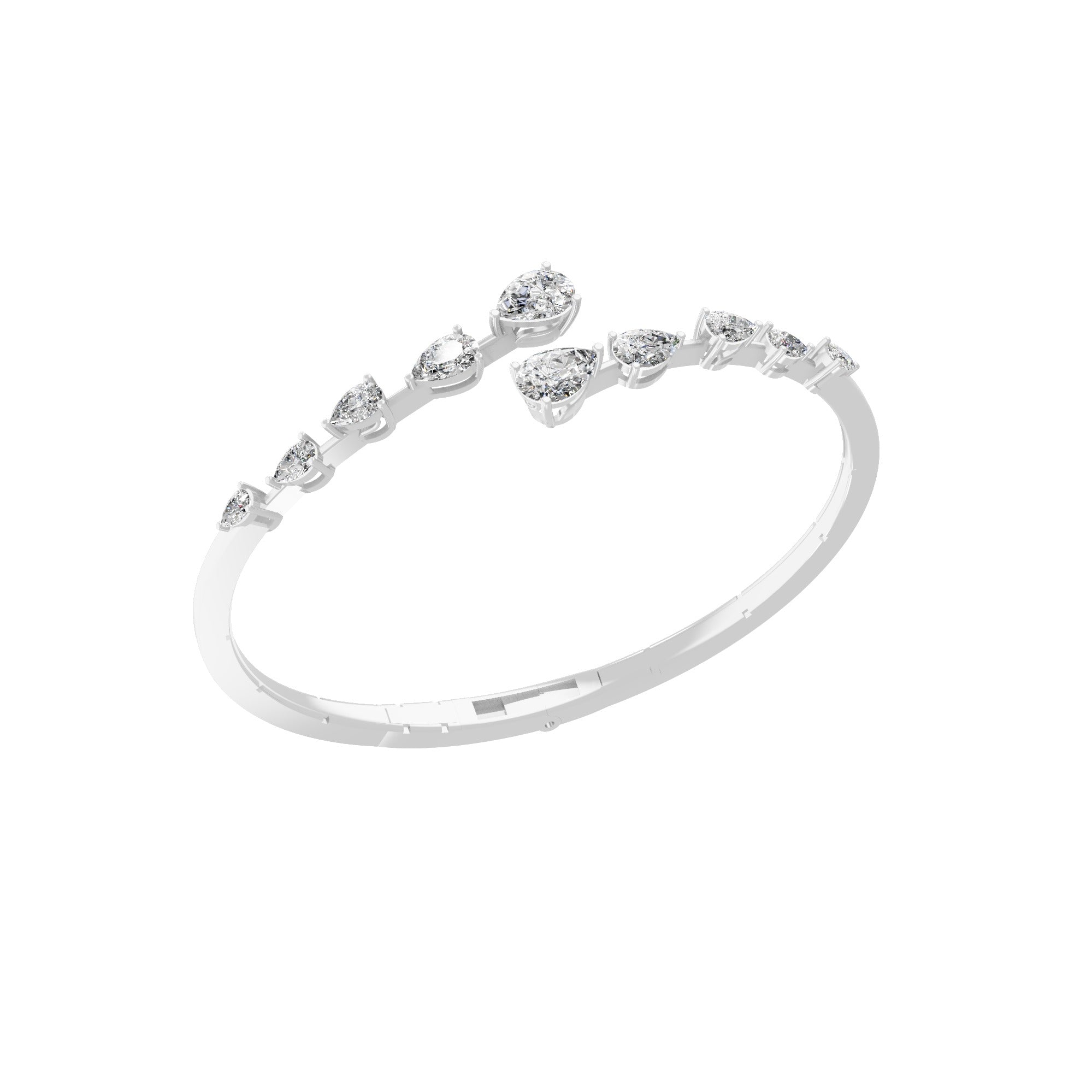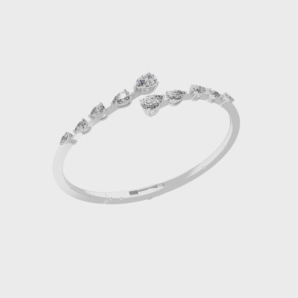 14K Fine Gold Lab Grown Diamond Pear Cut Bangle Cuff Bracelet 3.56Ct