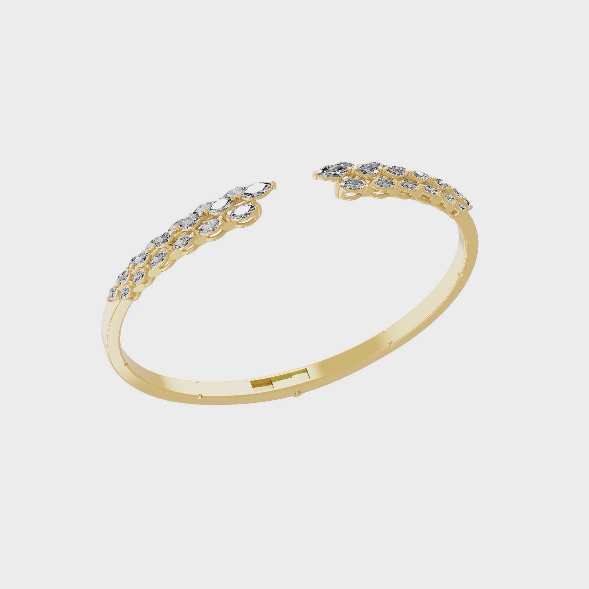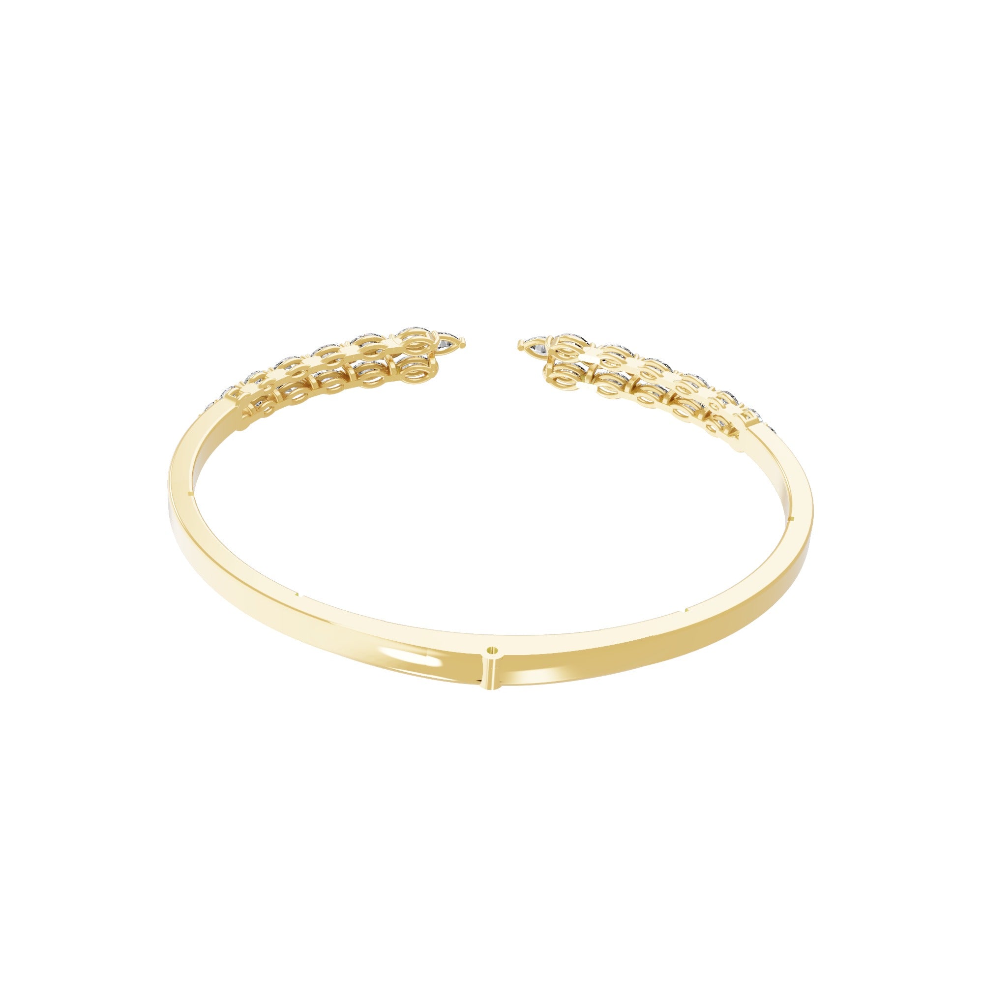 14K Fine Gold Lab Grown Diamond Studded Bypass Cuff Bangle bracelet 3.10Ct