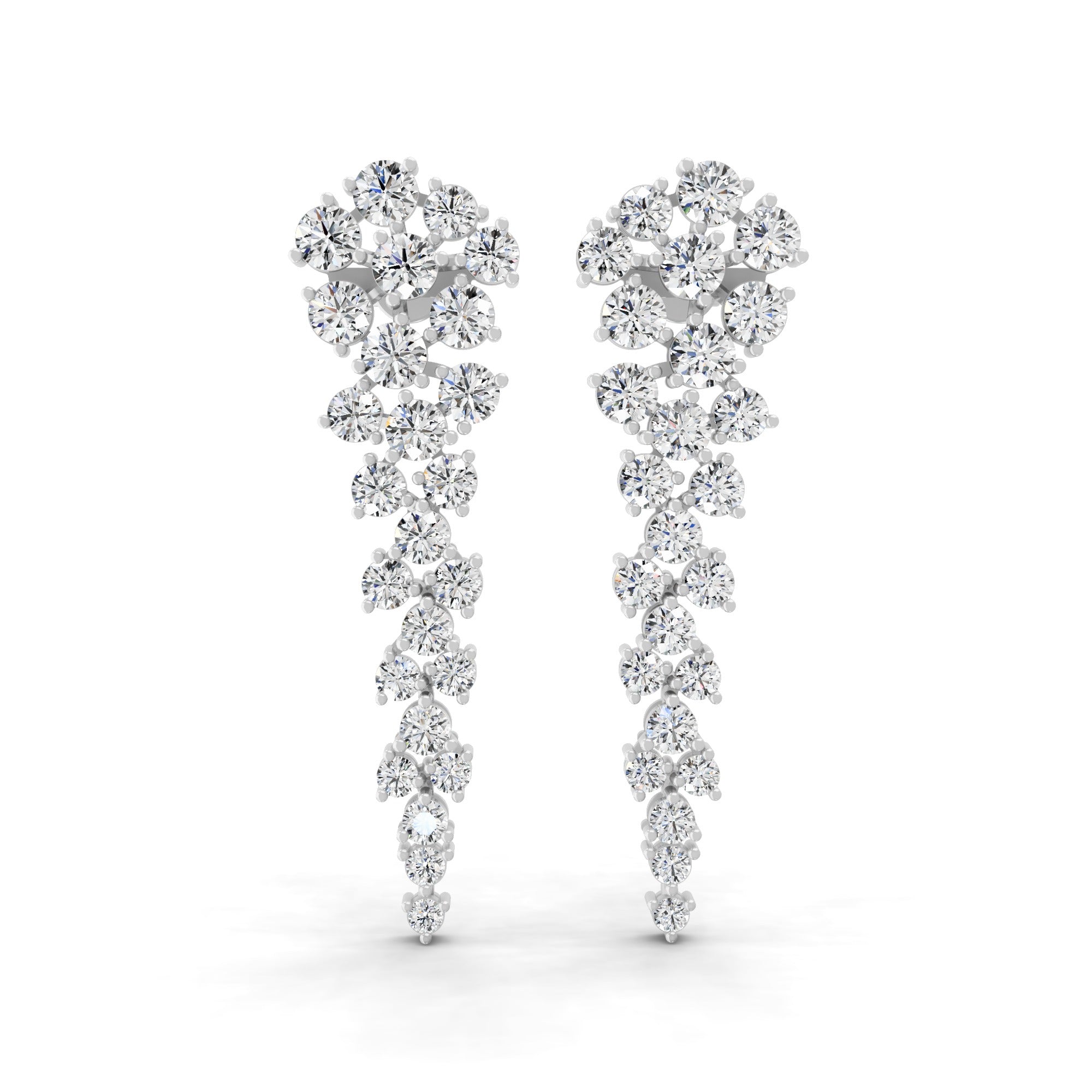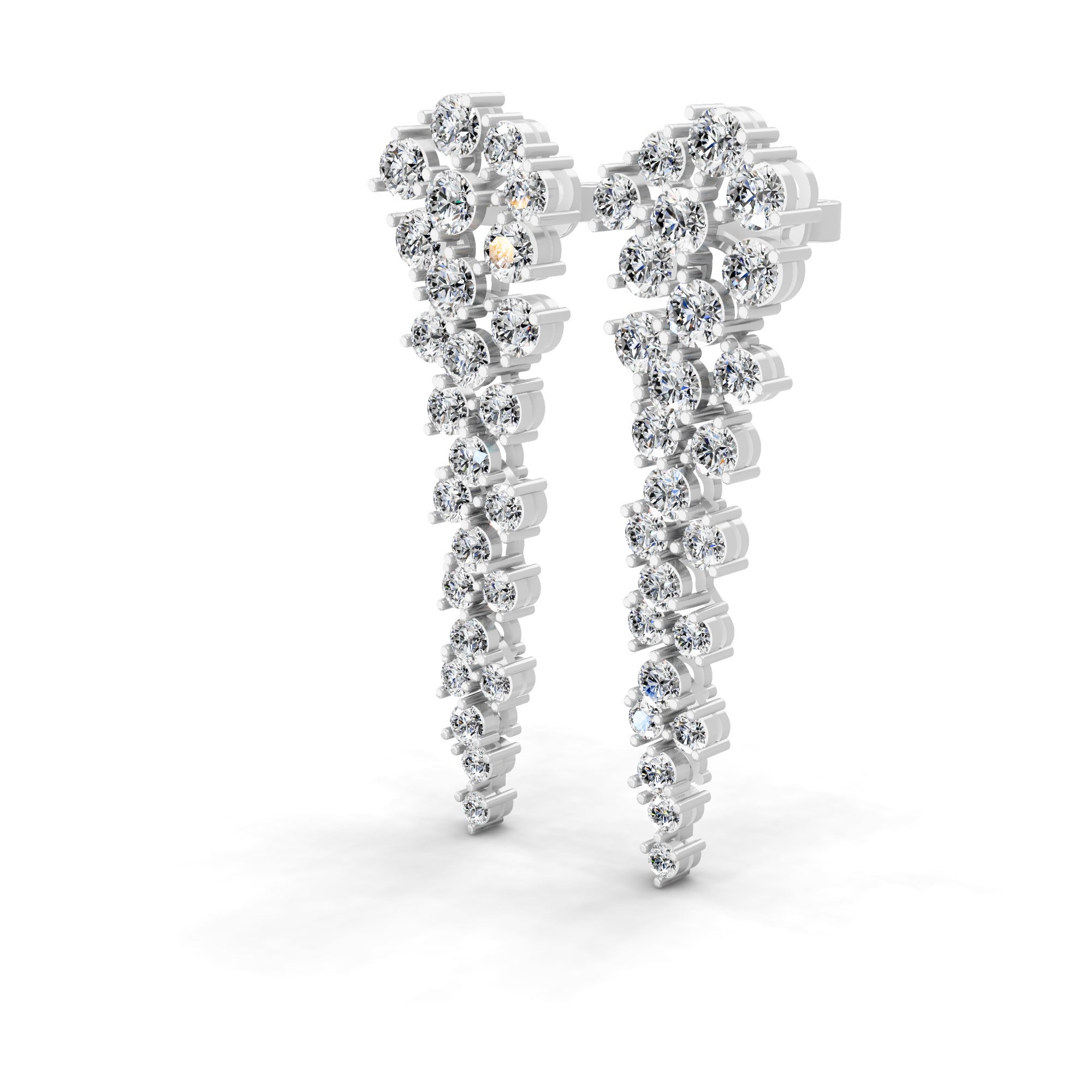 Dangle Drop Earrings Lab Grown Diamond Round Cut 14K Gold 3.79Ct