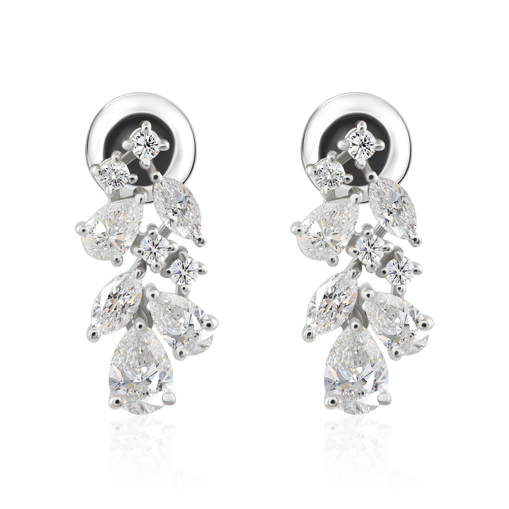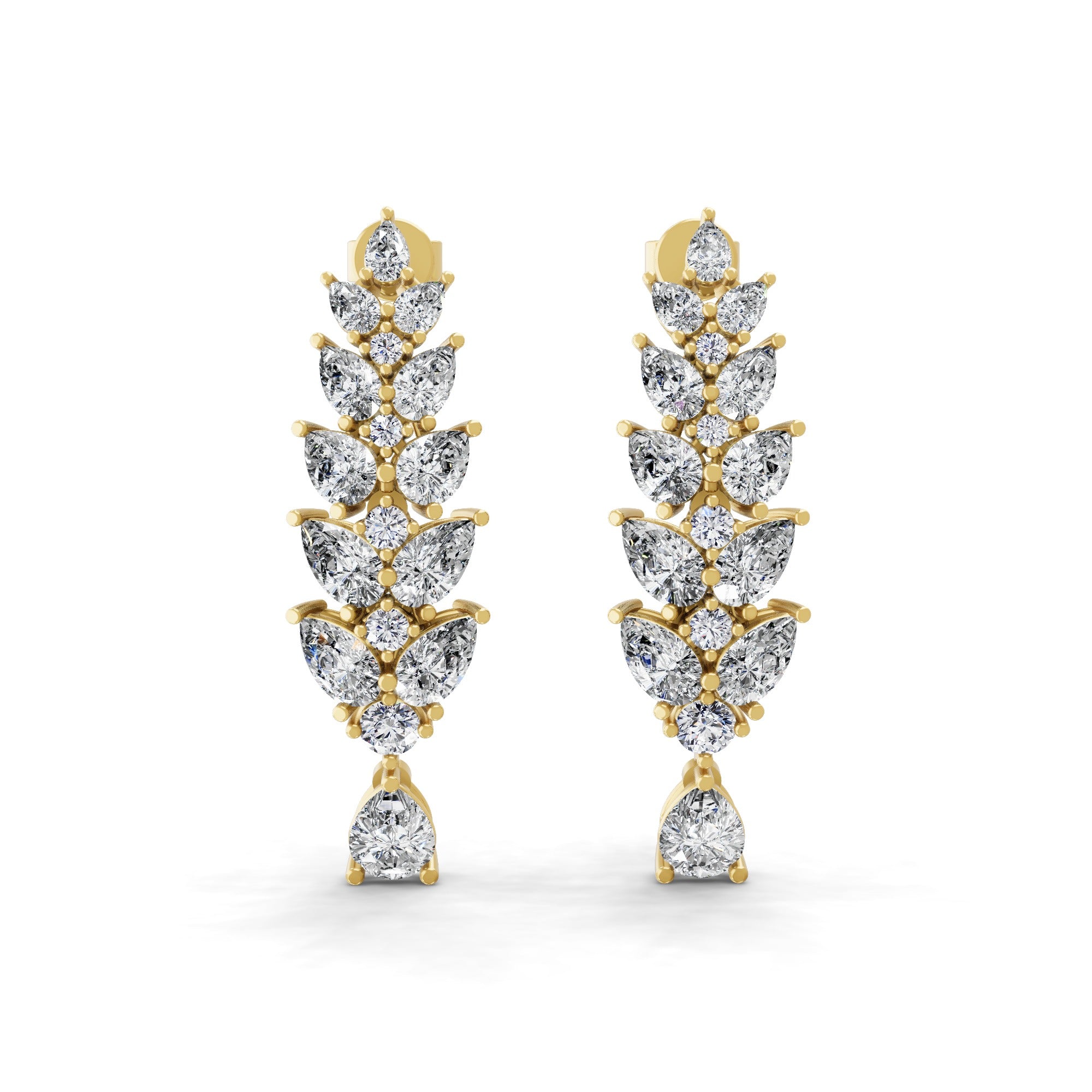 14K Fine Gold Cluster Leaf Dangle Earrings Lab Grown Diamond 4.51Ct