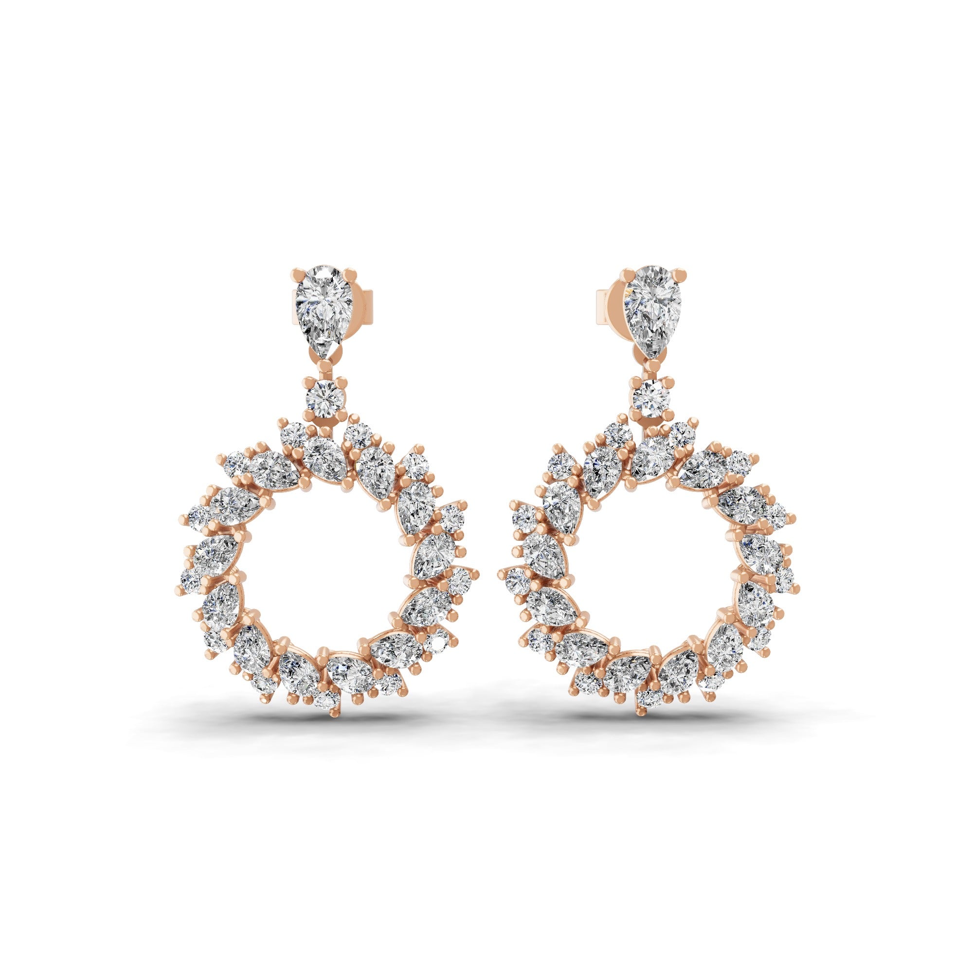 Lab Grown Diamond 14K Fine Gold Aerial Circle Dangle Earrings 2.73Ct