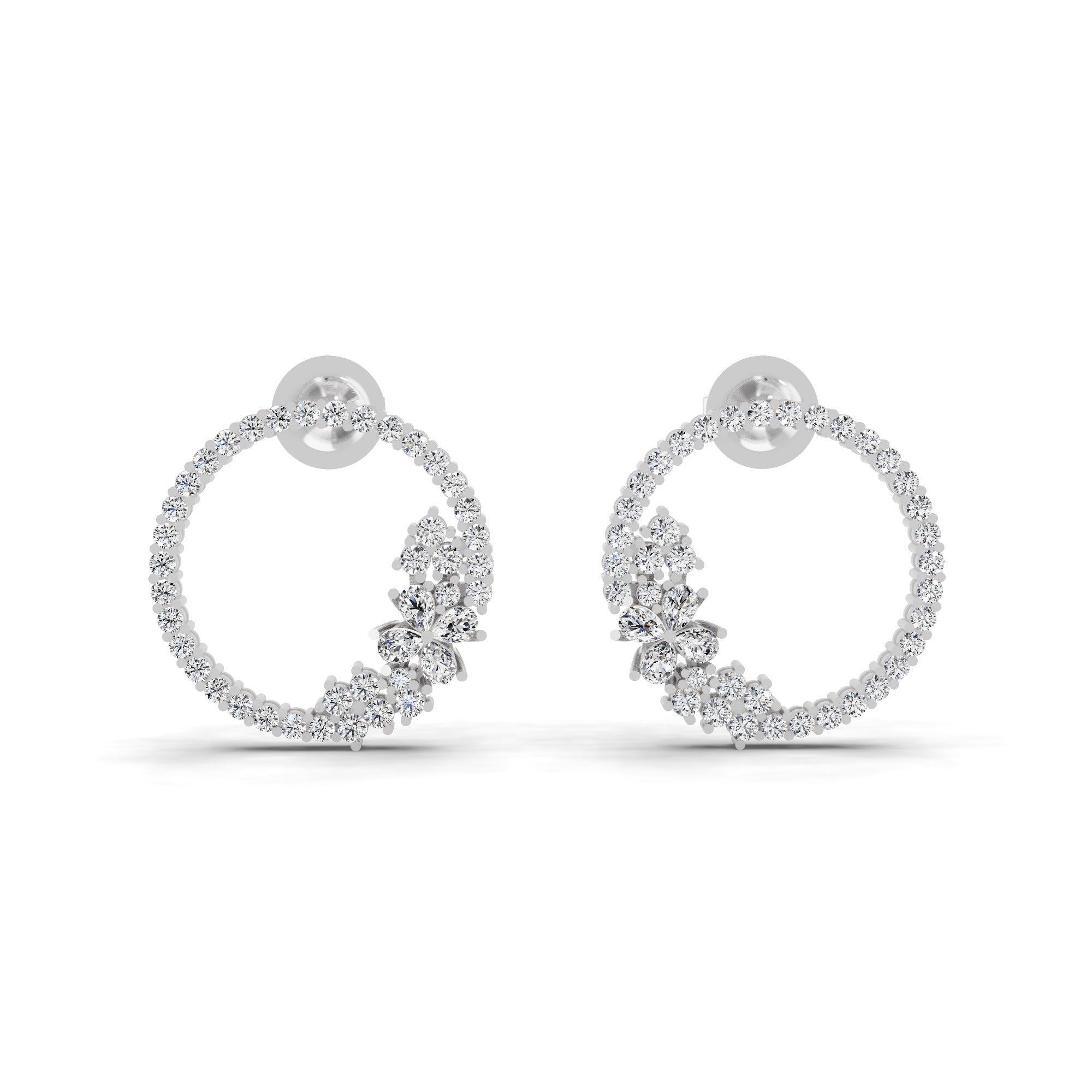 Lab Grown Diamond 1.91Ct Circle Floral Cluster Earrings 14K Fine Gold