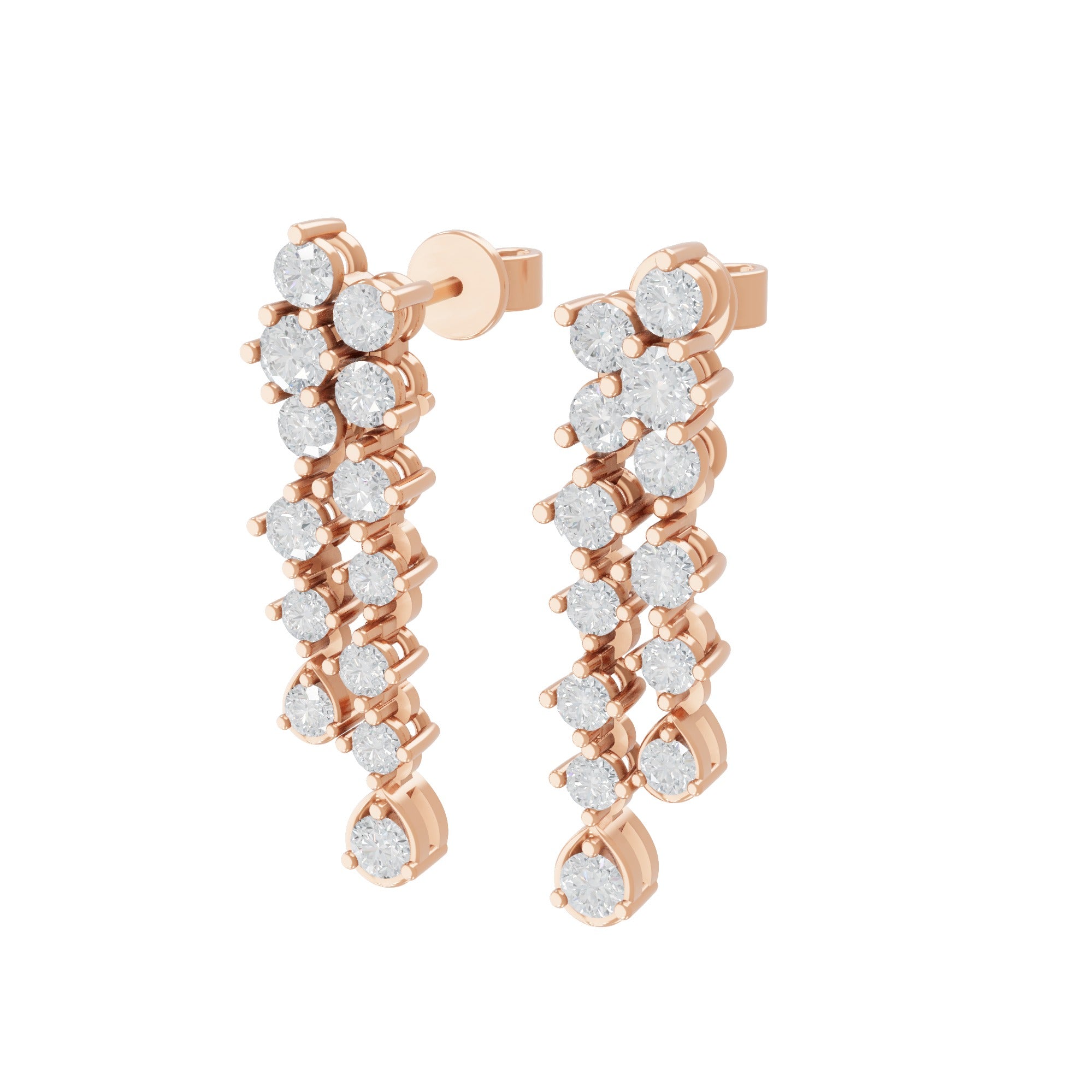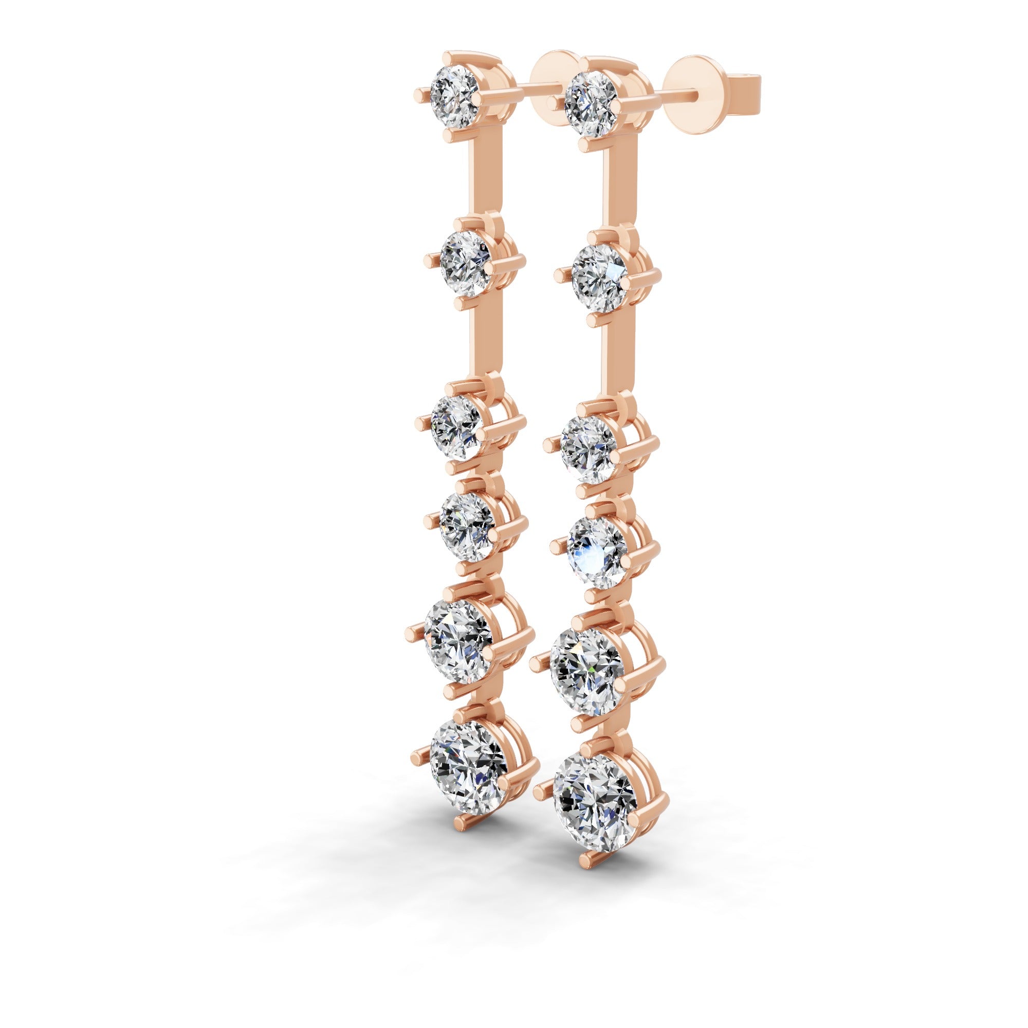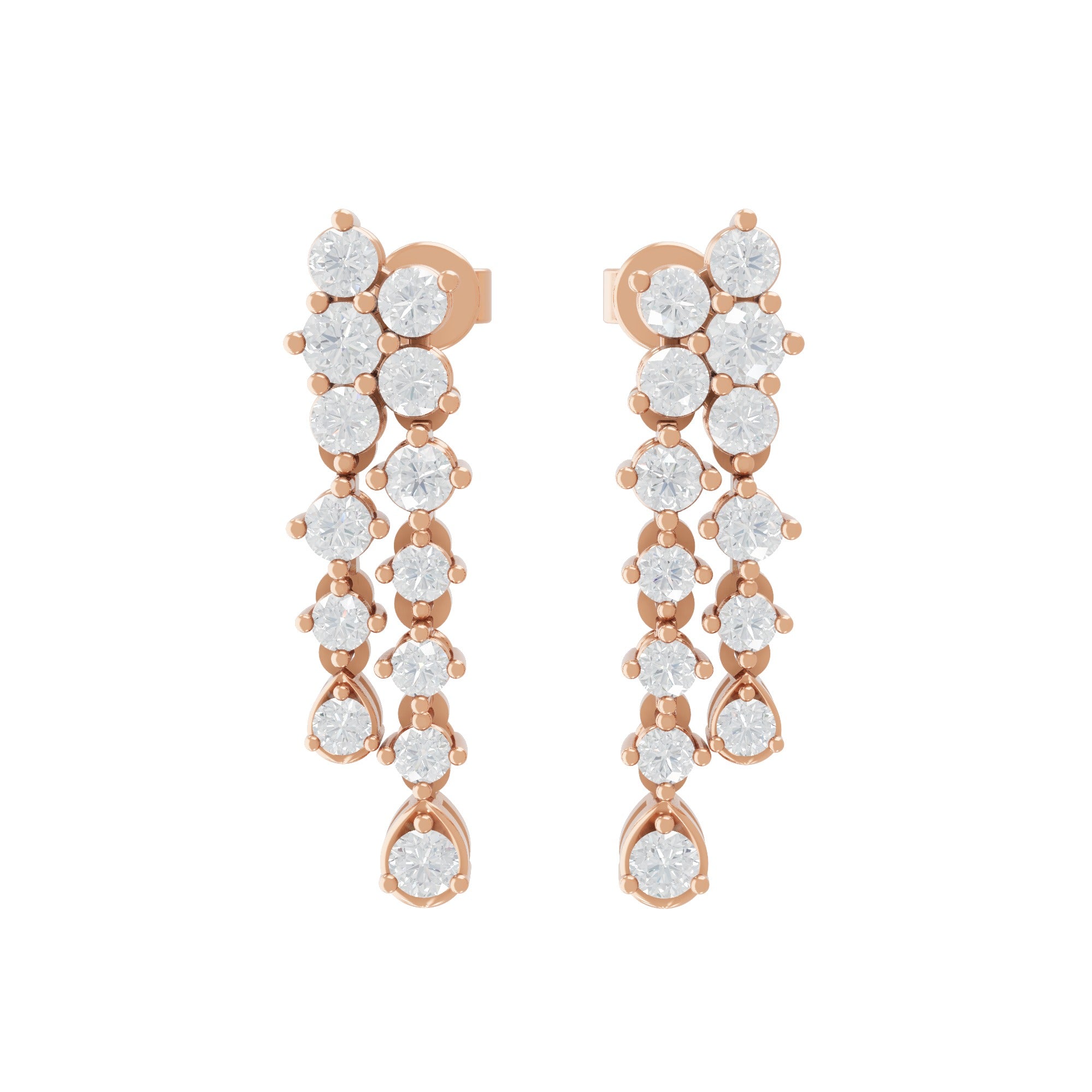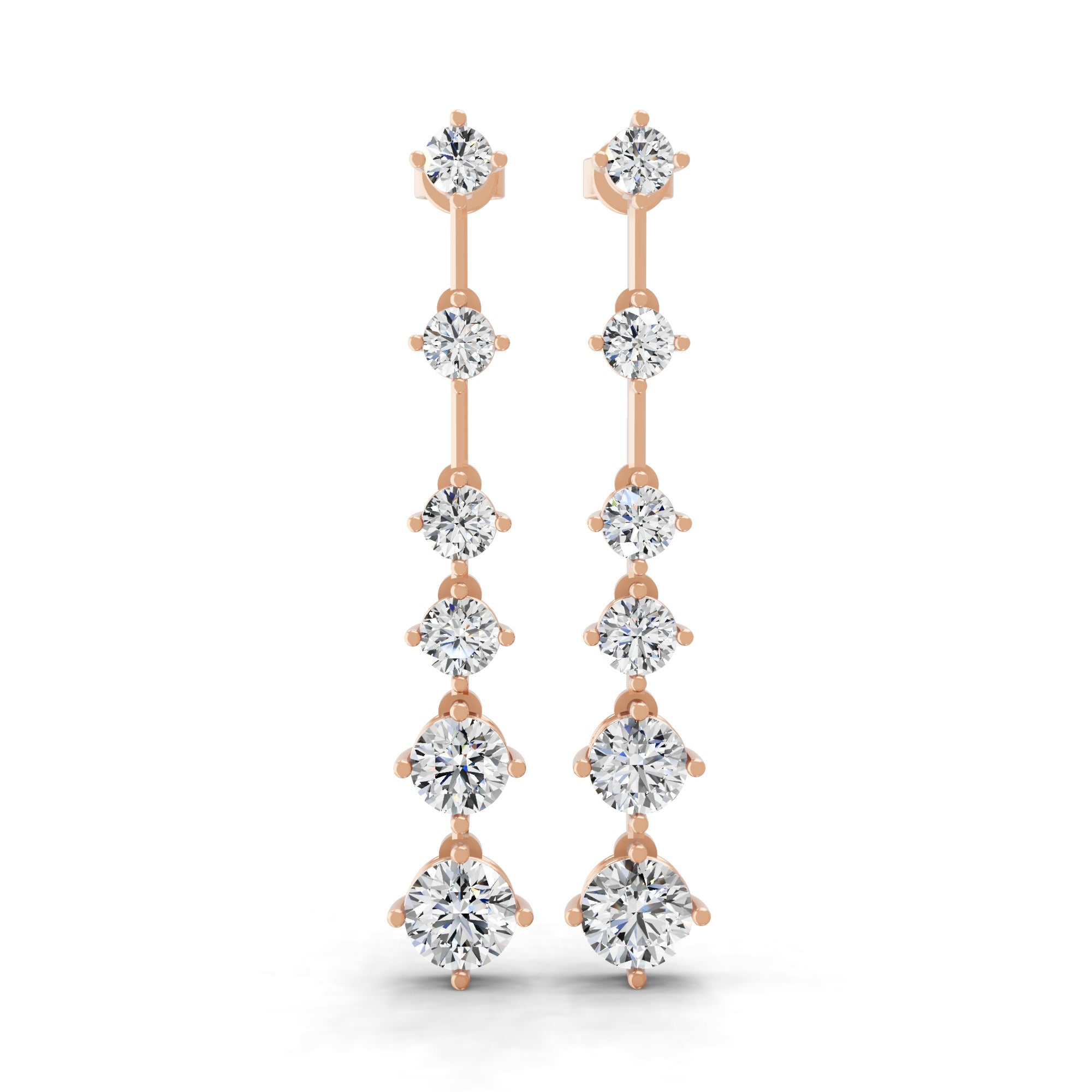 Graduated Lab Grown Round Diamond Dangle Earrings 3.30Ct 14K Gold