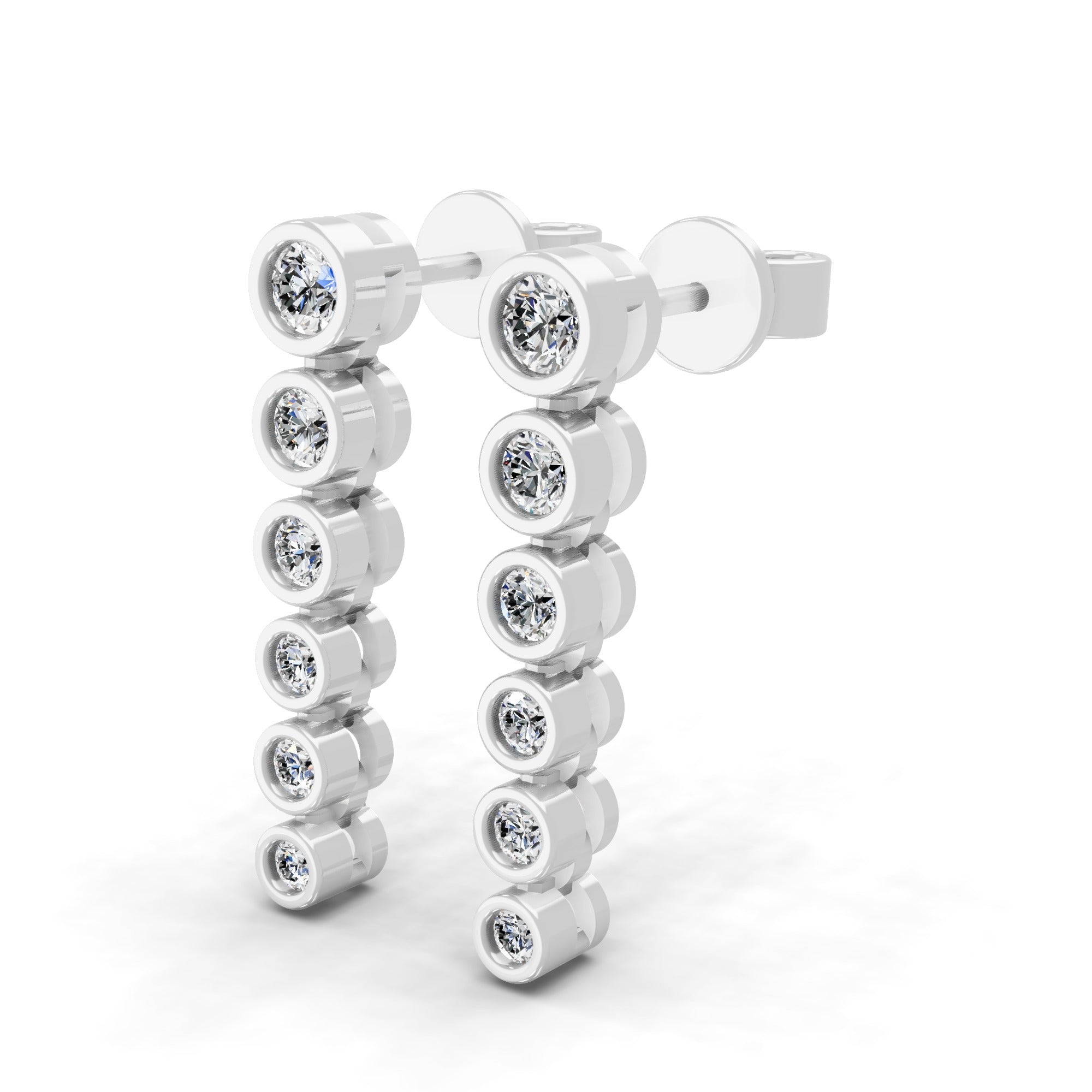 Bezel Set Lab Grown Round Cut Diamond 0.43Ct Drop Earrings 14K Fine Gold