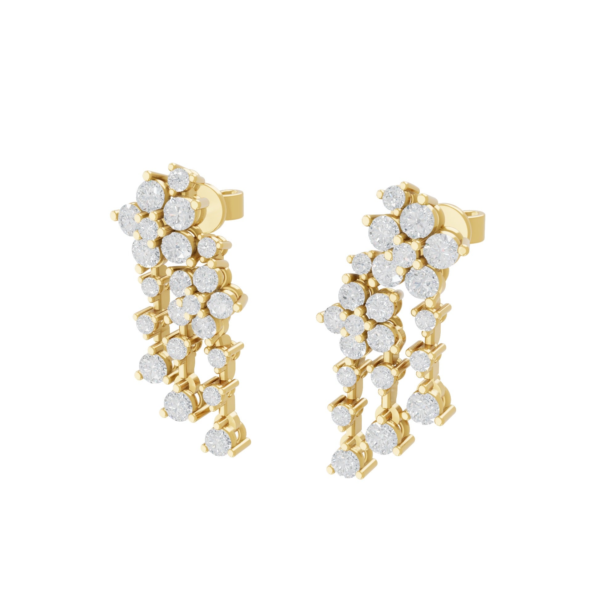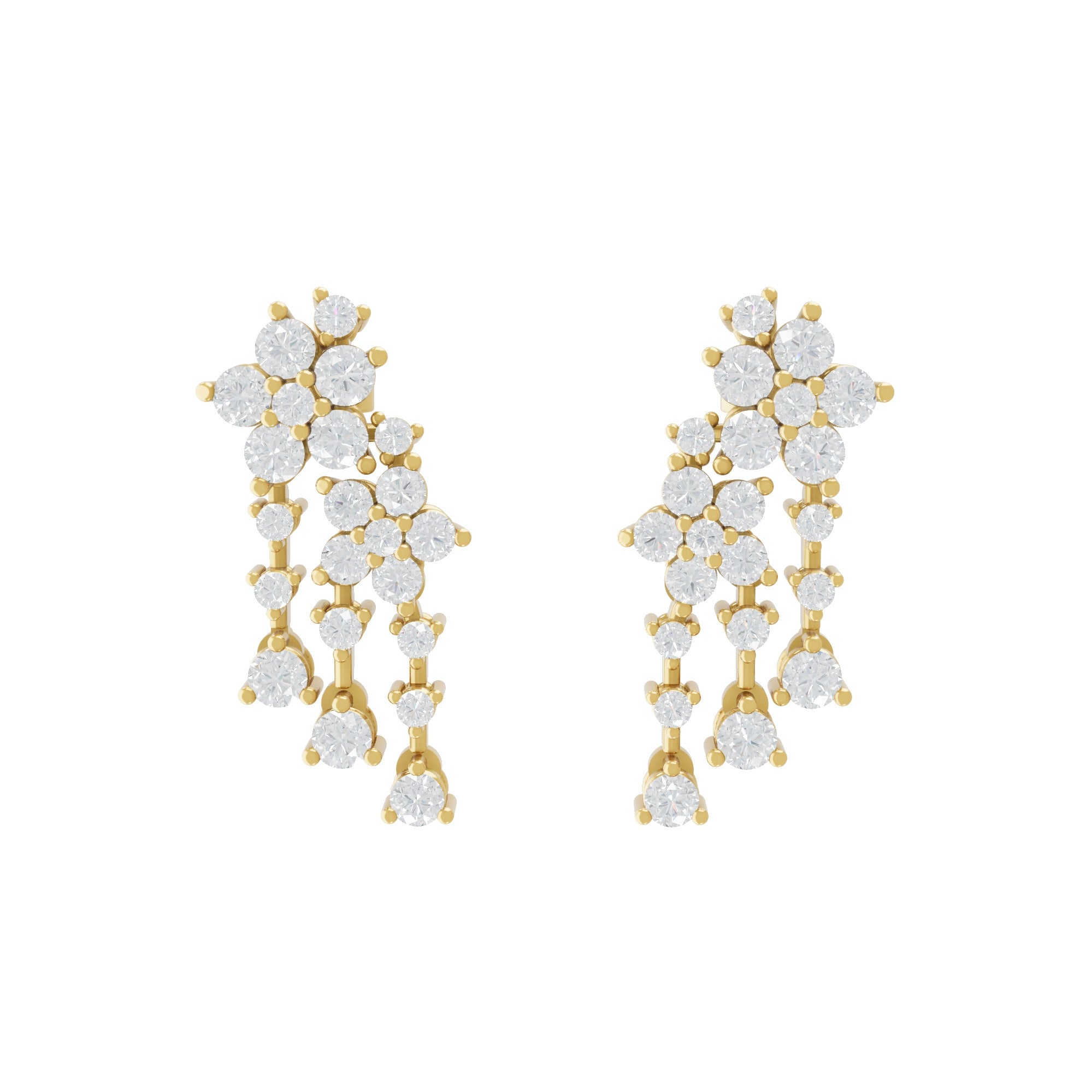 14K Fine Gold Multi Shape 4.77Ct Lab Grown Diamond Cluster Dangle Earrings