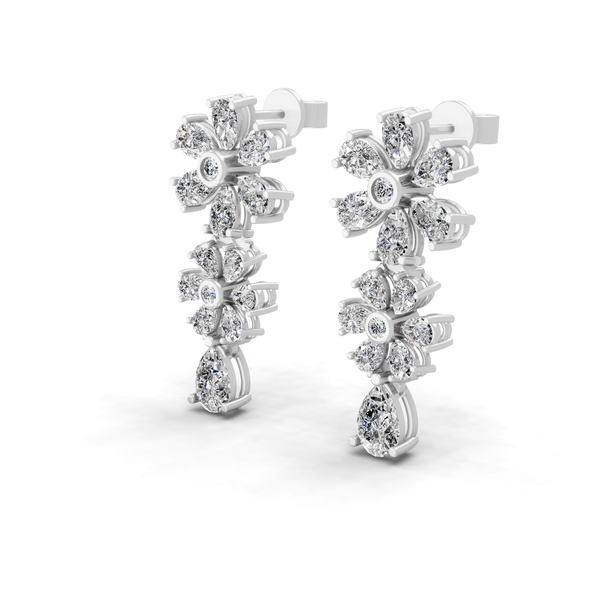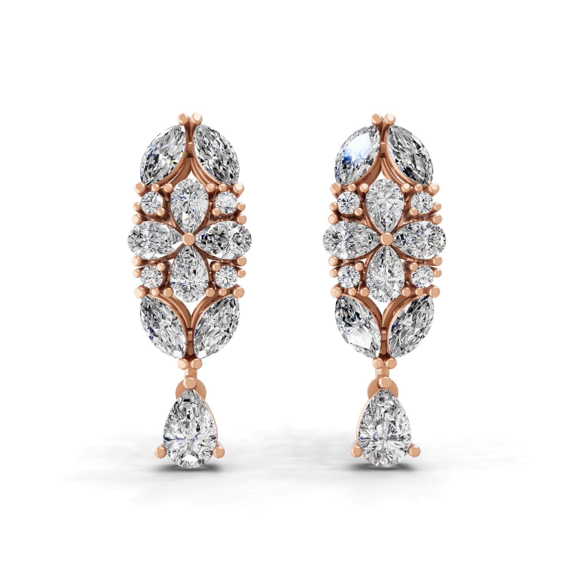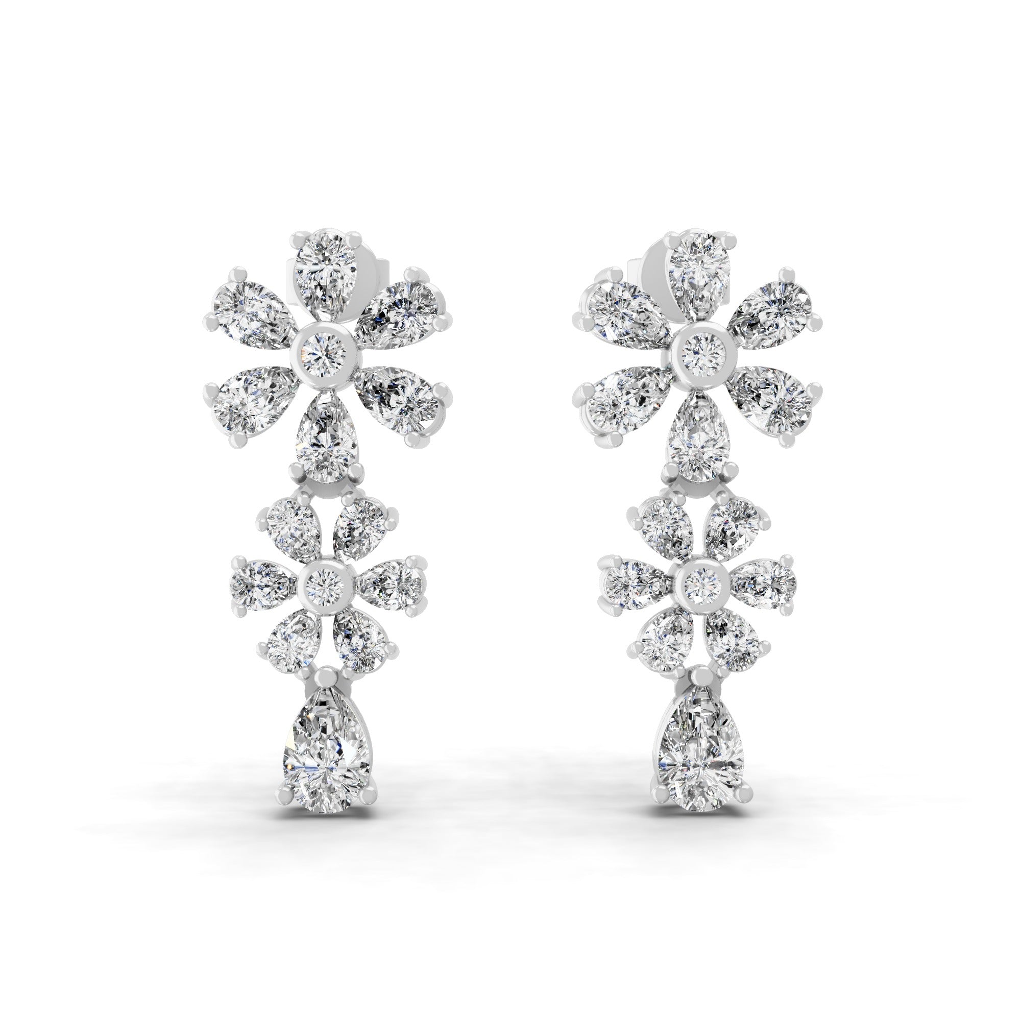 14K Fine Gold Lab Grown Pear Round Diamond Floral Dangle Earrings 4.56Ct