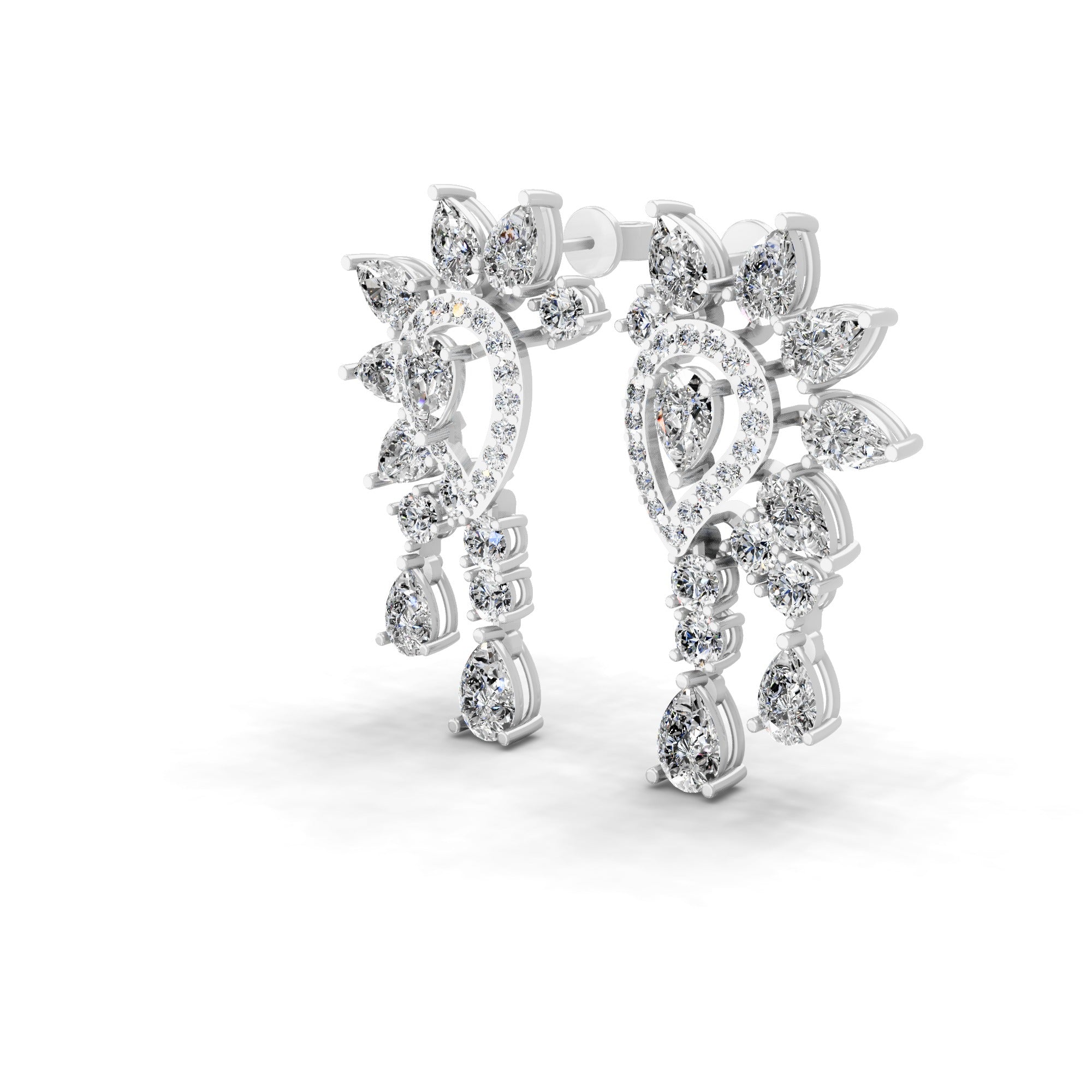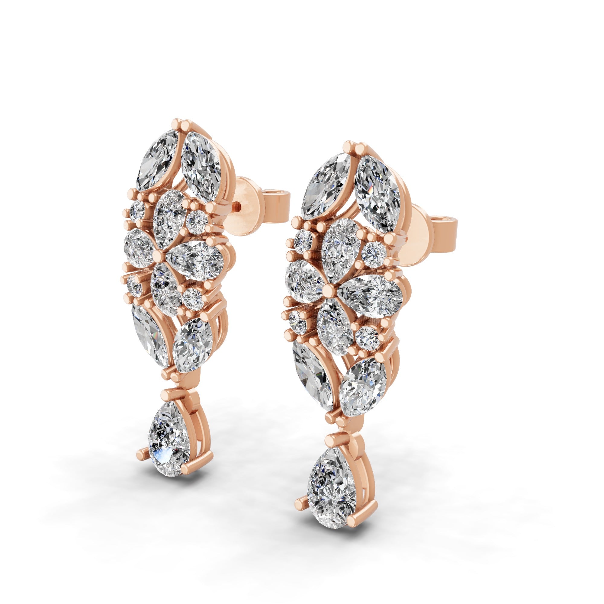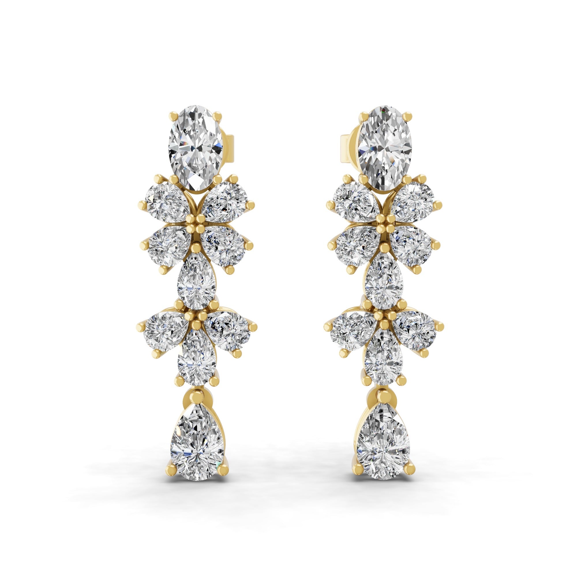 14K Fine Gold Lab Grown Pear Round Diamond Floral Dangle Earrings 4.56Ct