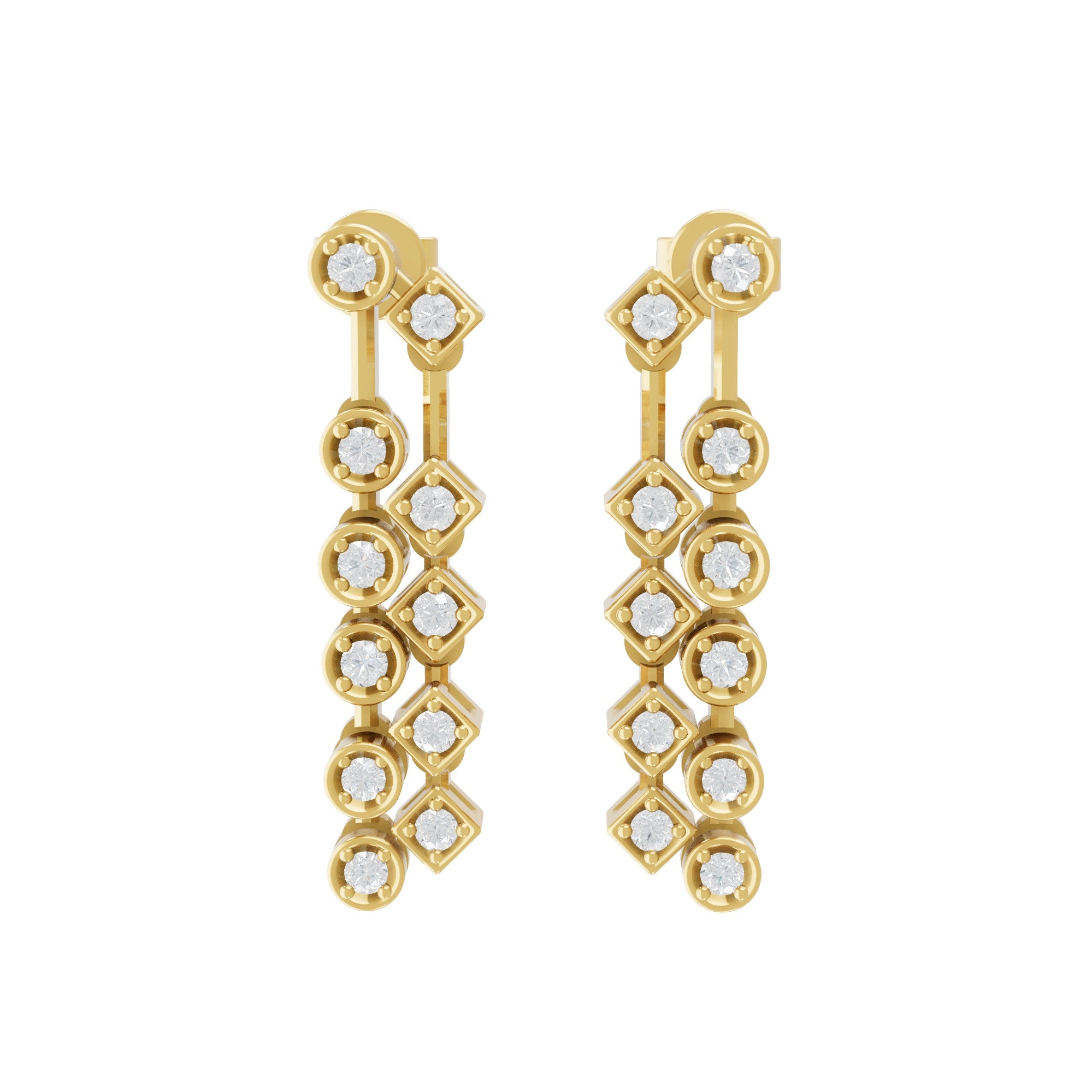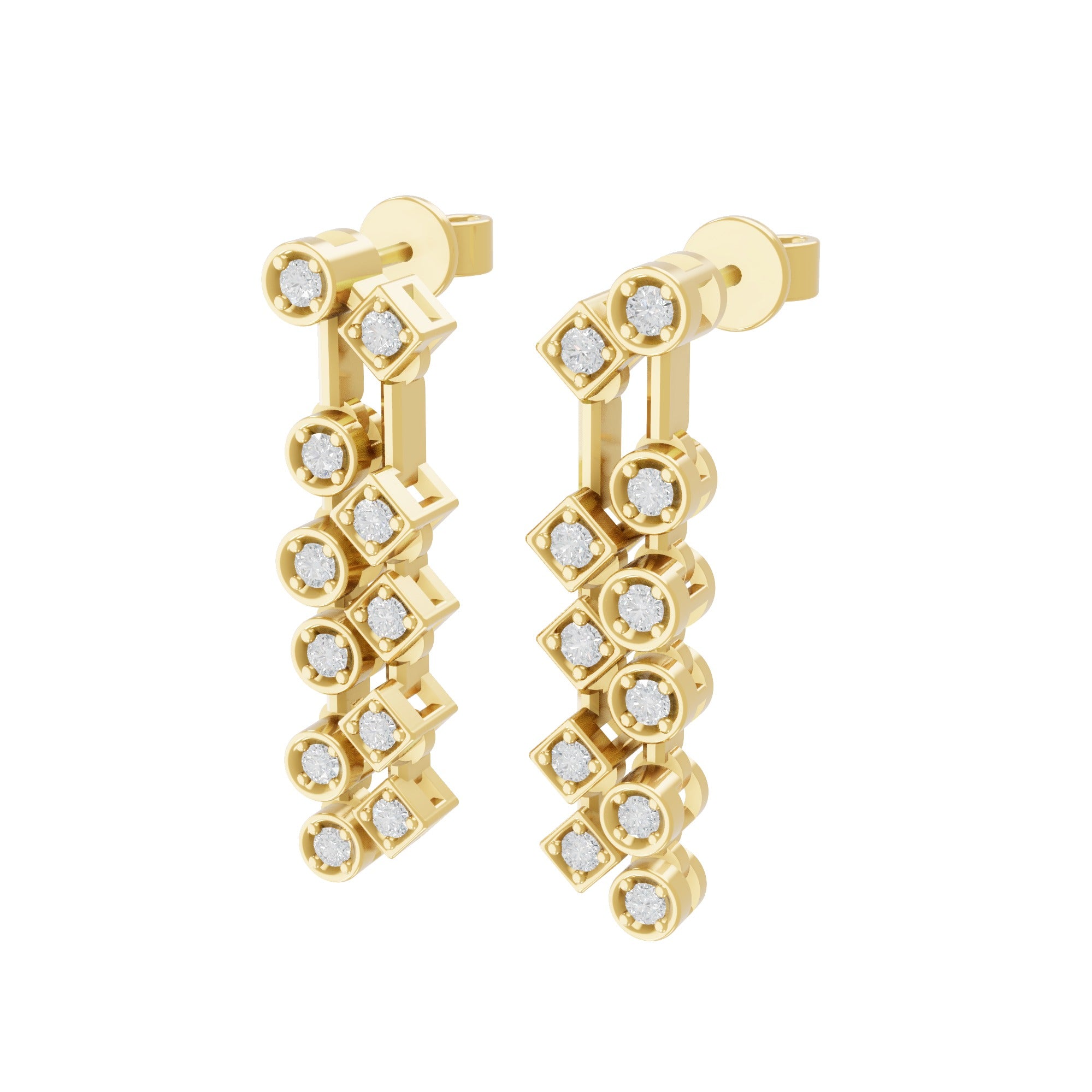 Lab Grown Round Diamond 14K Gold Geometric Design Dangle Earrings 0.42Ct