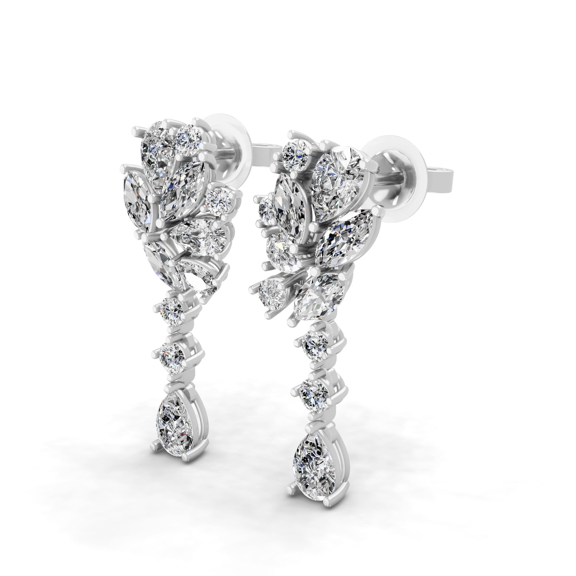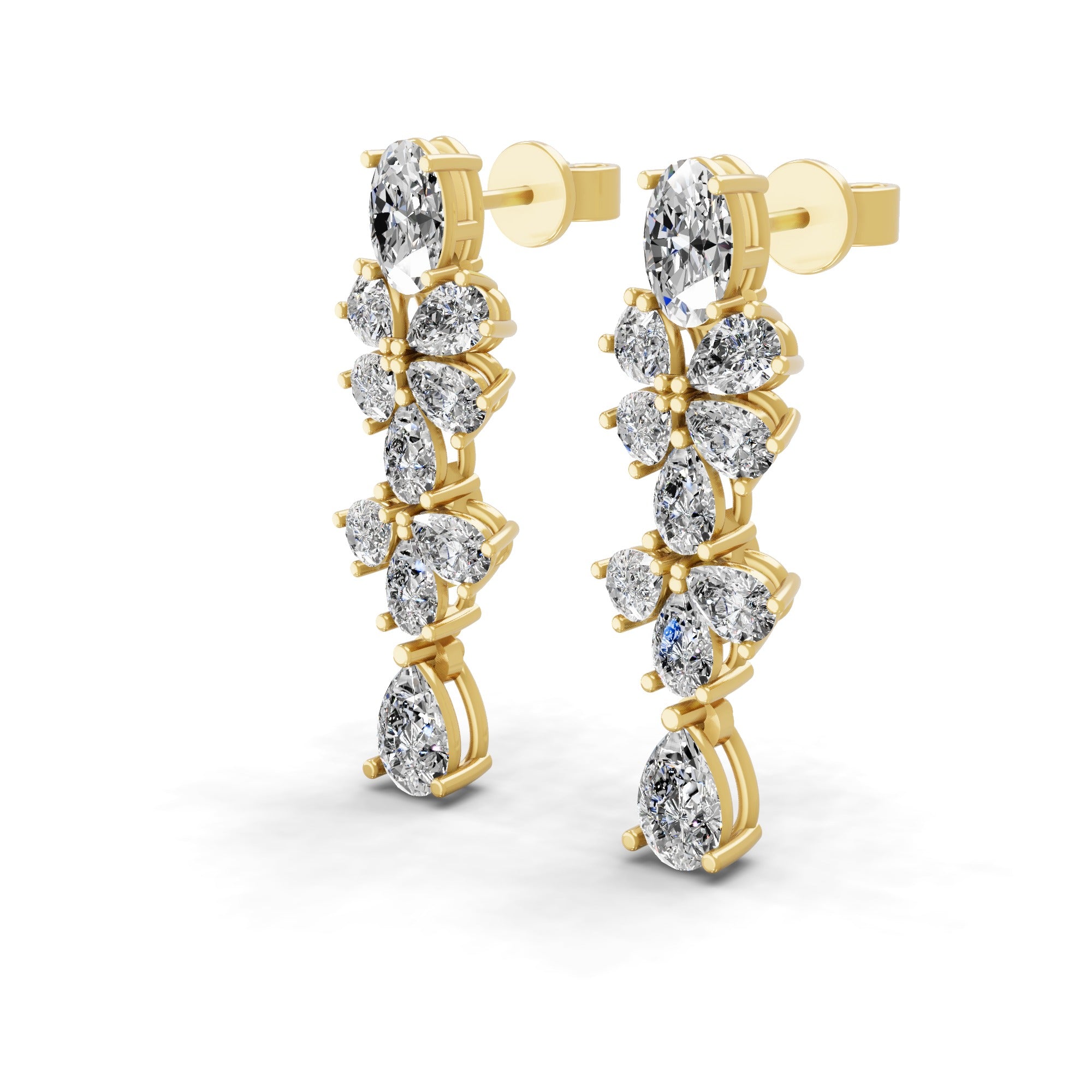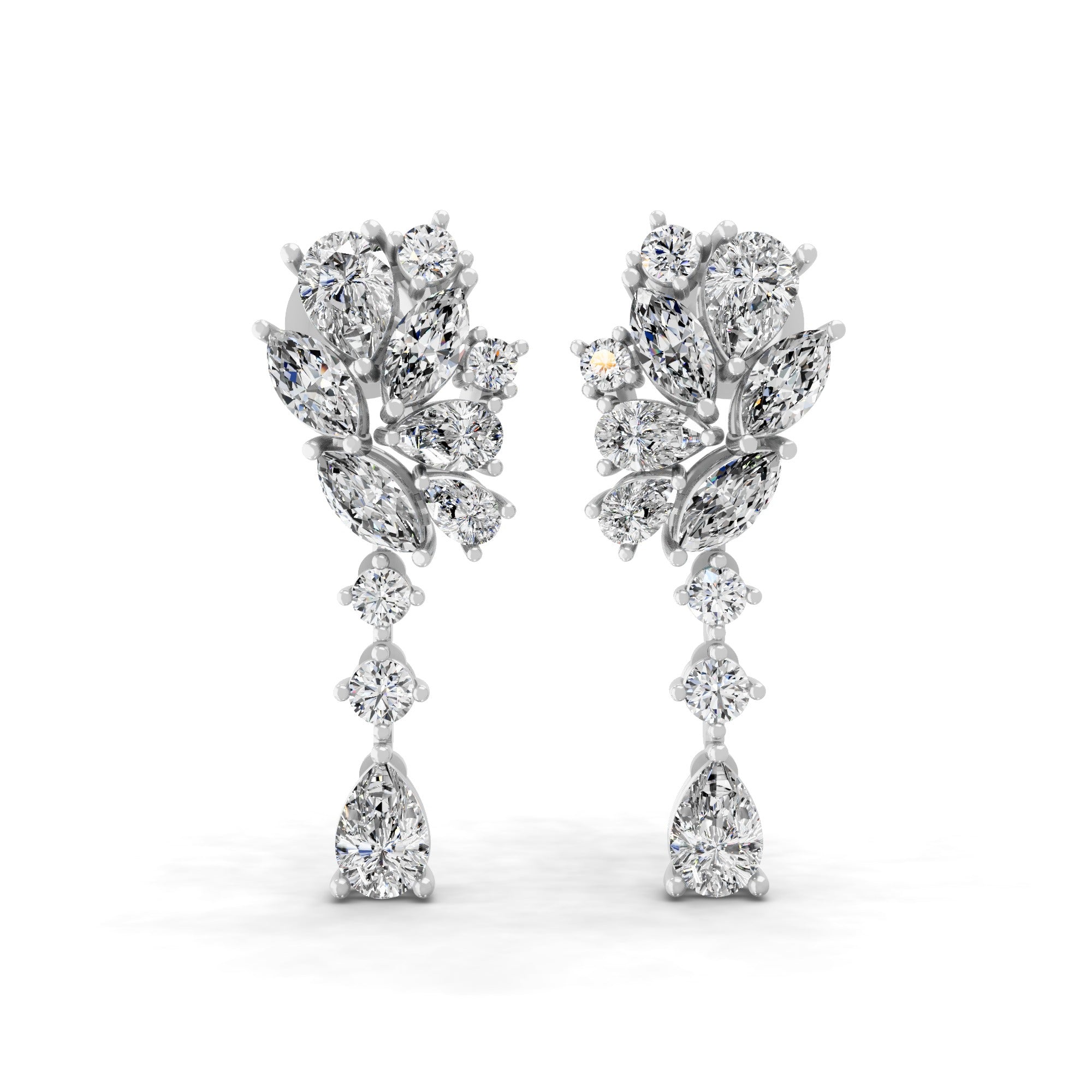 Lab Grown Marquise Pear Diamond 14K Gold Cluster Dangle Earrings 5.67Ct
