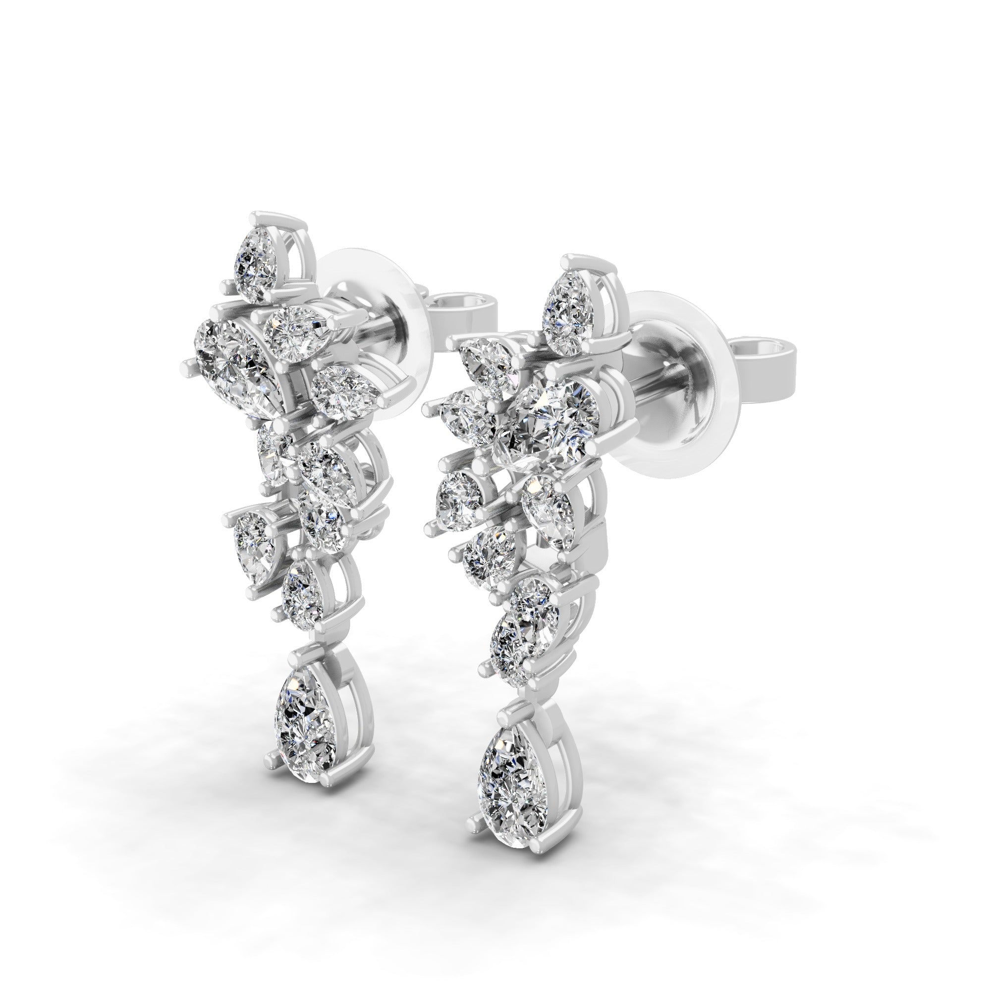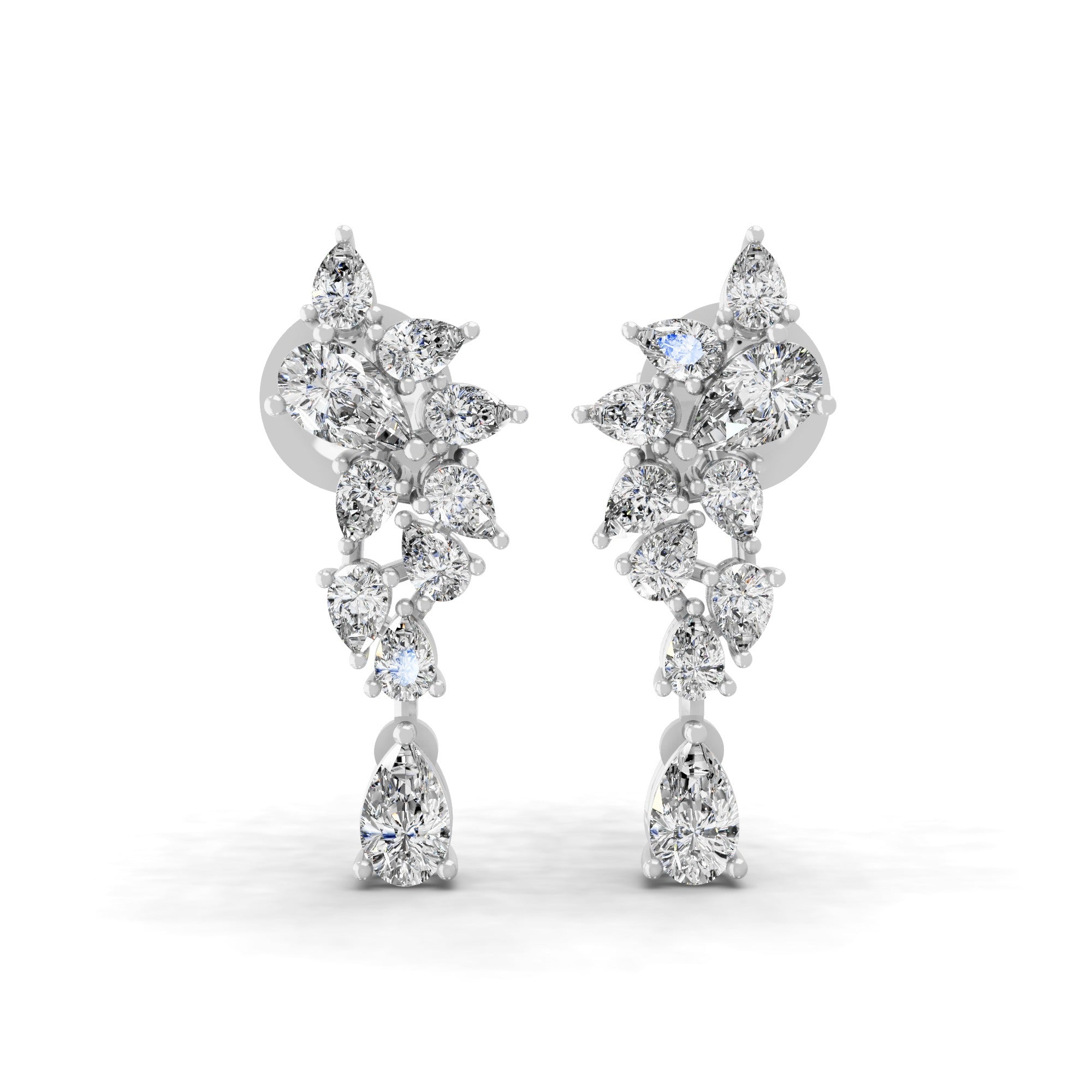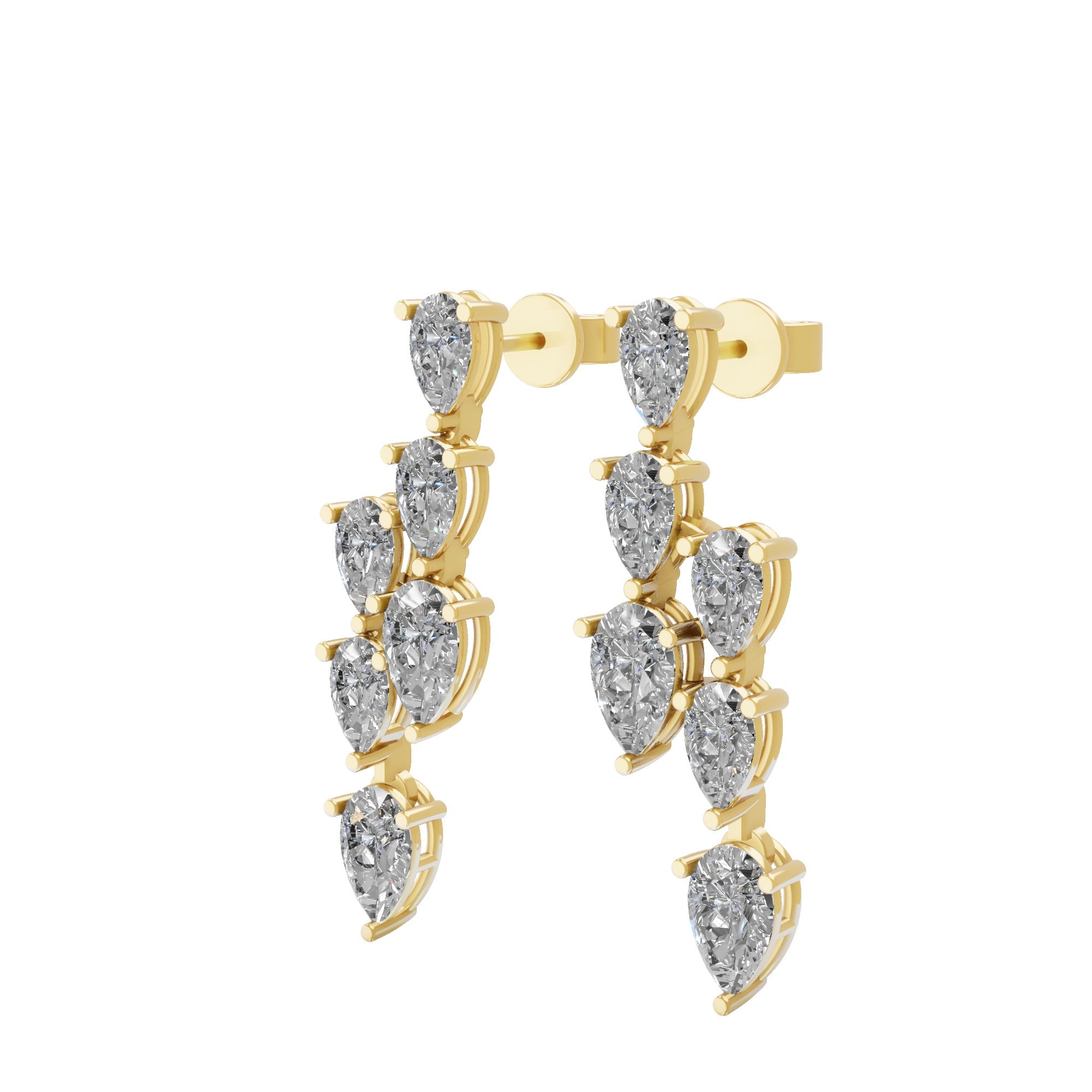 2.04Ct Pear Cut Lab Grown Diamond Cascade Dangle Drop Earrings 14K Fine Gold