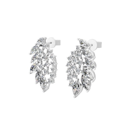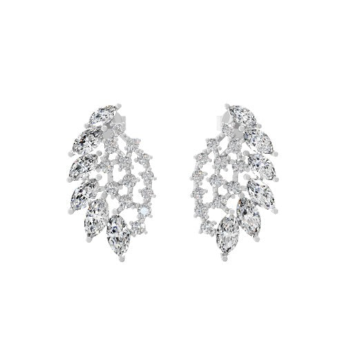 Lab Grown Round Marquise Diamond 14K Gold Petal Style Drop Earrings 2.55Ct
