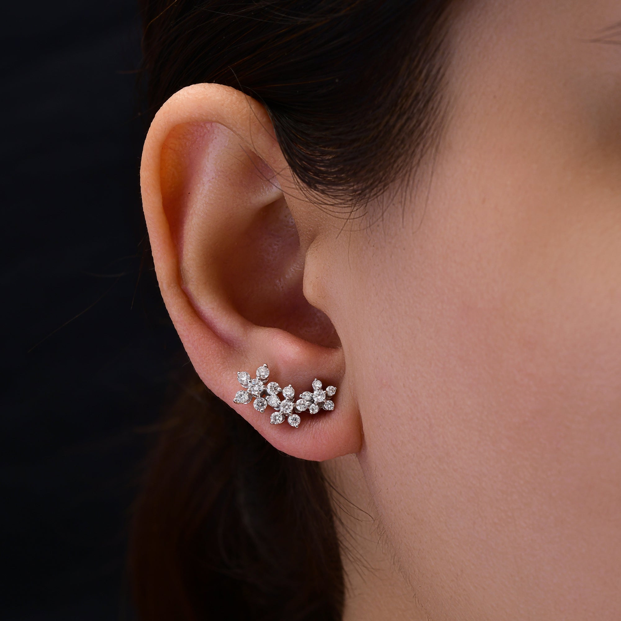 Lab Grown Diamond Ear Climber Earrings 14K Fine Gold 1.73Ct