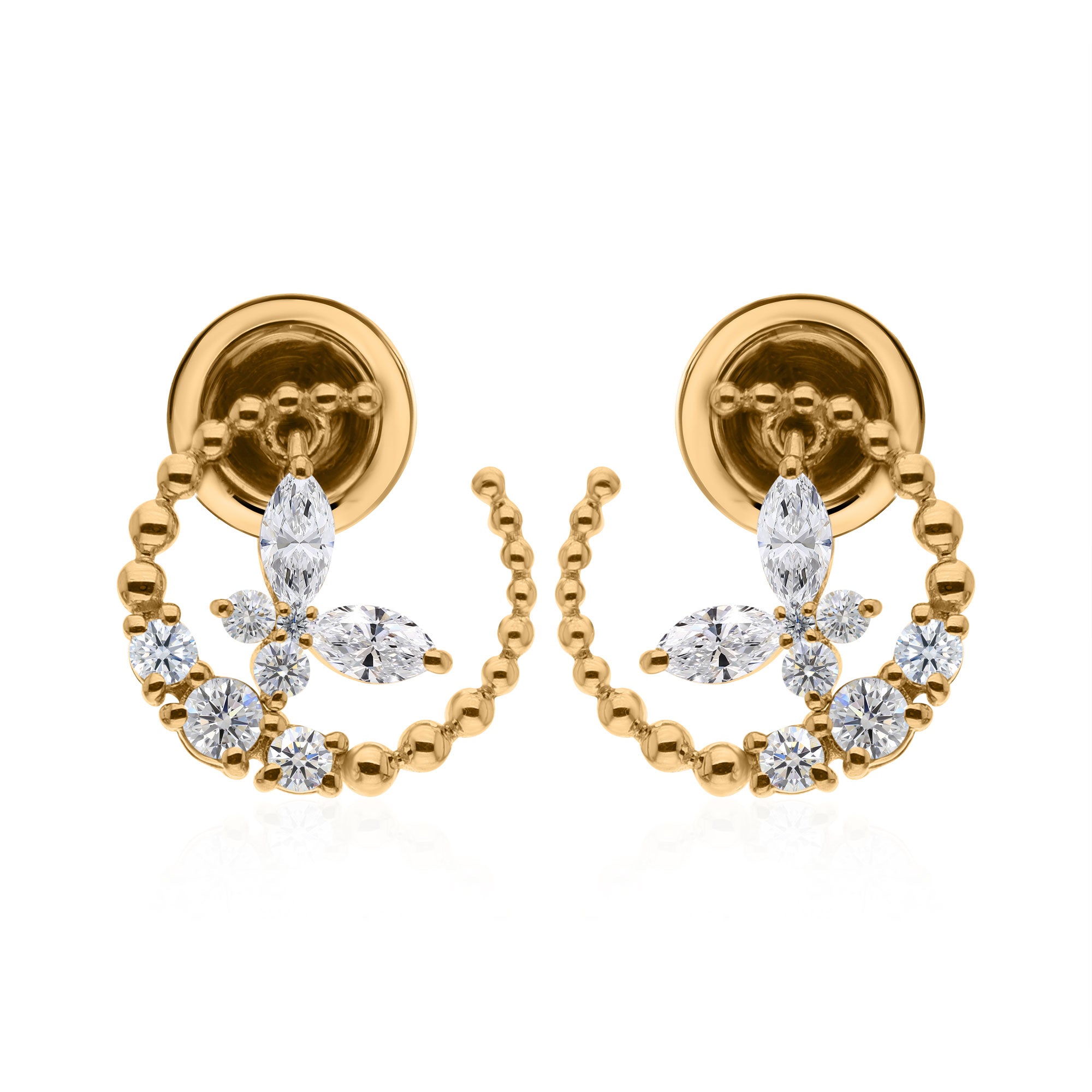 14K Fine Gold Cascading Circles Lab Grown Diamond Earrings 0.24Ct