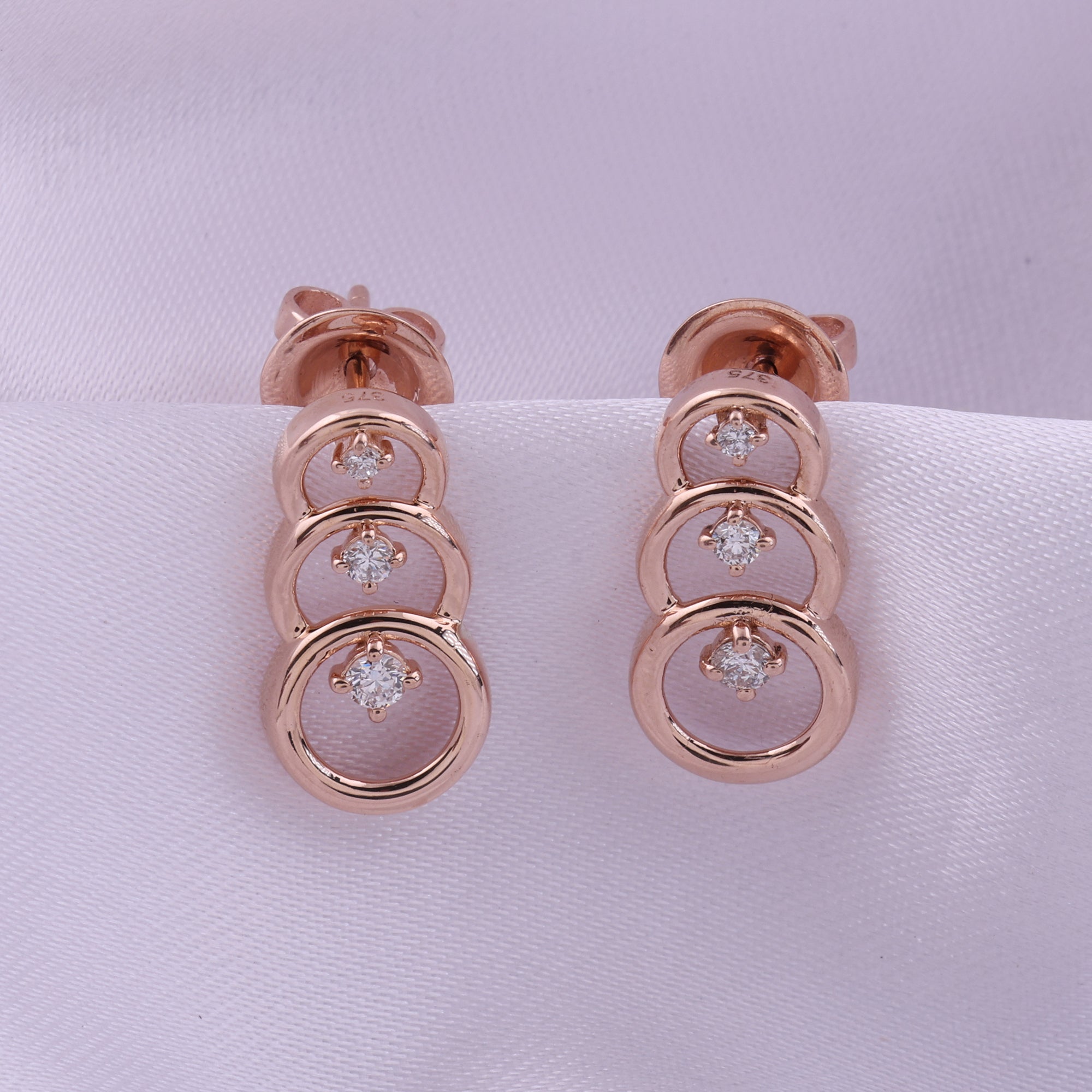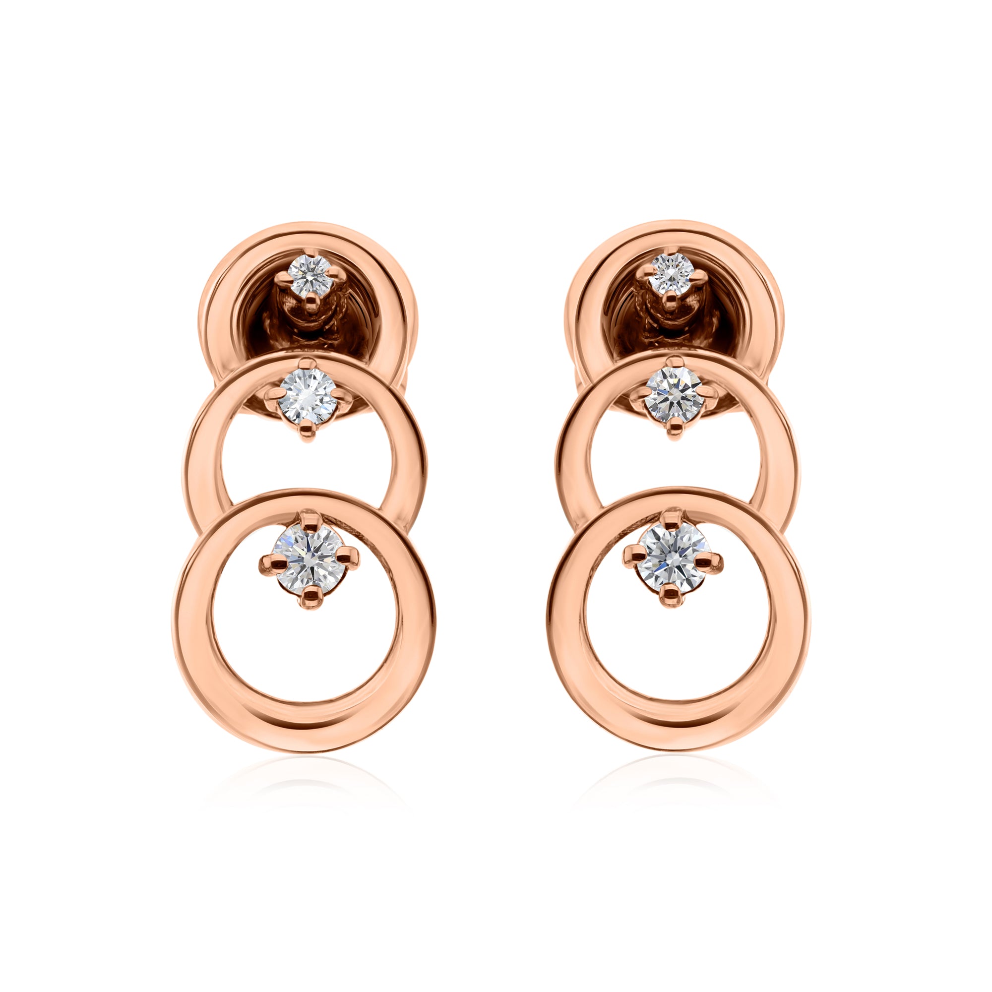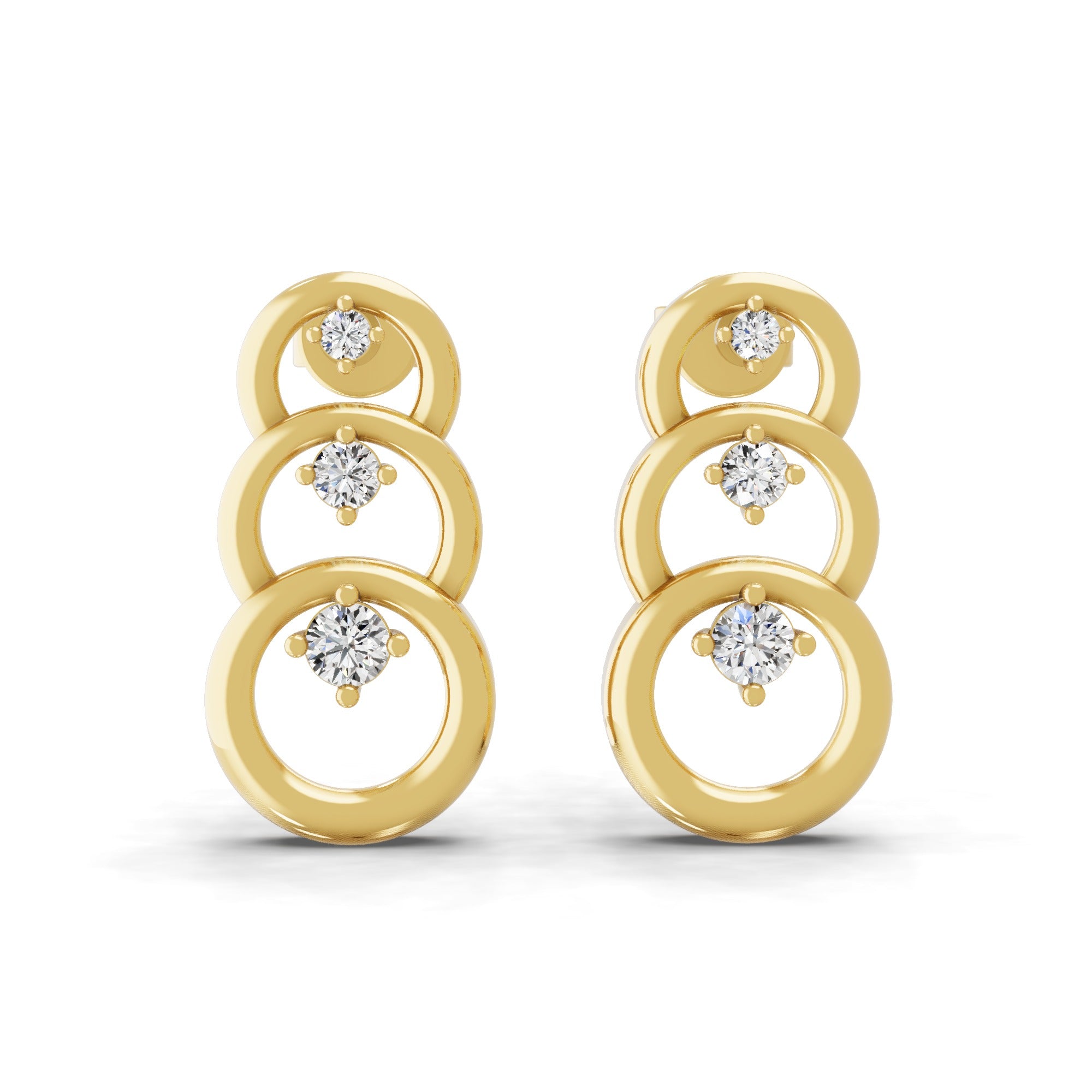 14K Fine Gold Cascading Circles Lab Grown Diamond Earrings 0.24Ct