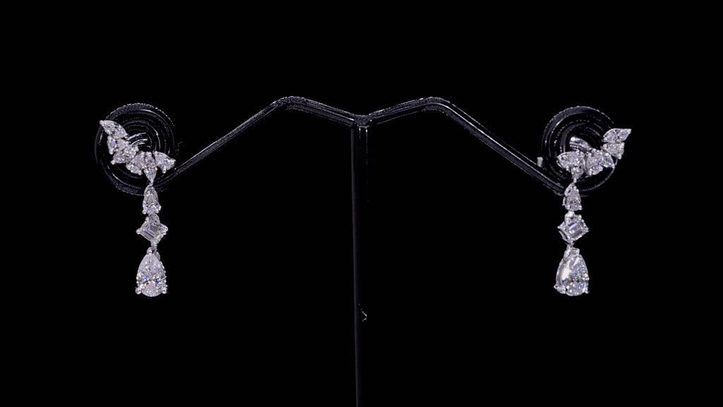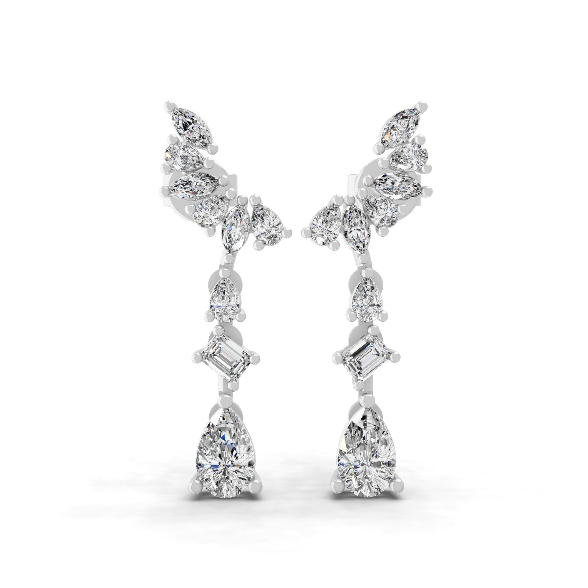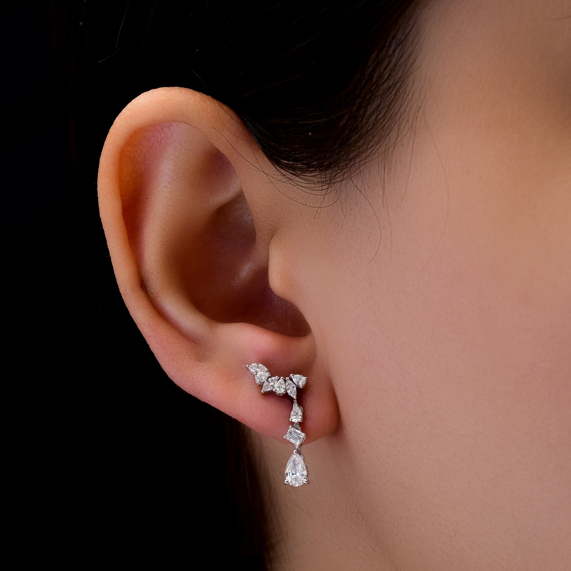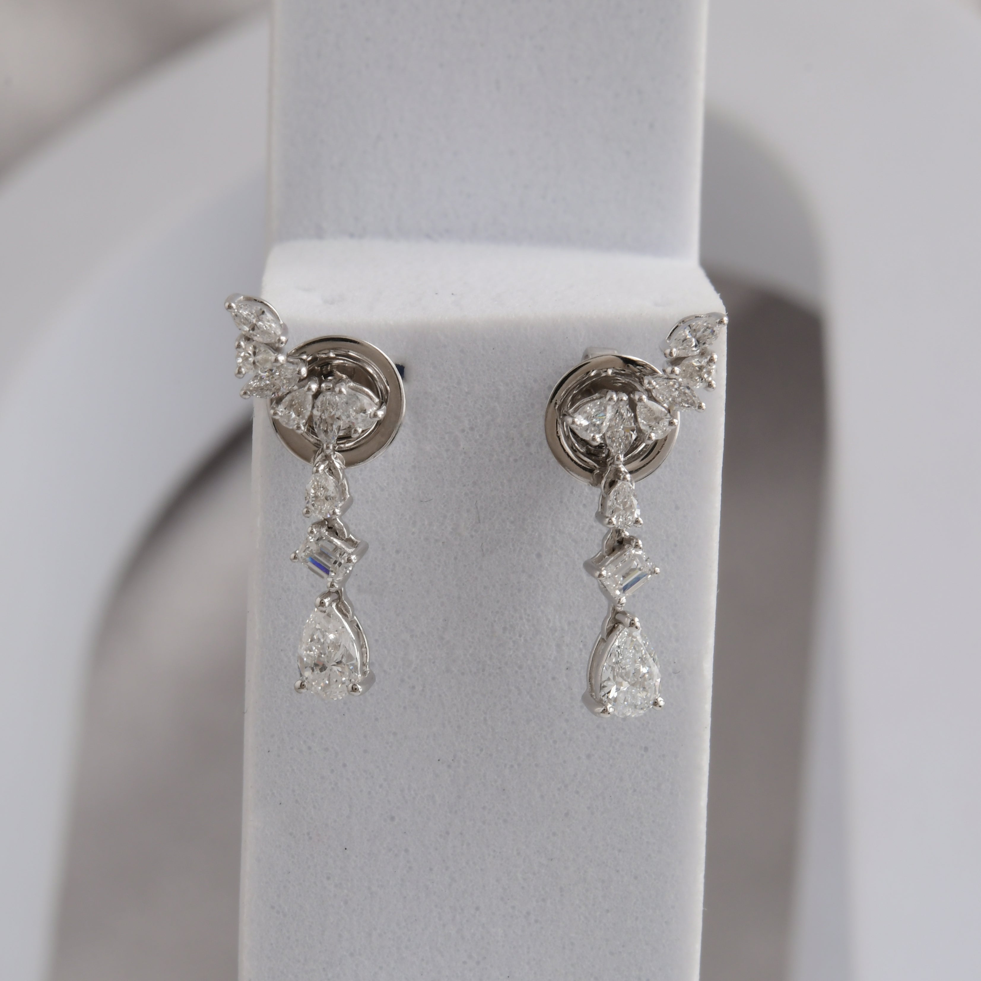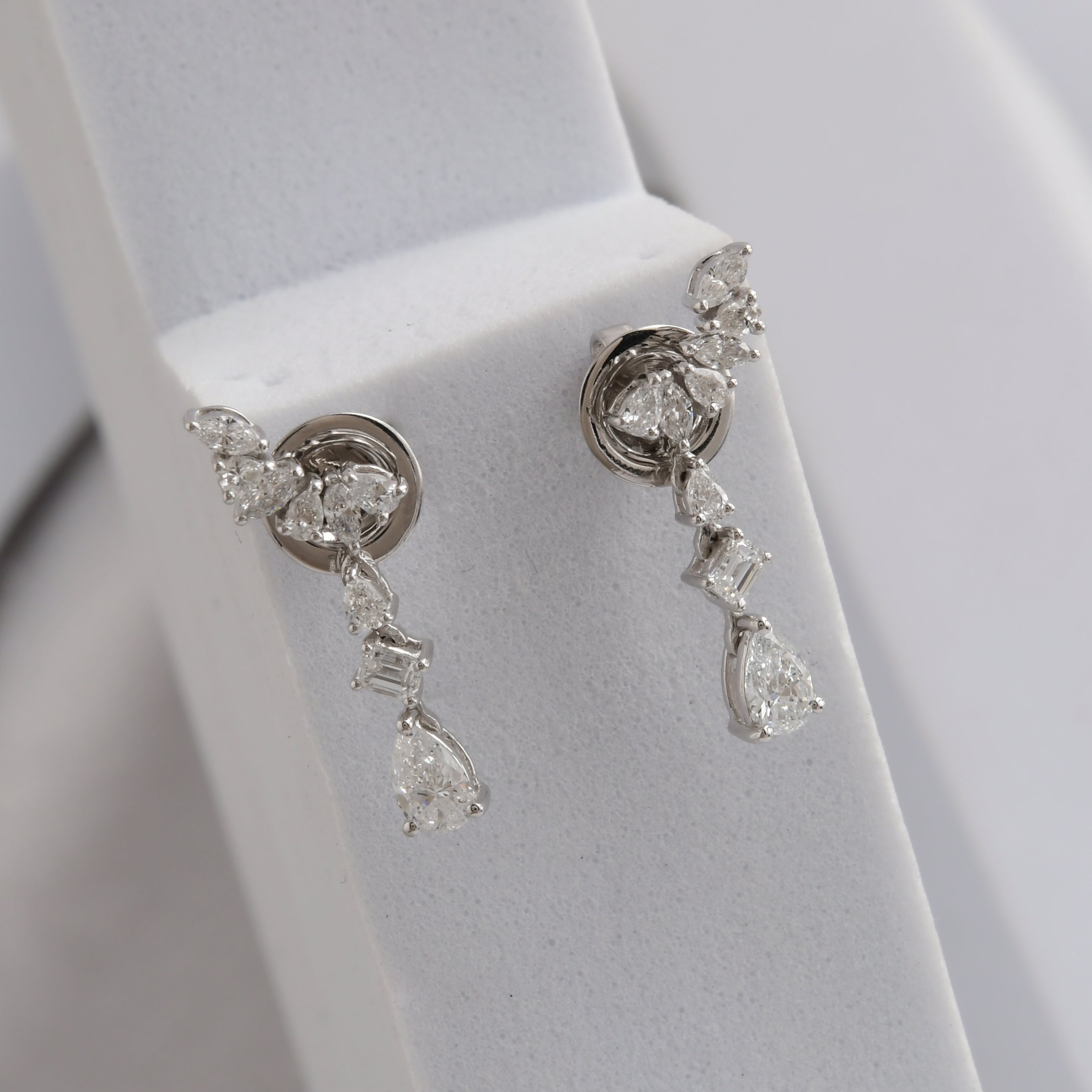 Lab Grown Diamond 1.41Ct Multi Shaped 14K Fine Gold Cluster Drop Dangle Earrings