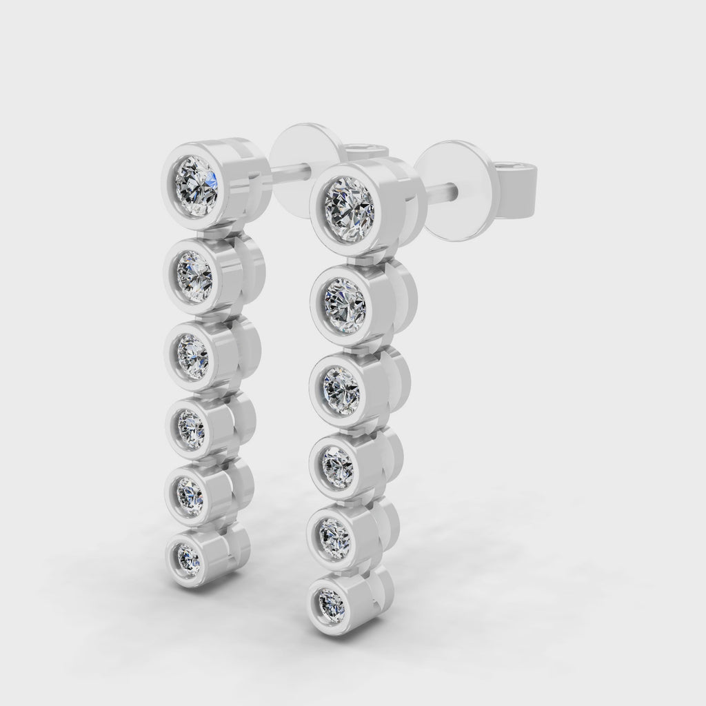 Bezel Set Lab Grown Round Cut Diamond 0.43Ct Drop Earrings 14K Fine Gold