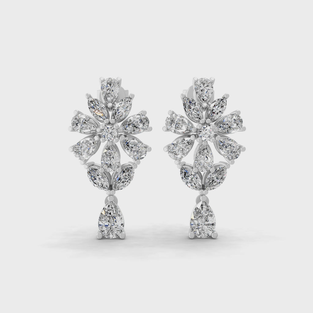 Radiant Cluster Drop Earrings 14K Fine Gold 3.27Ct Lab Grown Diamond