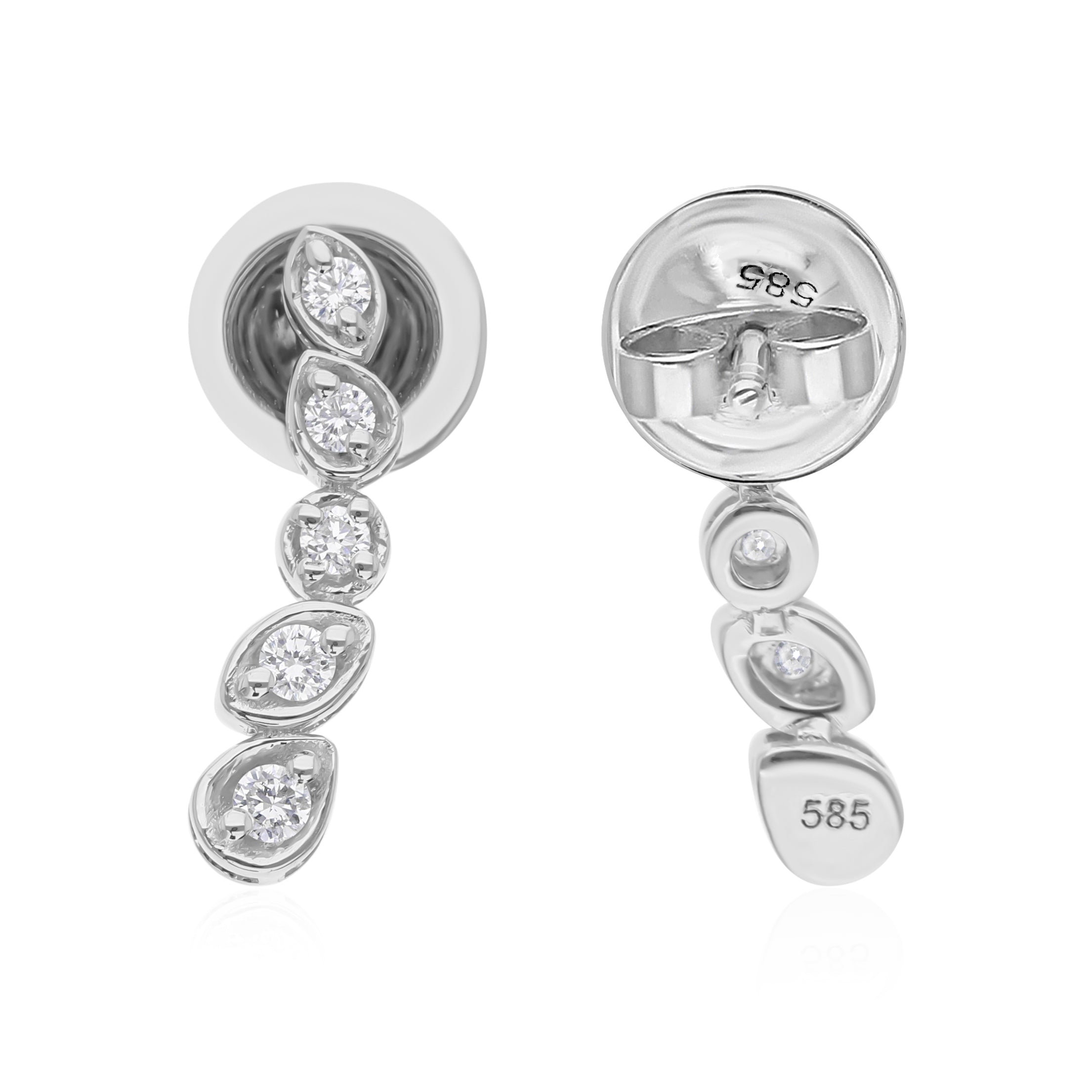 Ear Climber Earrings Lab Grown Diamond 14K Fine Gold Round Cut 0.27Ct