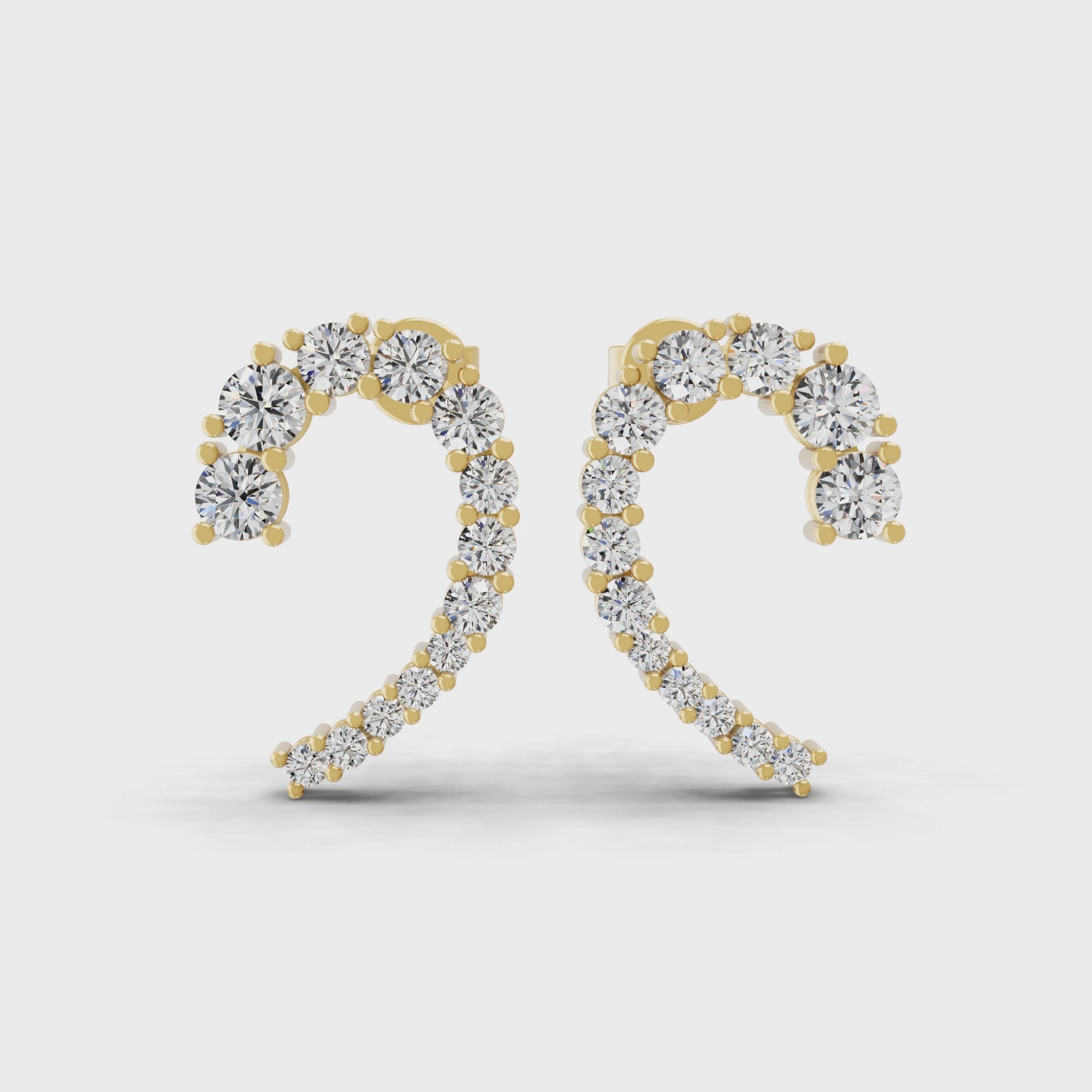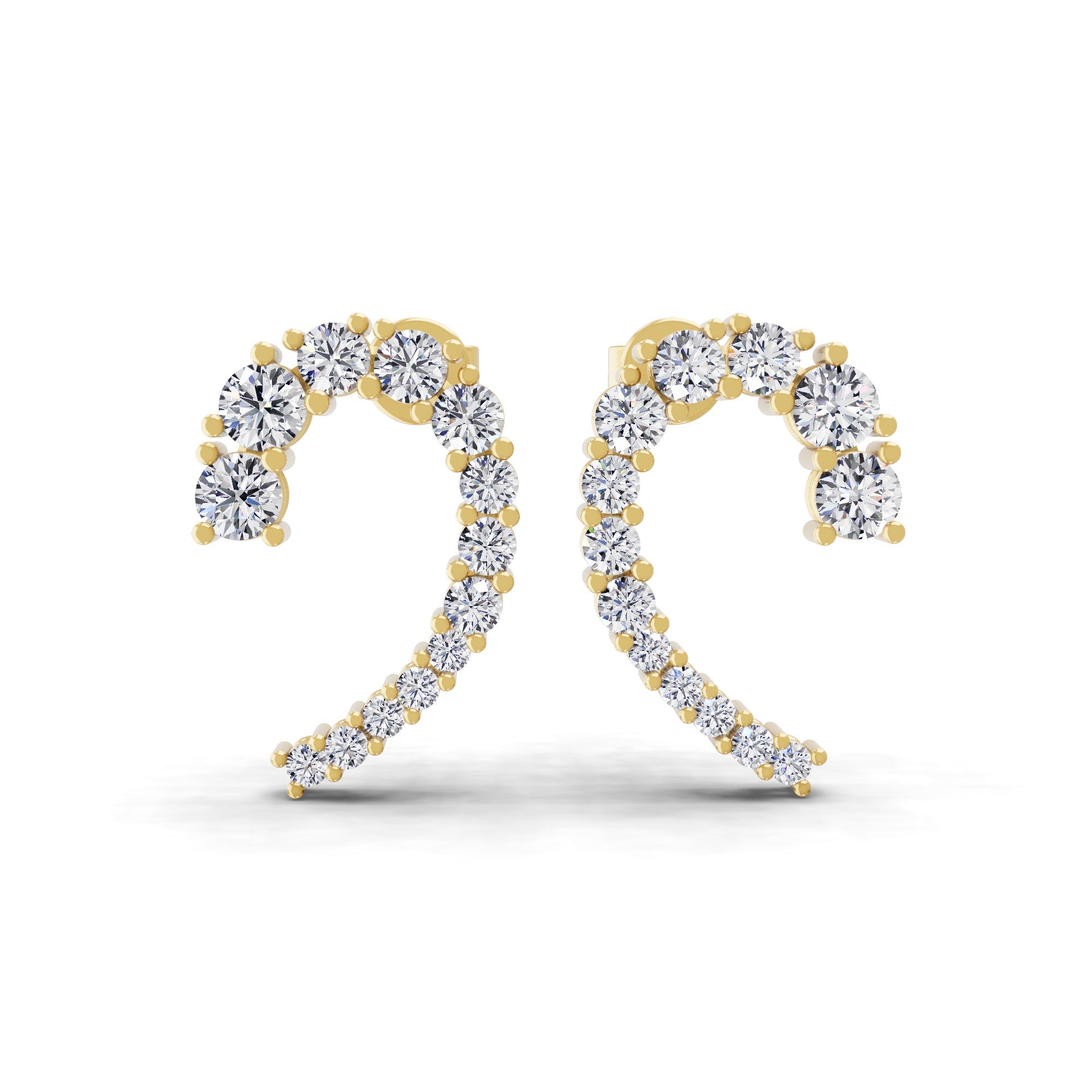14K Fine Gold 1.18Ct Lab Grown Diamond Tennis Deluxe Ear Climber Earrings