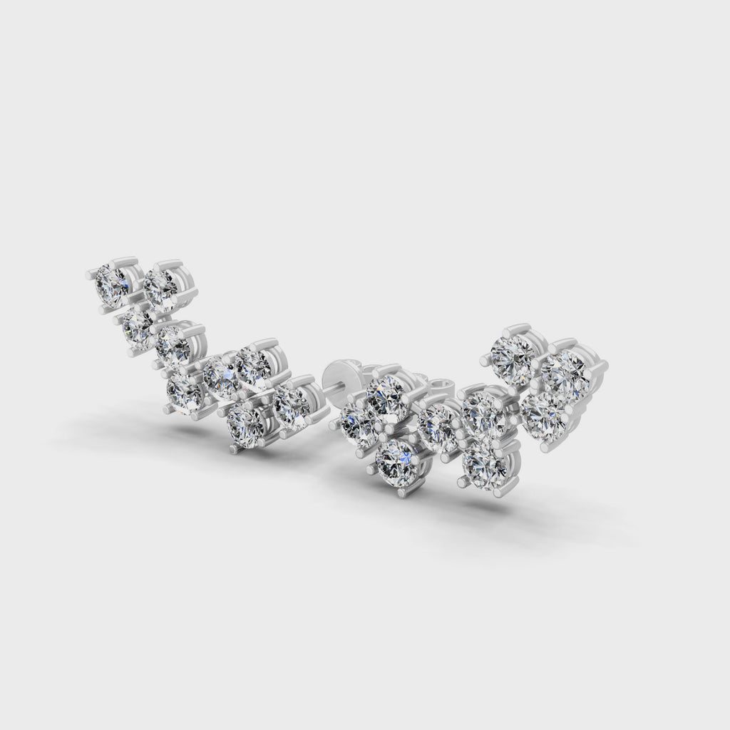 Asymmetric Lab Grown Diamond Ear Climber Earrings 14K Fine Gold 0.64Ct