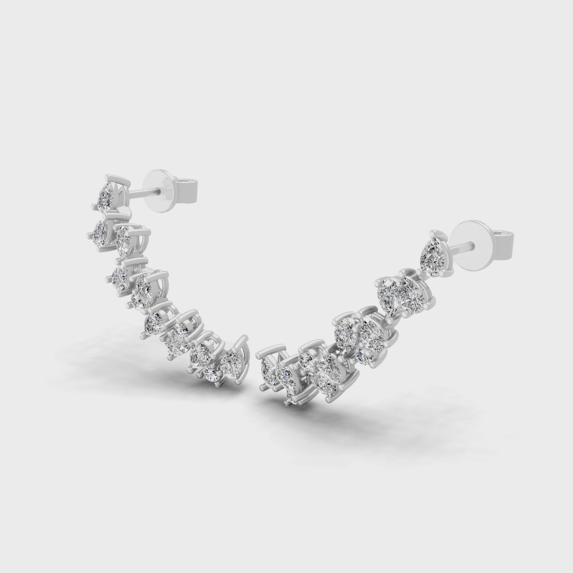 Pear Round Cut 14K Fine Gold Lab Grown Diamond Ear Climber Earring 1.20Ct