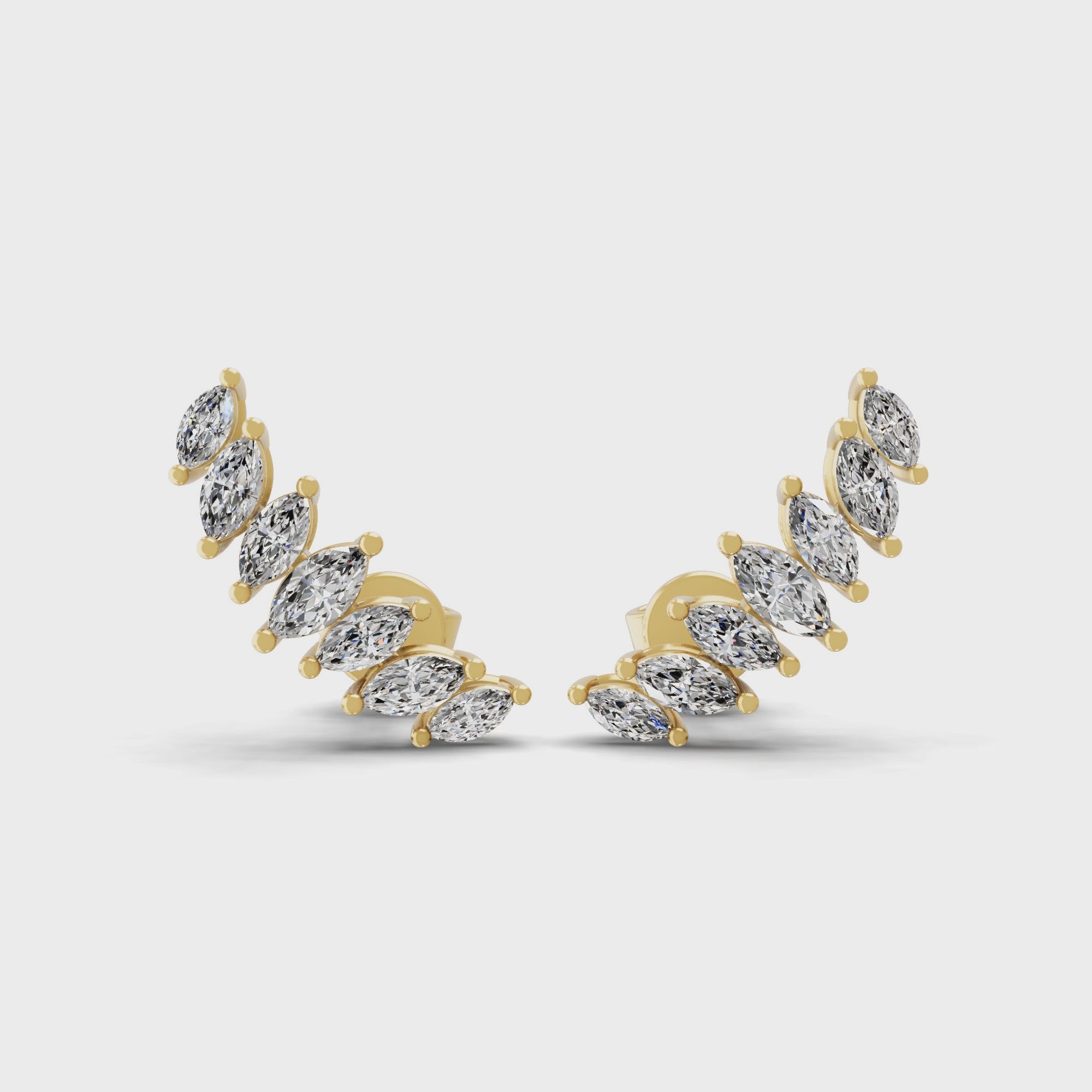 Seven Stone Marquise Cut Lab Grown Diamond 0.92Ct 14K Fine Gold Ear Climber