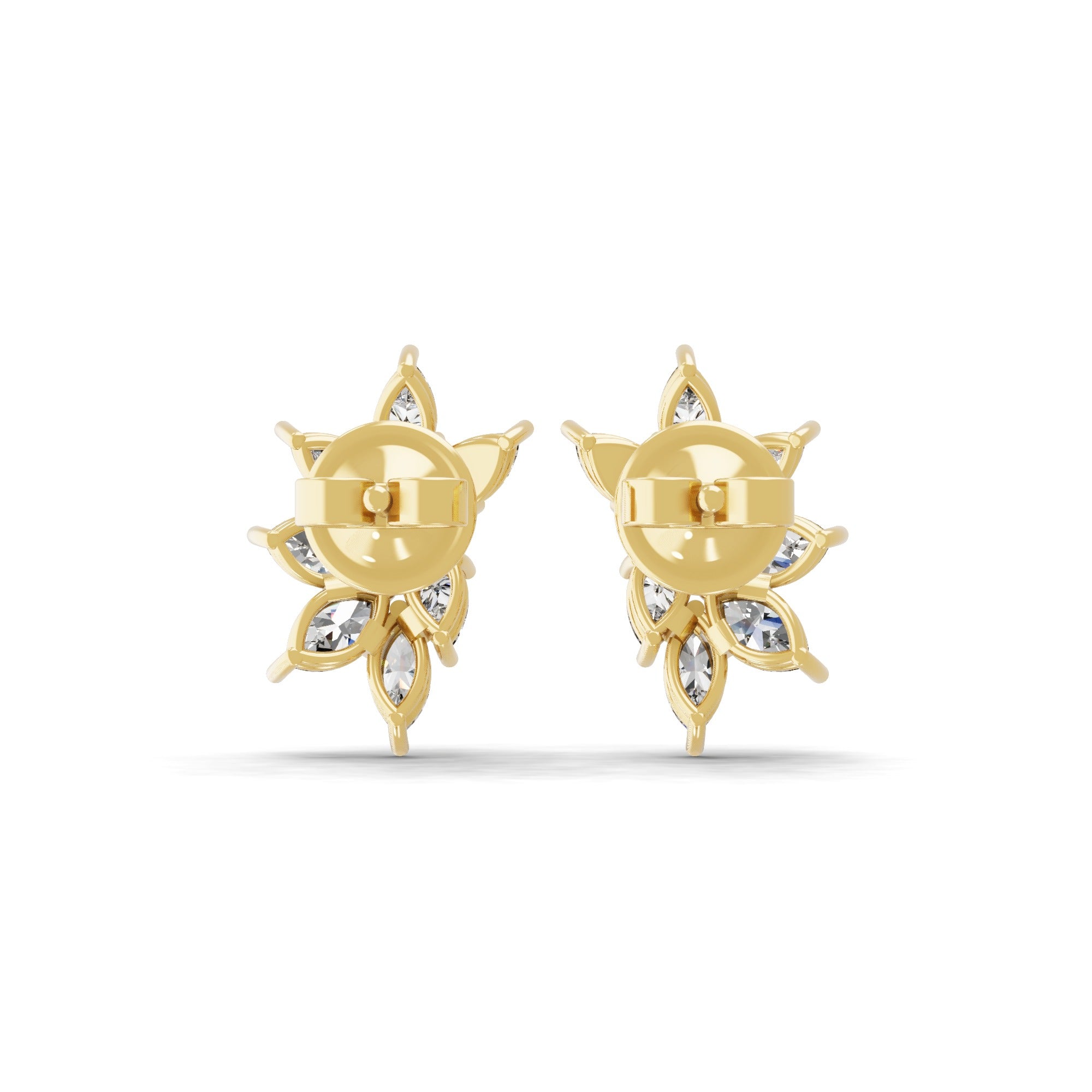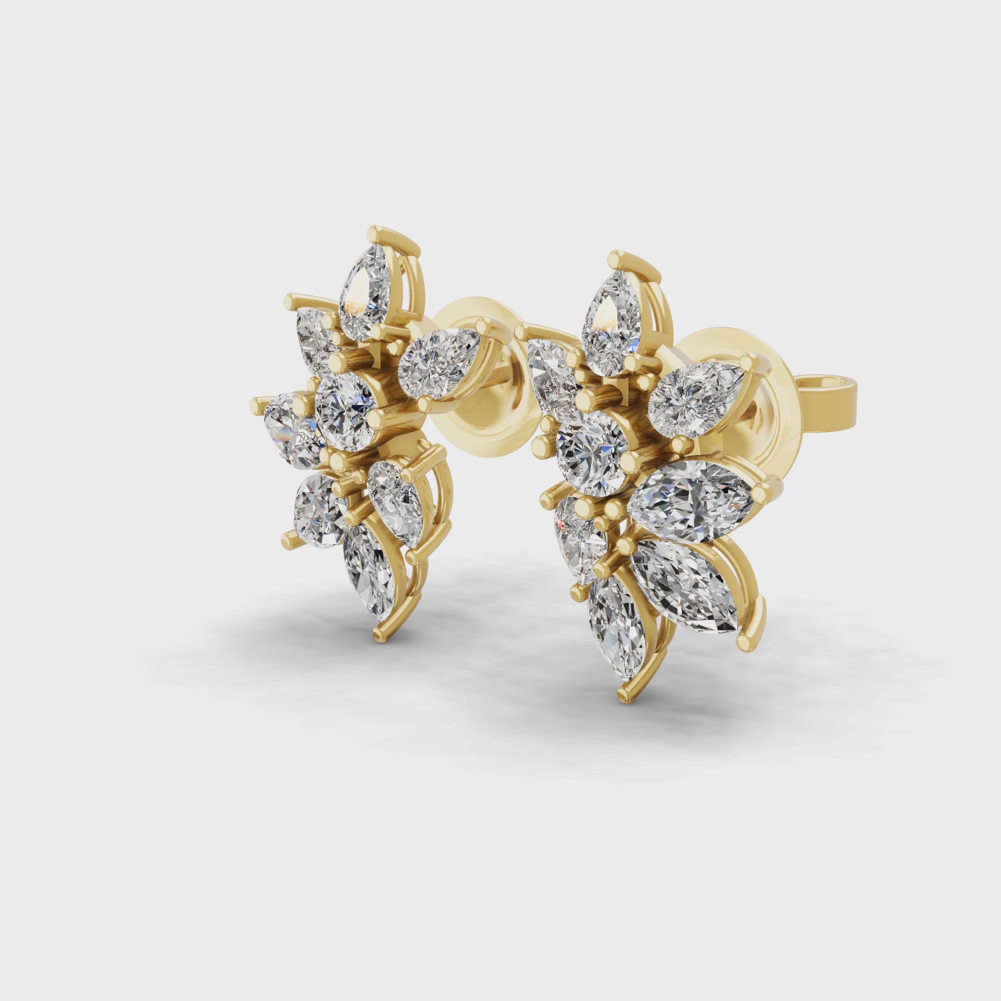 14K Fine Gold Cluster Stud Earrings Lab Grown Multi Shape Diamond 2.28Ct