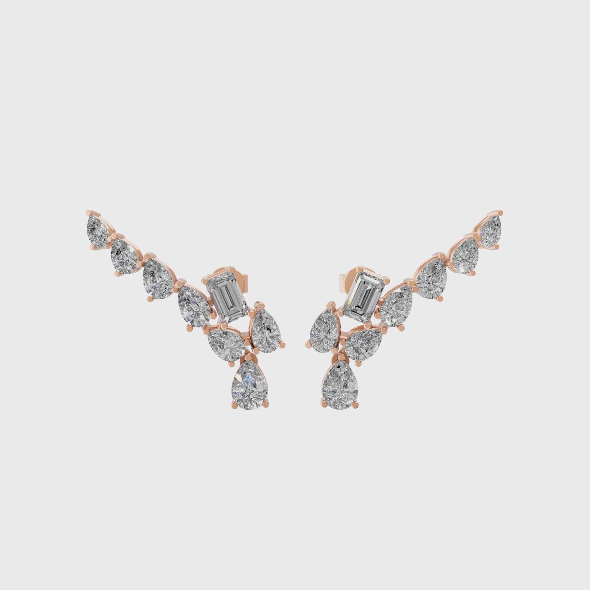 Mix Cut Lab Grown Diamonds Crawler Earring 3.44Ct 14K Fine Gold
