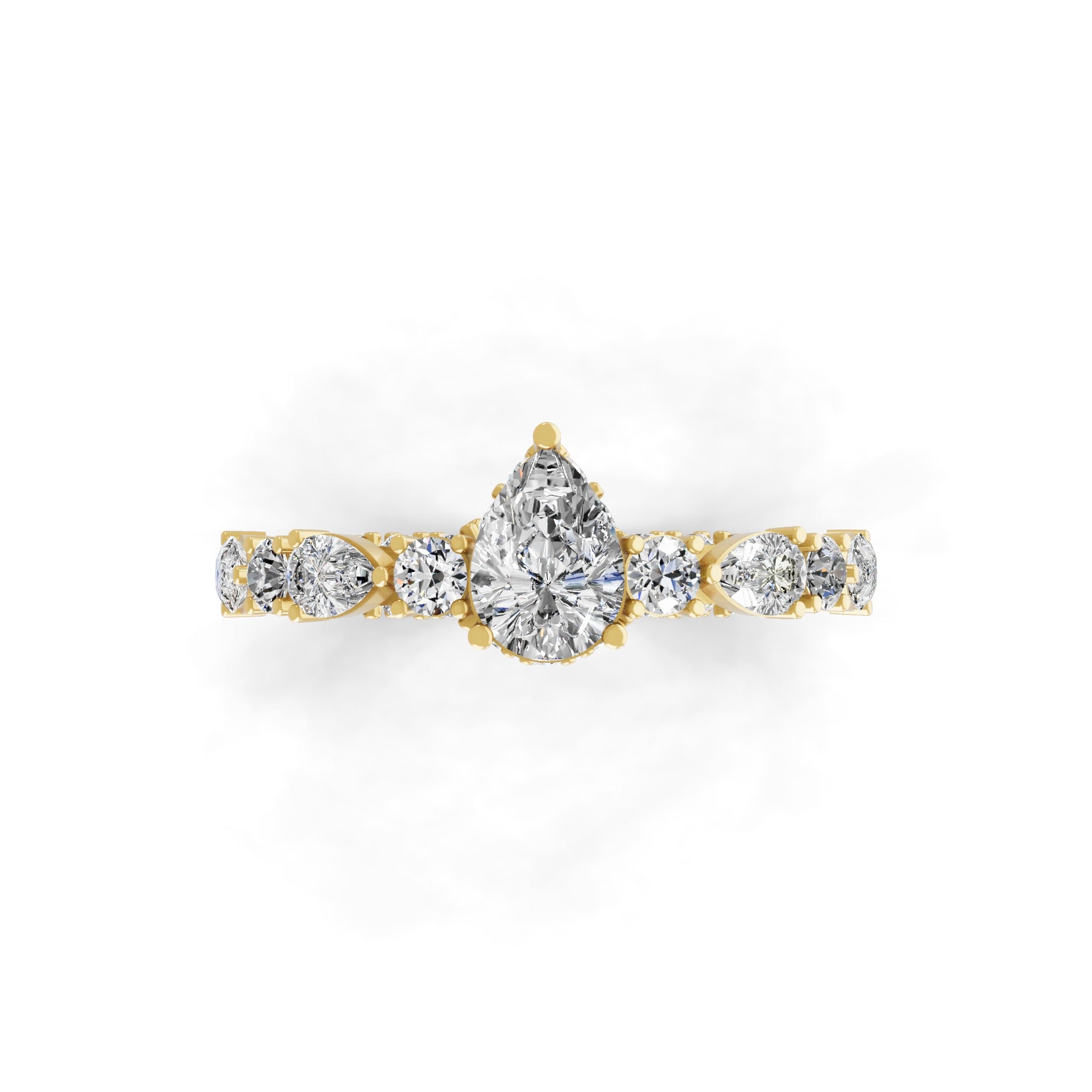 14K Fine Gold Round and Pear Cut 1.31Ct Lab Grown Diamond Rings