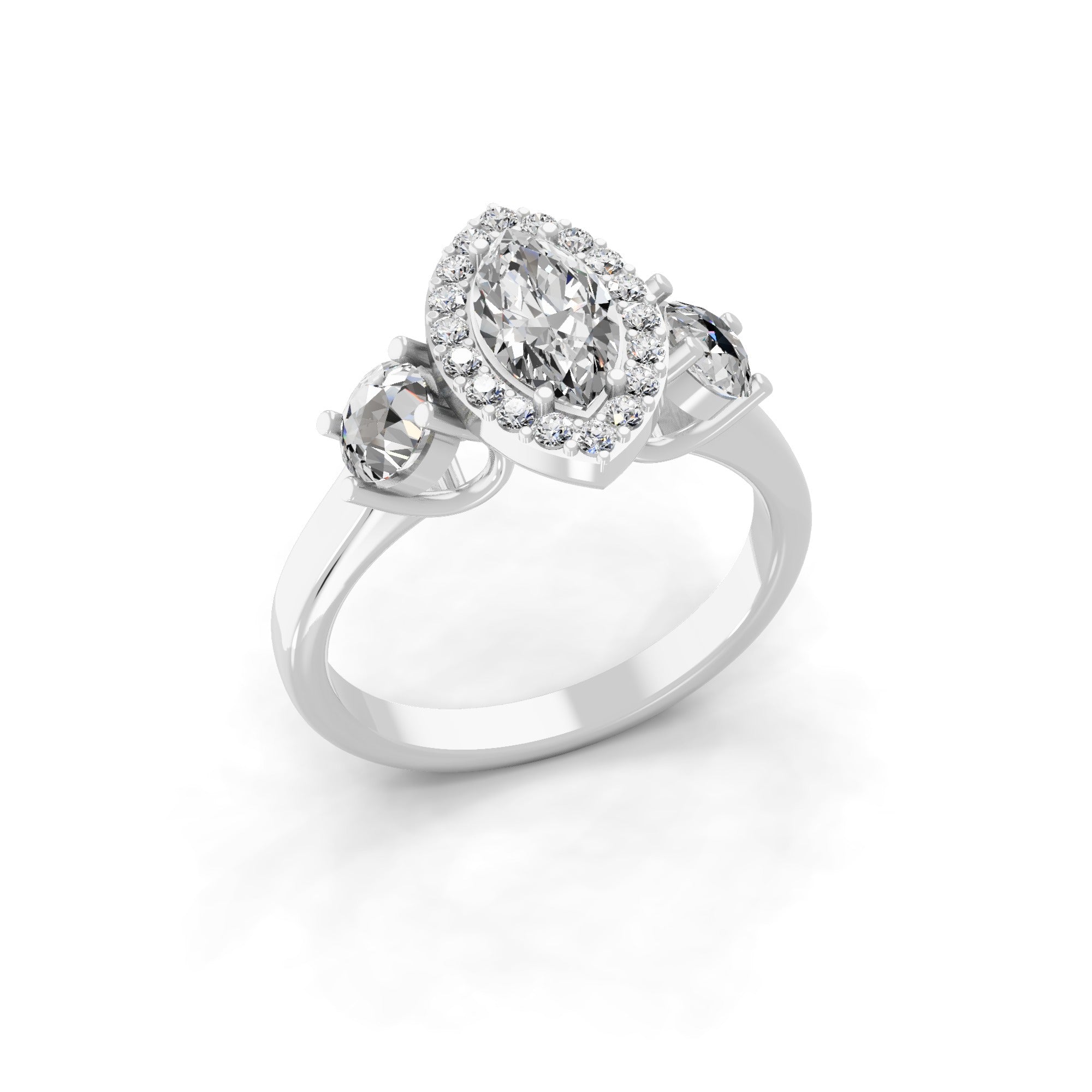 Triology Round and Marquise Cut Lab Grown Diamond Ring 1.39Ct 14K Fine Gold
