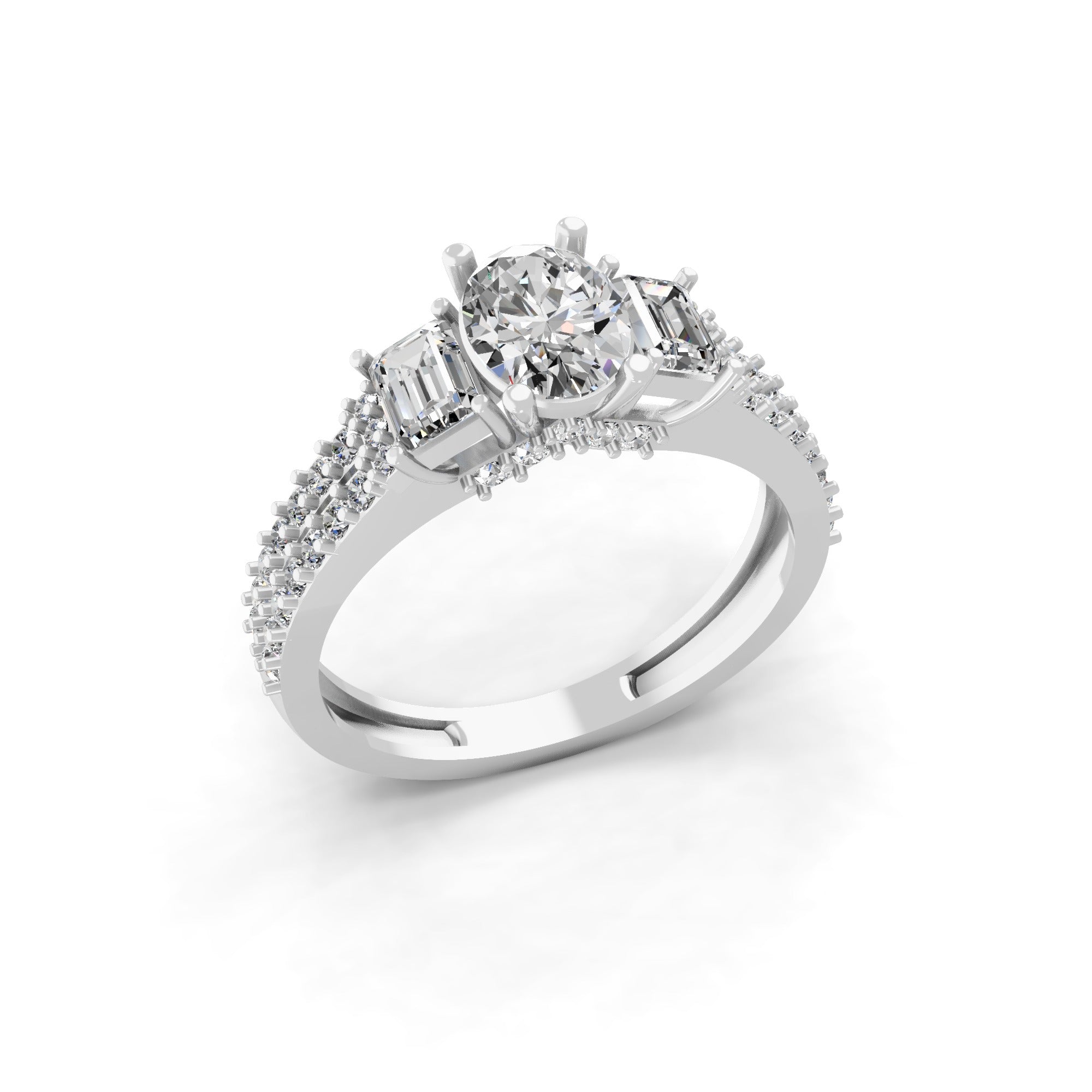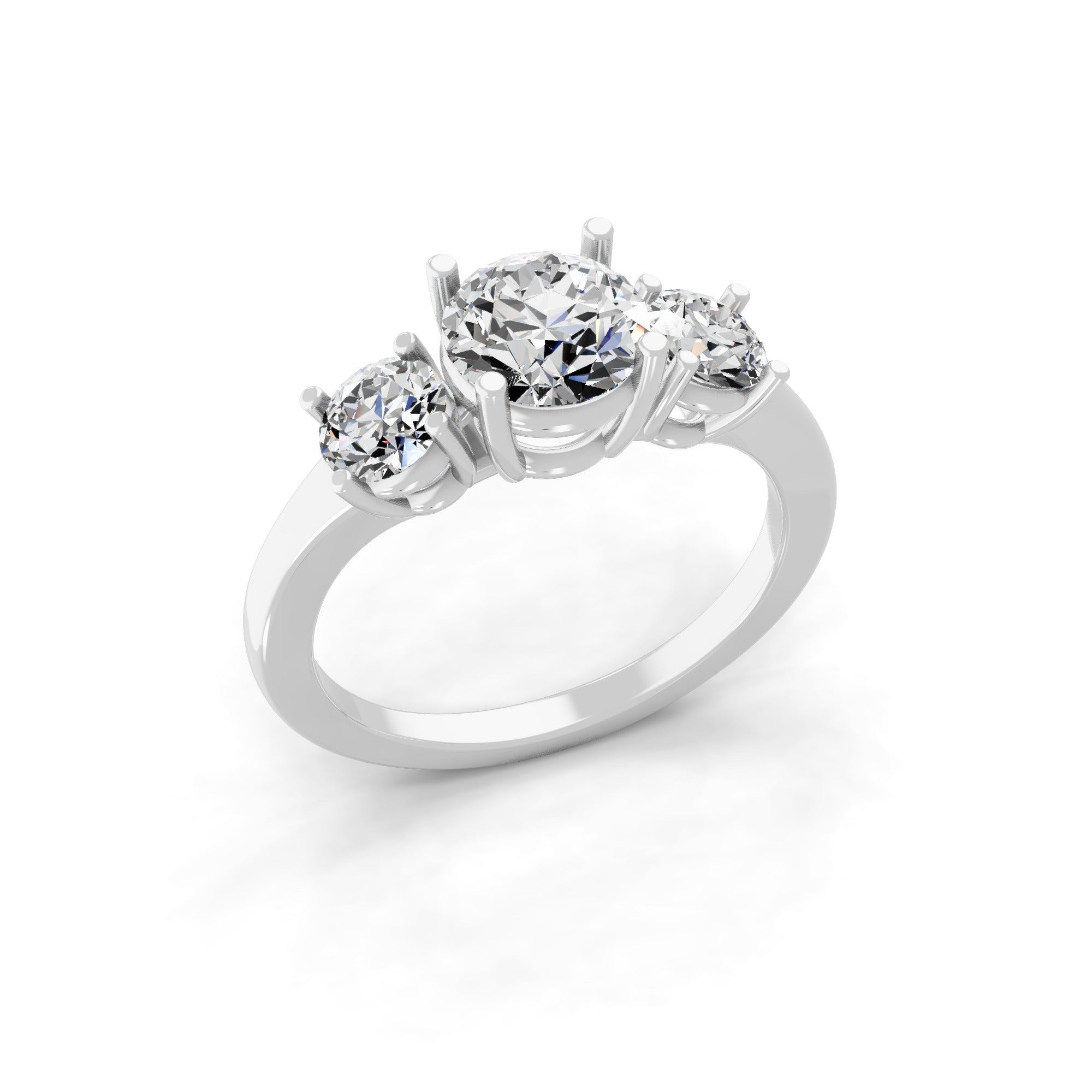 14K Fine Gold Three Stone Lab Grown Diamond 1.70Ct Engagement Ring