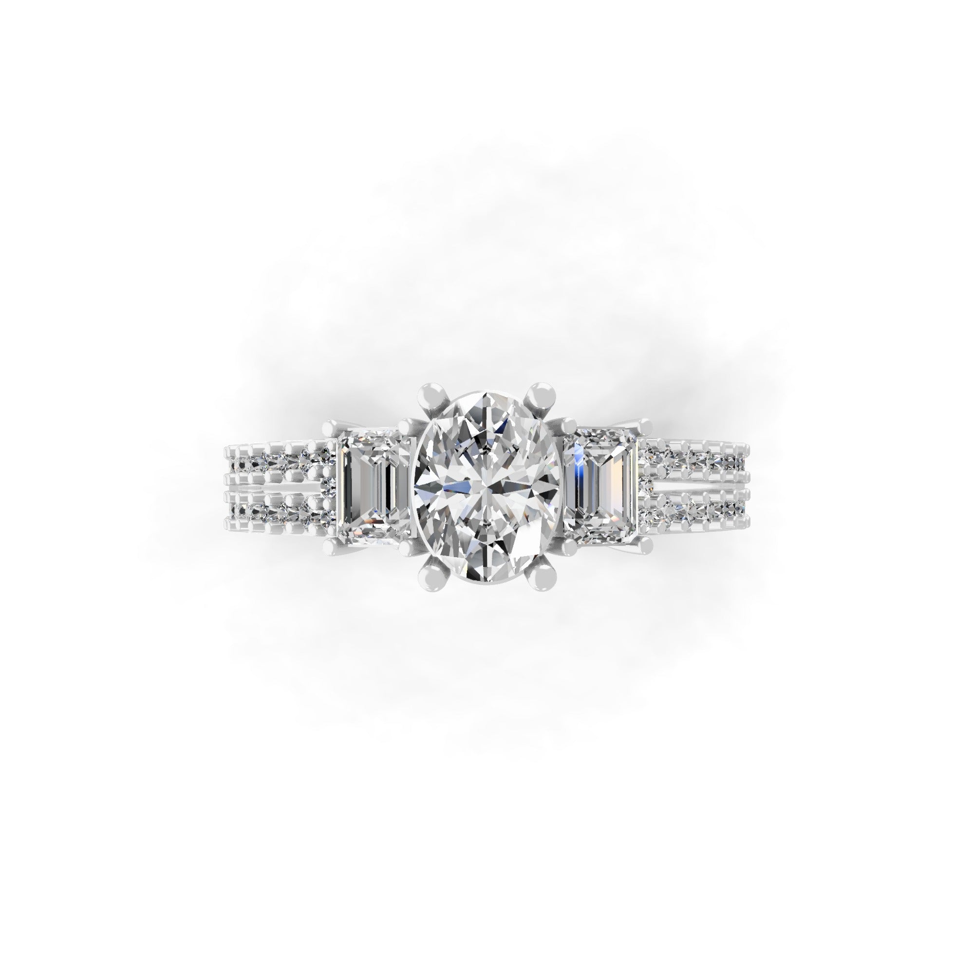 Round and Oval Cut Lab Grown Diamond Engagement Ring 1.87Ct 14K Fine Gold