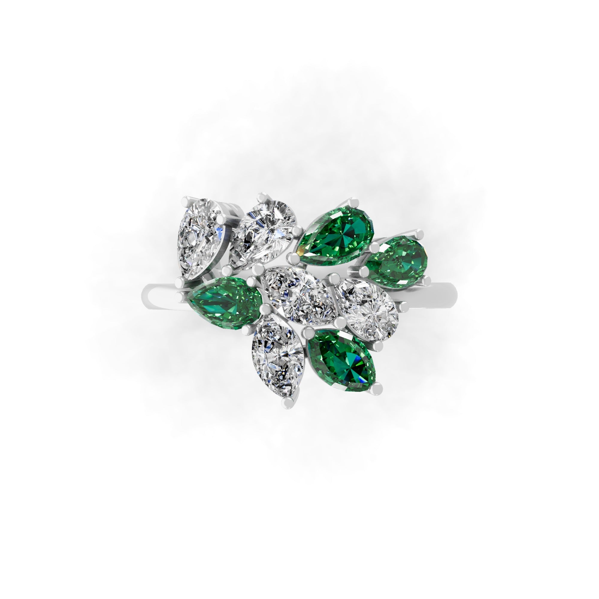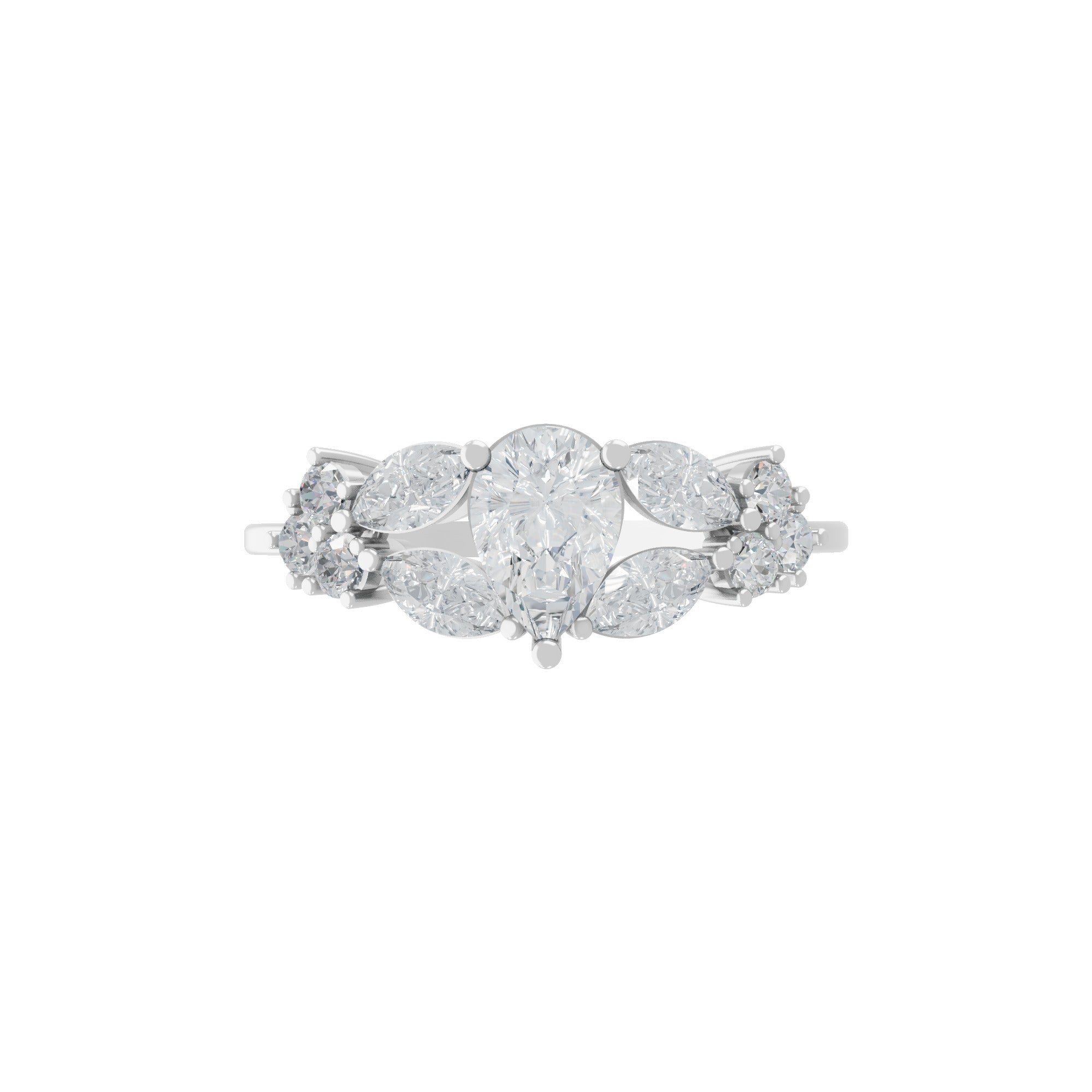 14K Fine Gold Pear Shape 1.05Ct Lab Grown Diamond Cluster Band Ring