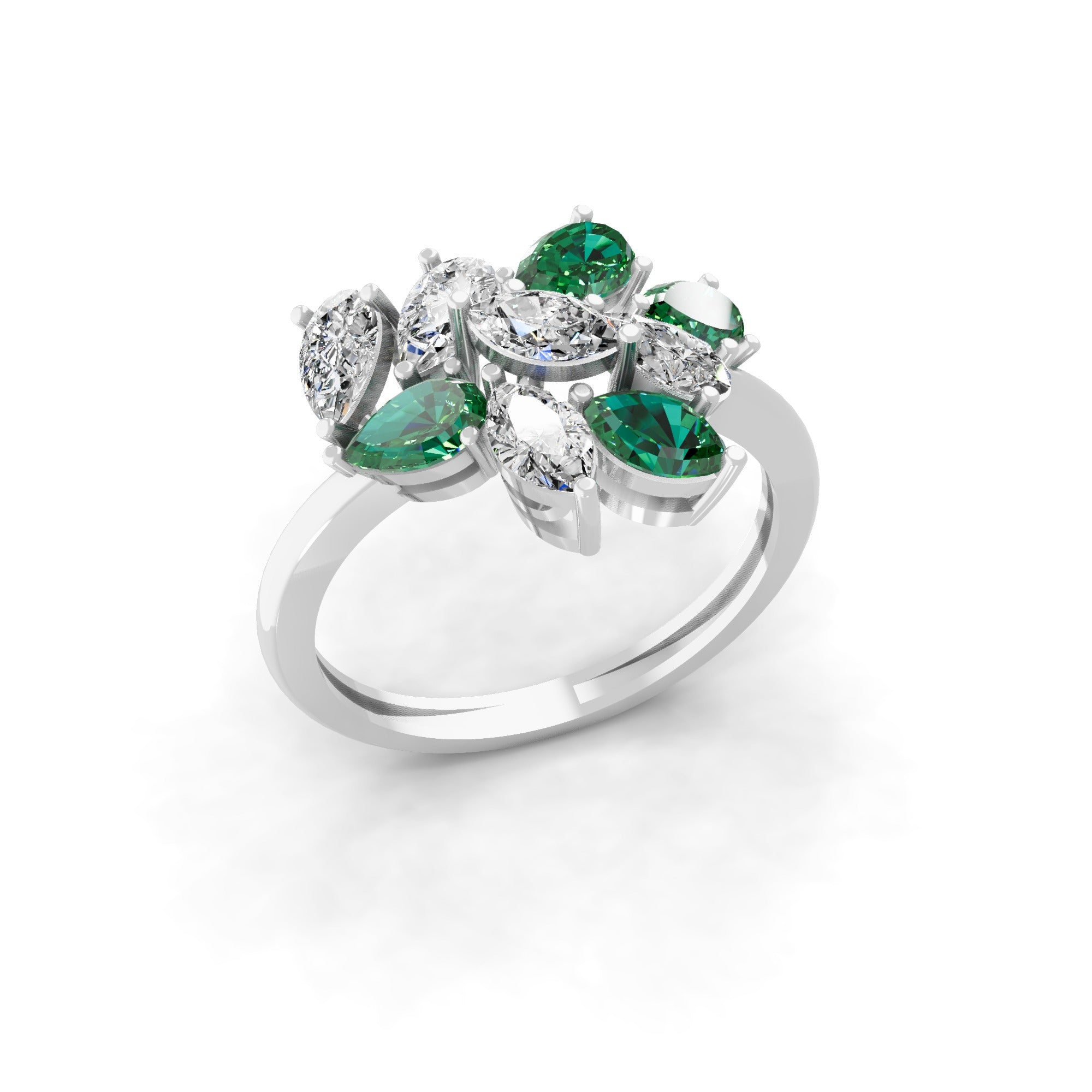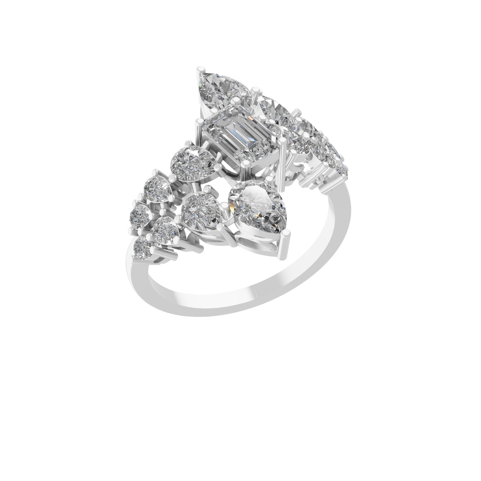Multi Stone Cut 1.35Ct Lab Grown Diamond Ring 14K Fine Gold