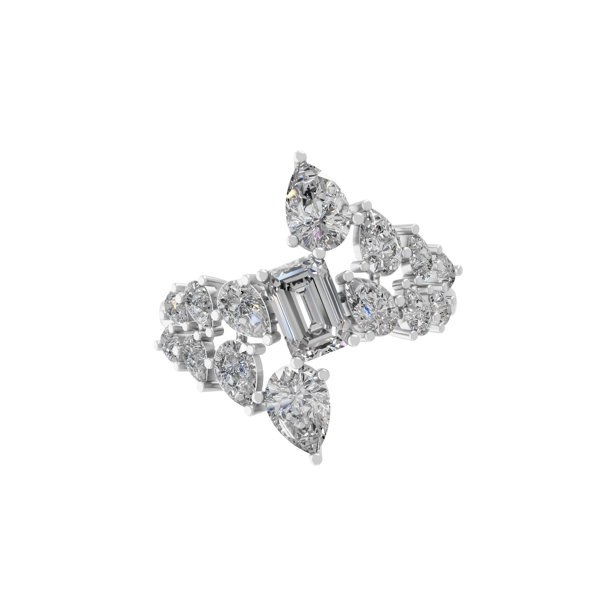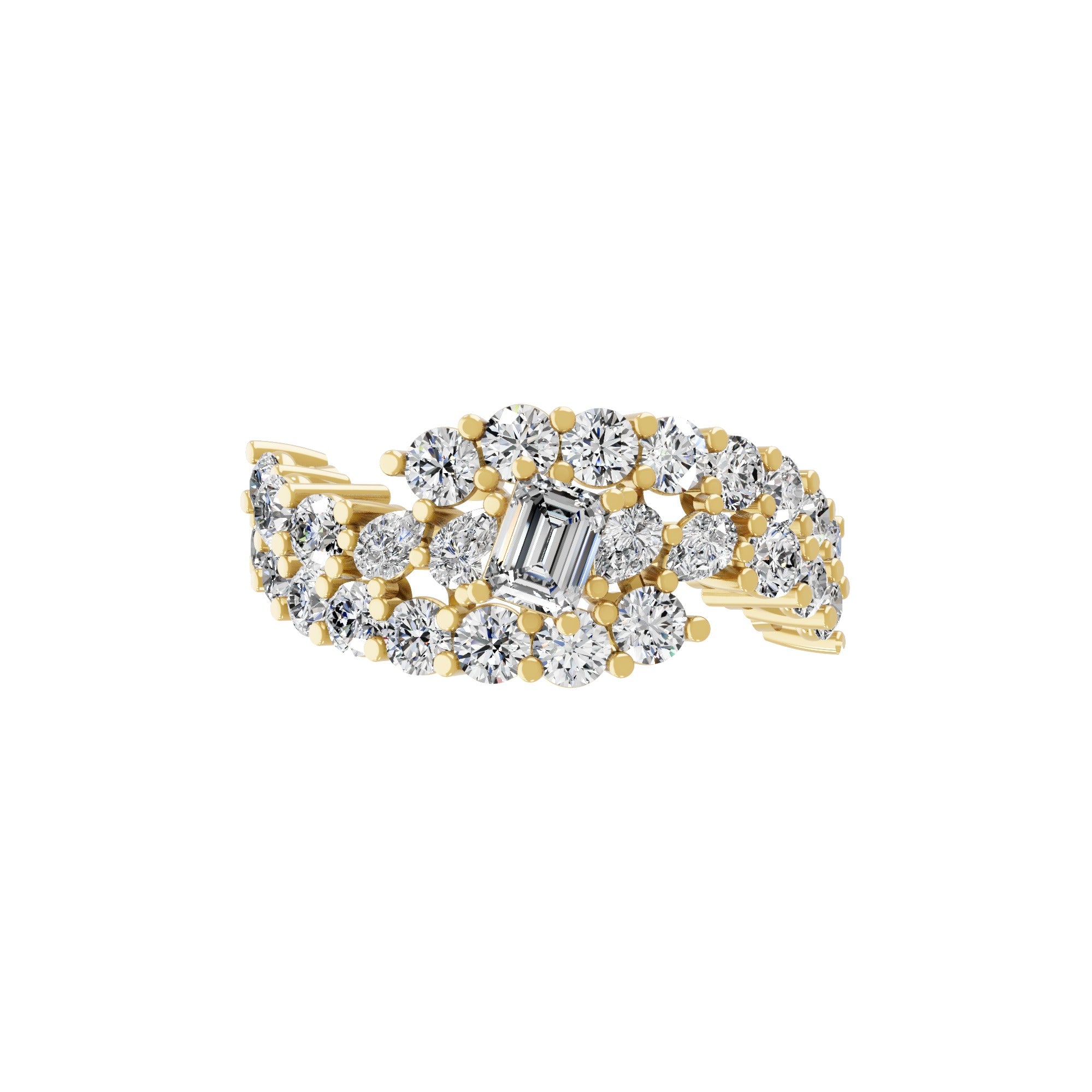 Multi Stone Cut 0.62Ct Lab Grown Diamond Ring 14K Fine Gold