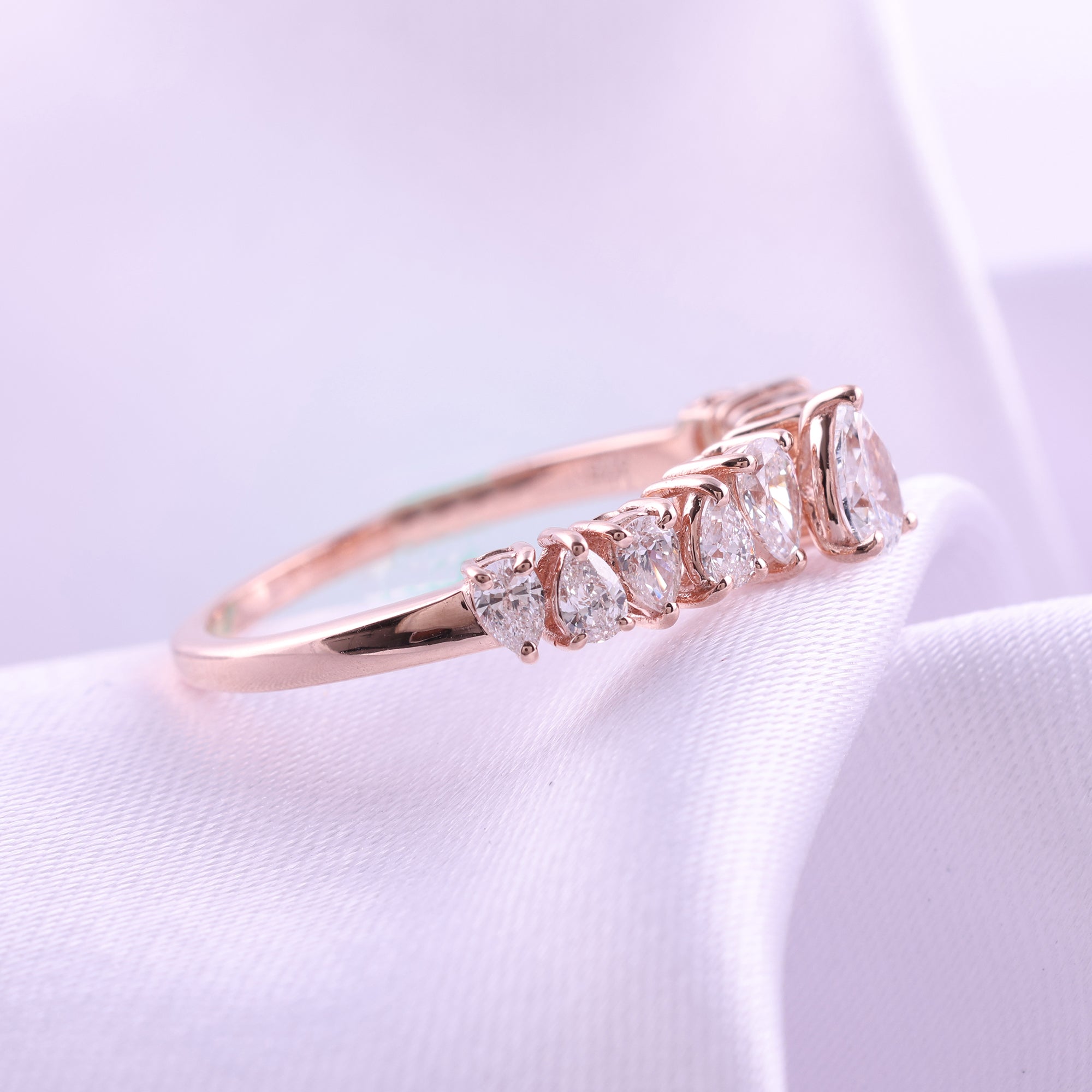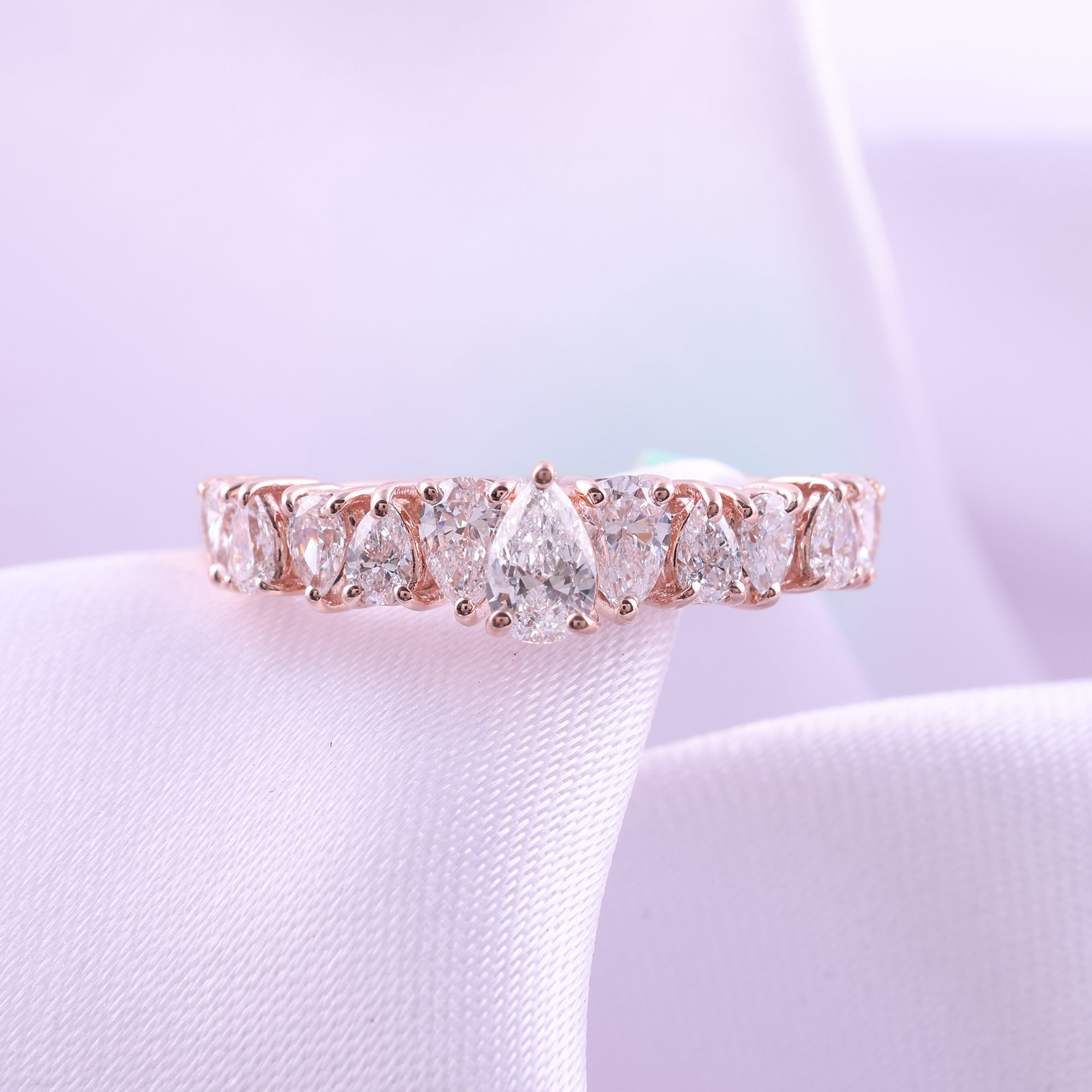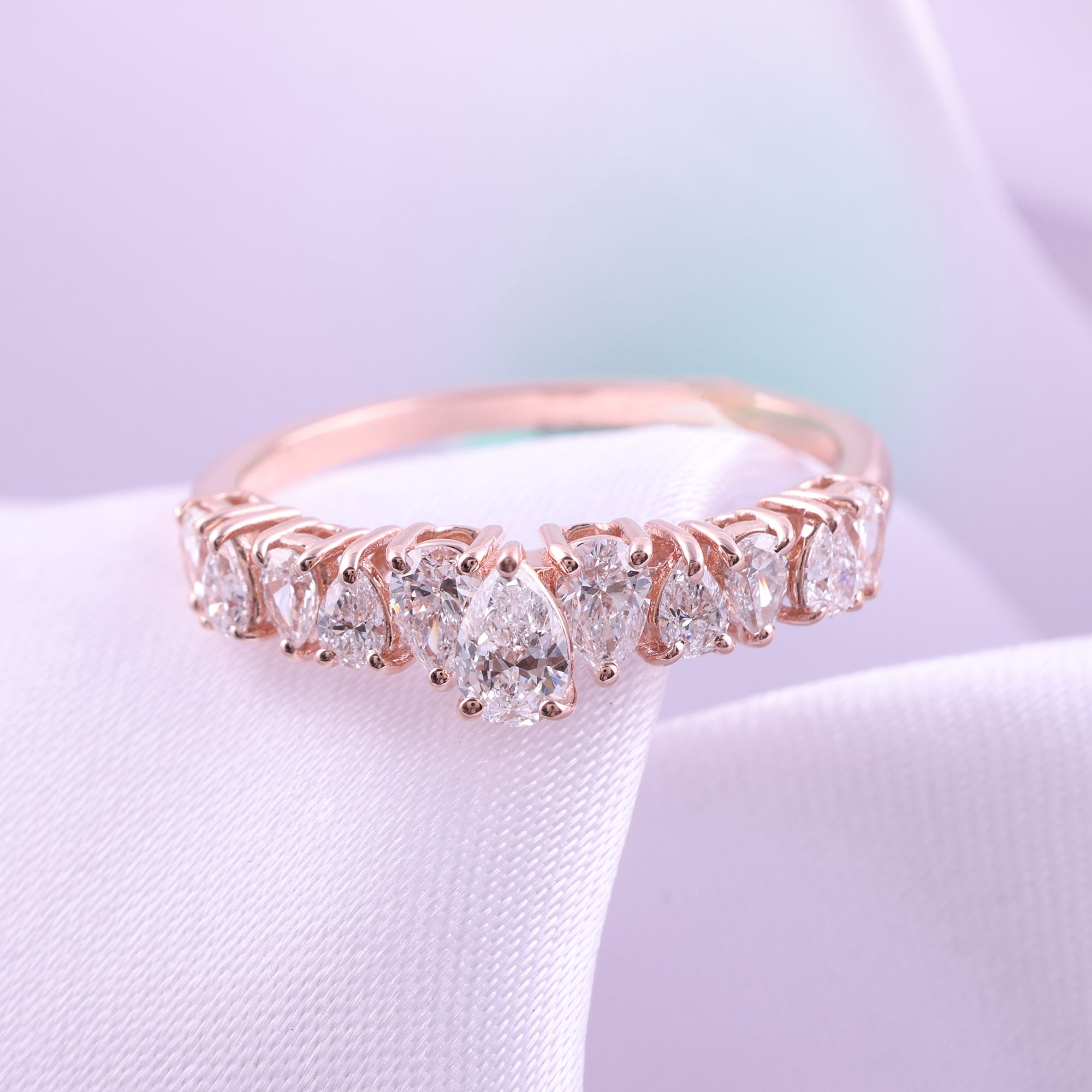 14K Fine Gold Pear Shape 1.10Ct Lab Grown Diamond Cluster Band Ring