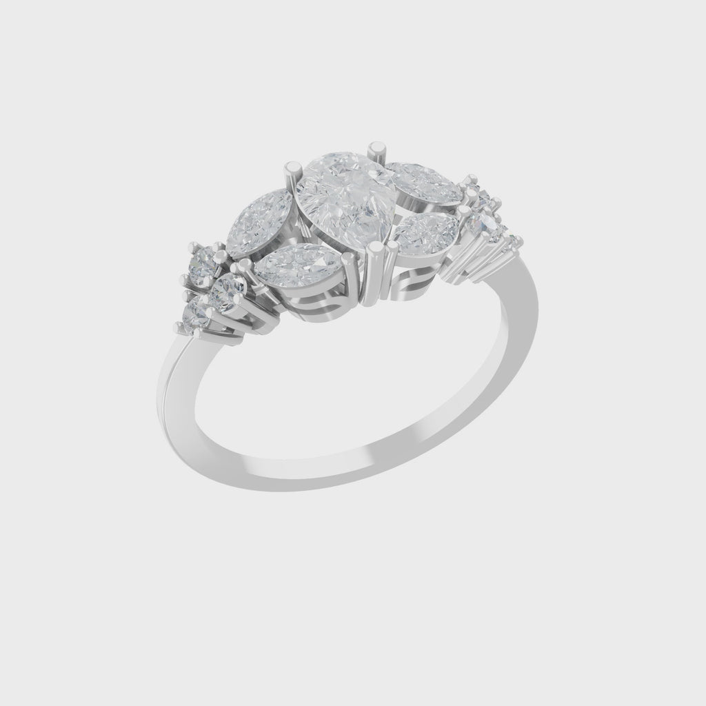 Multi Stone Cut 1.35Ct Lab Grown Diamond Ring 14K Fine Gold