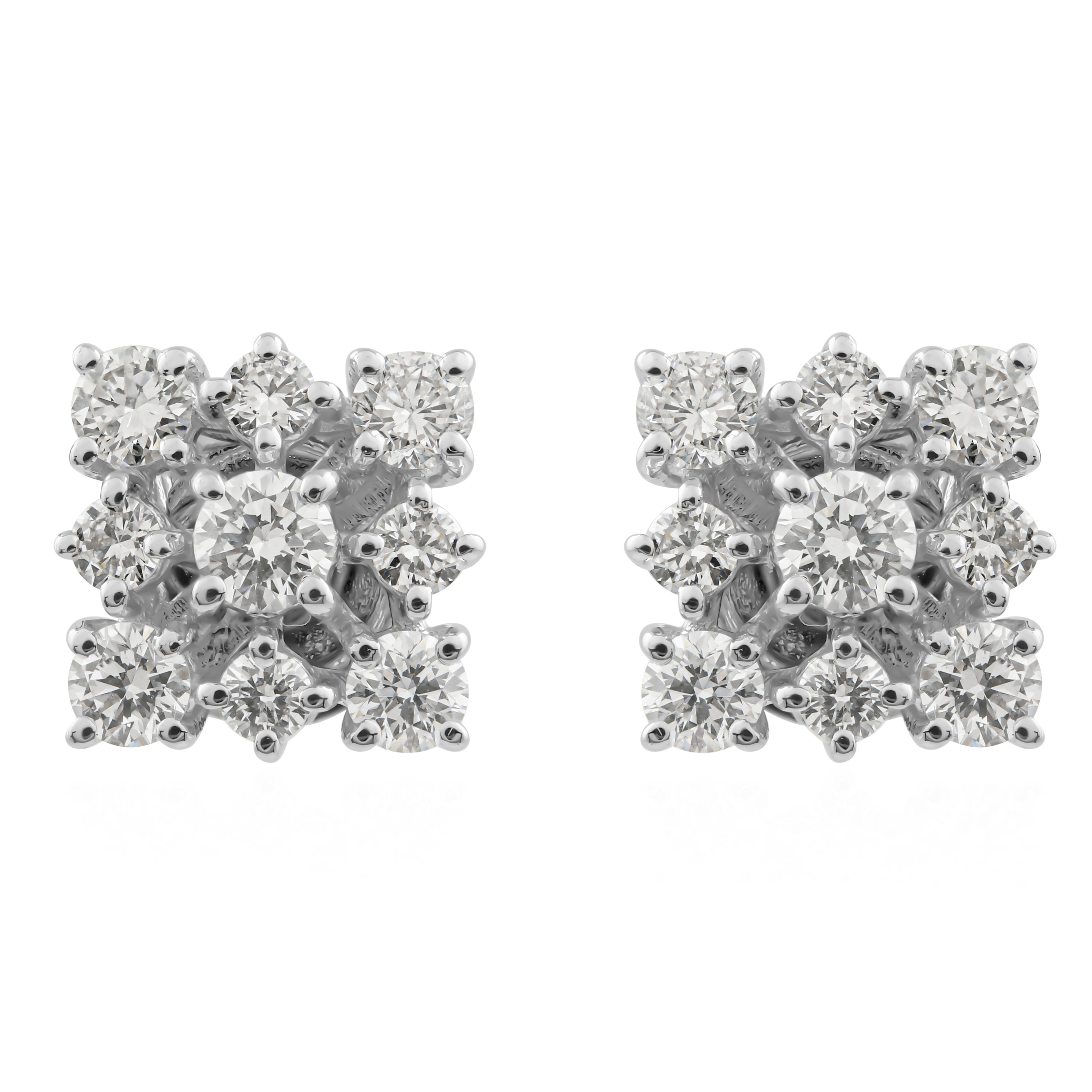 Seven Stone Cluster Stud Earrings Lab Grown Diamond 14K Fine Gold 0.78Ct