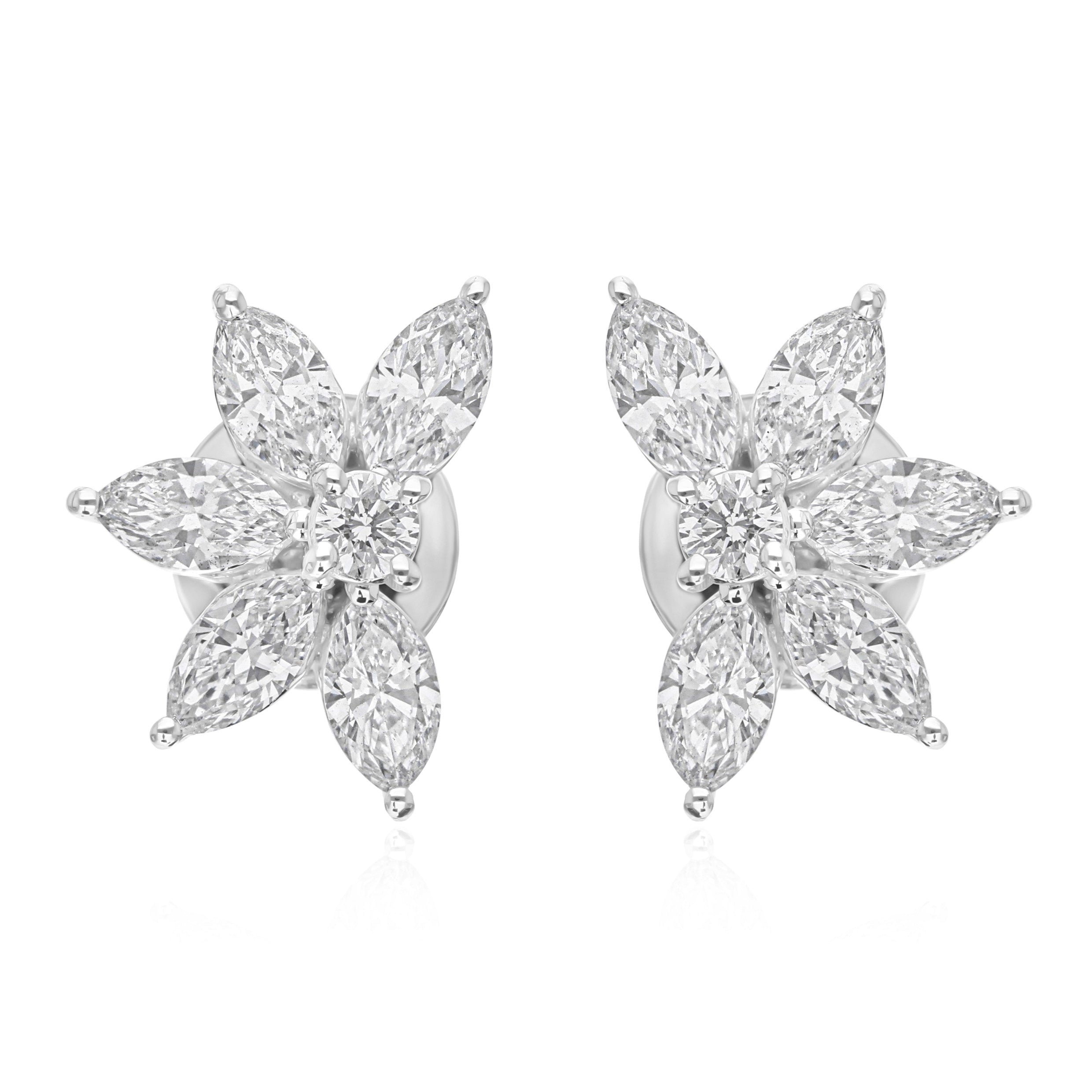 Floral Cluster Stud Earrings Lab Grown 2.07Ct Diamond 14K Fine Gold