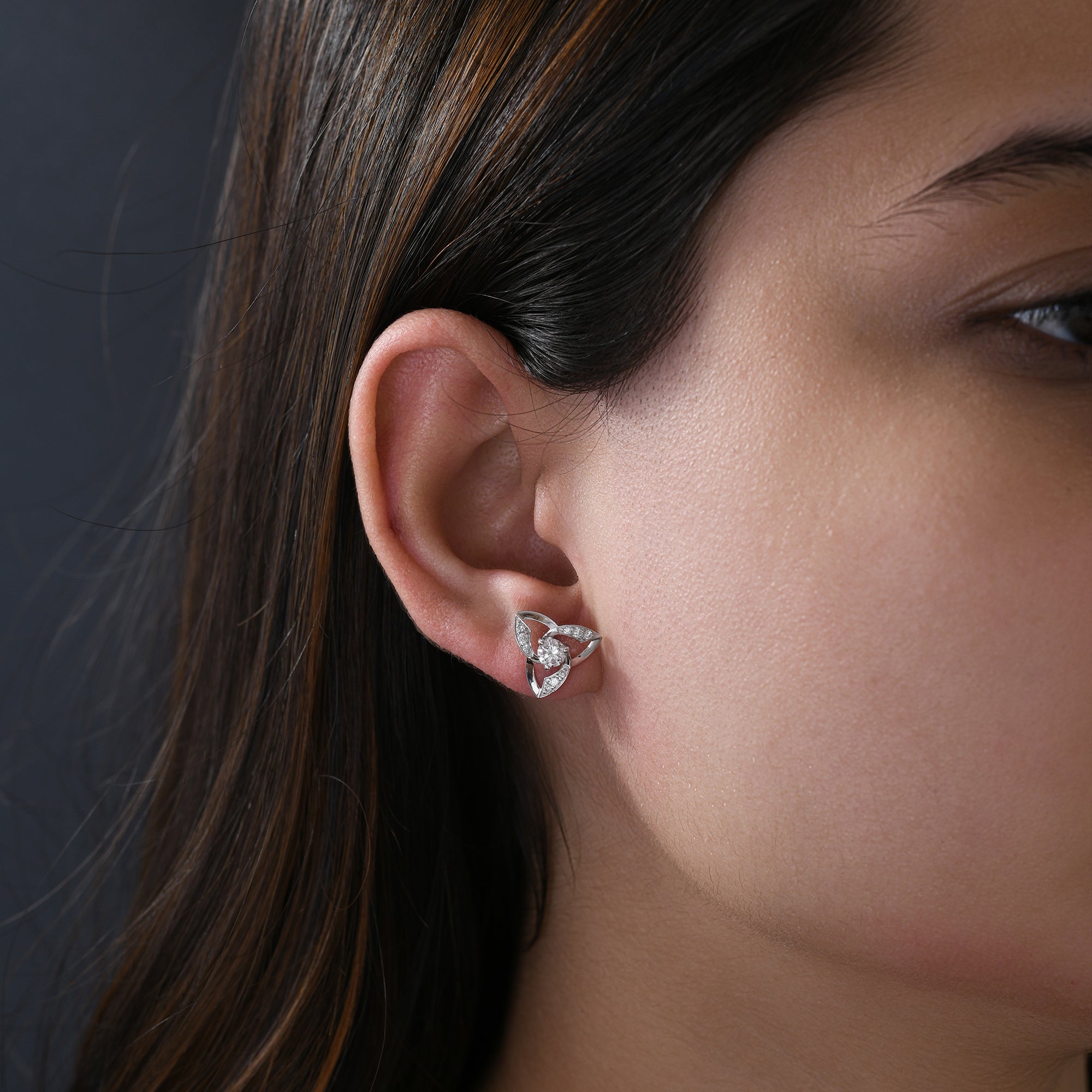 14K Fine Gold Trilogy Melody Stud Earrings Lab Grown Diamond 1.18Ct