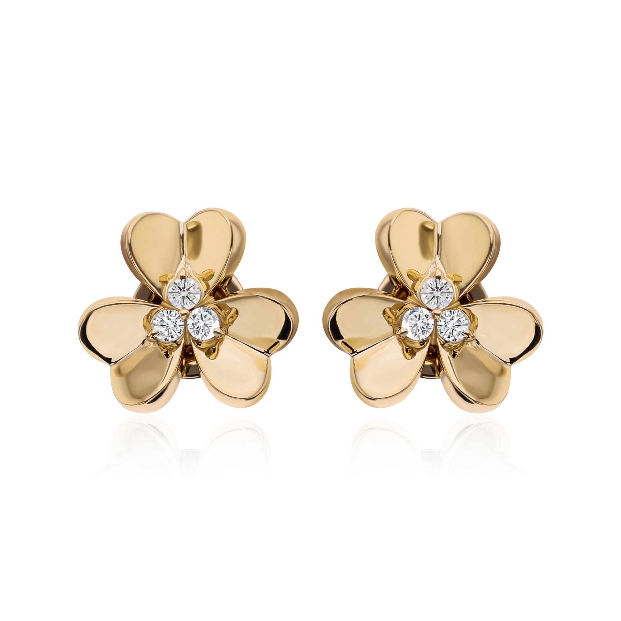 Three Clover Leaf Stud Earrings 14K Fine Gold 0.99Ct Lab Grown Diamond