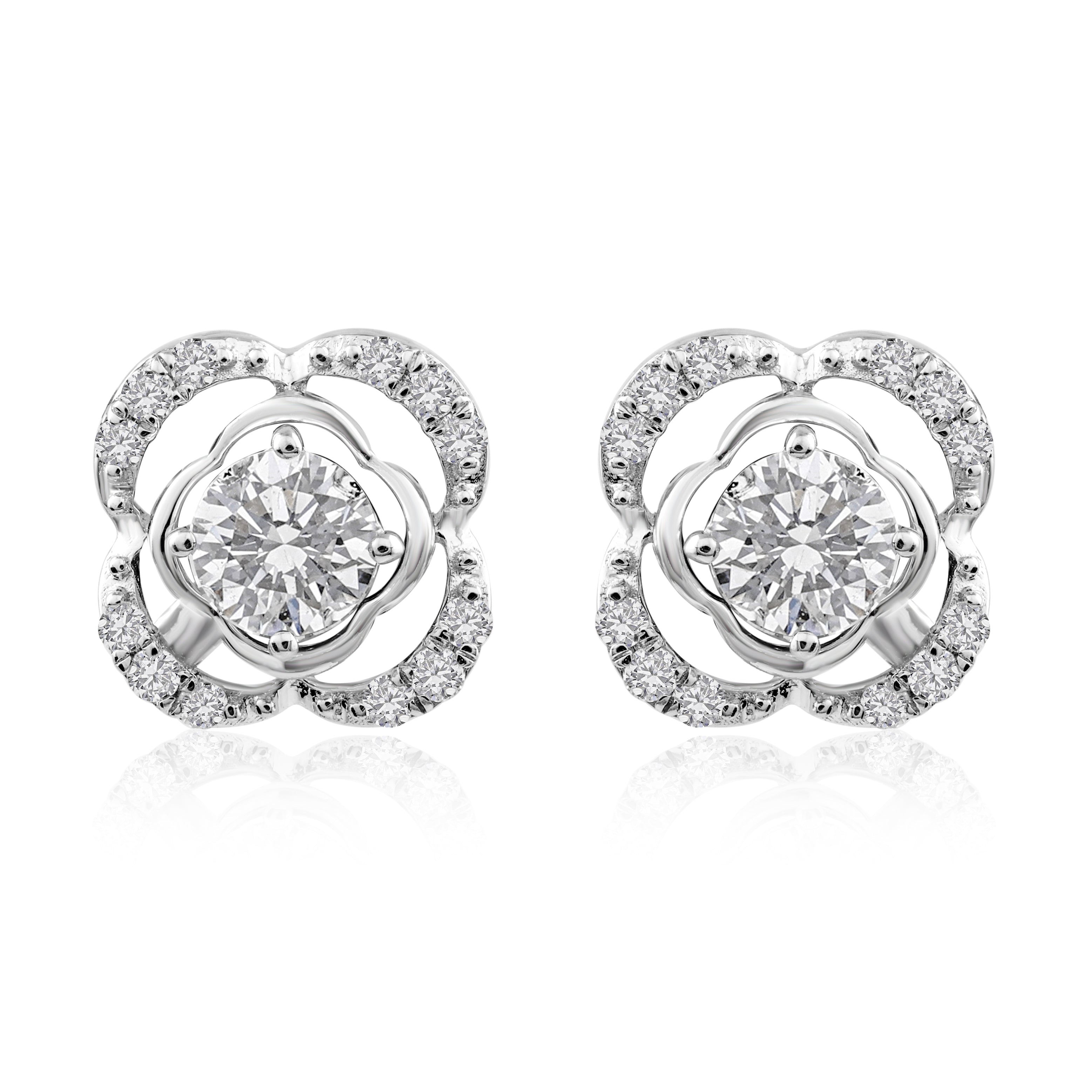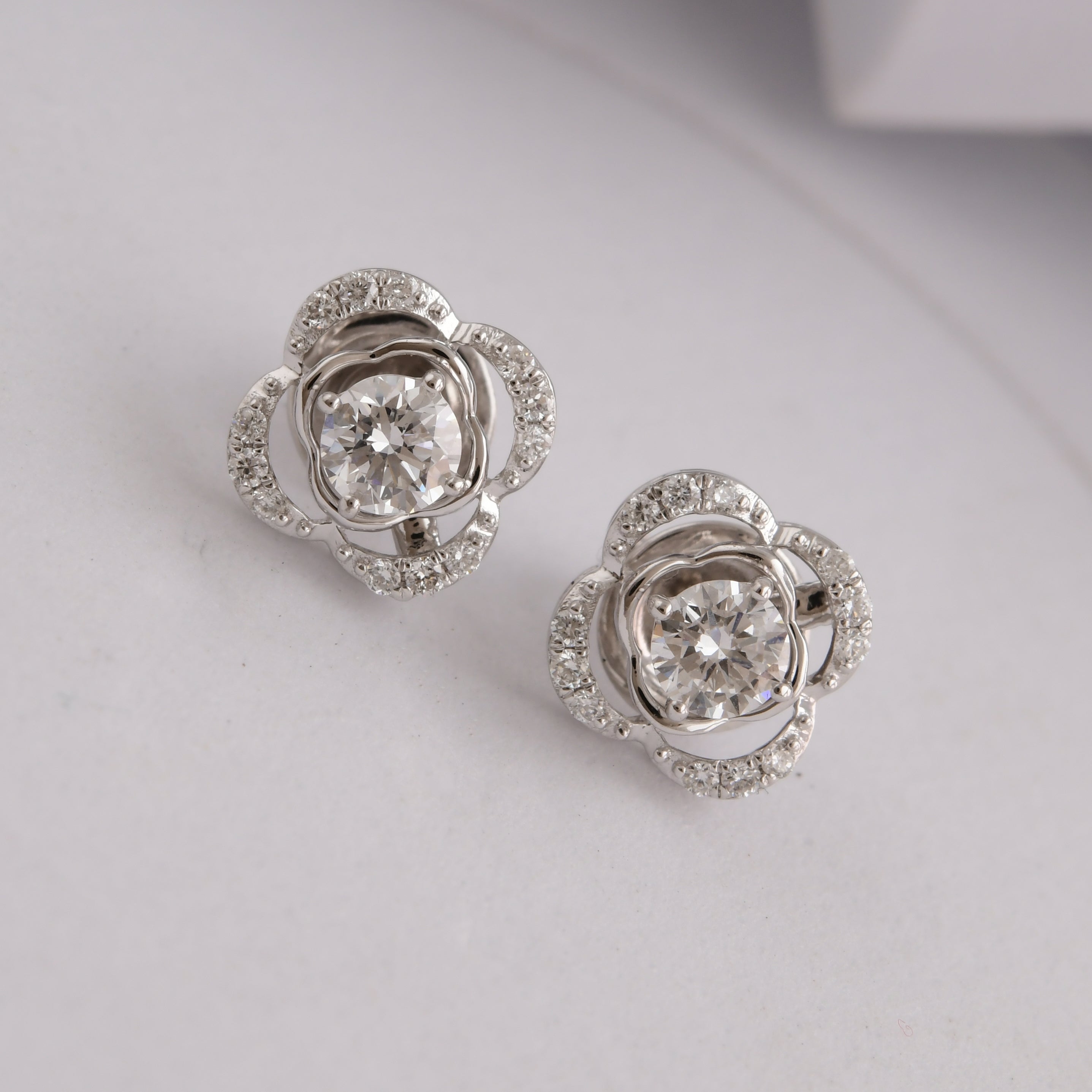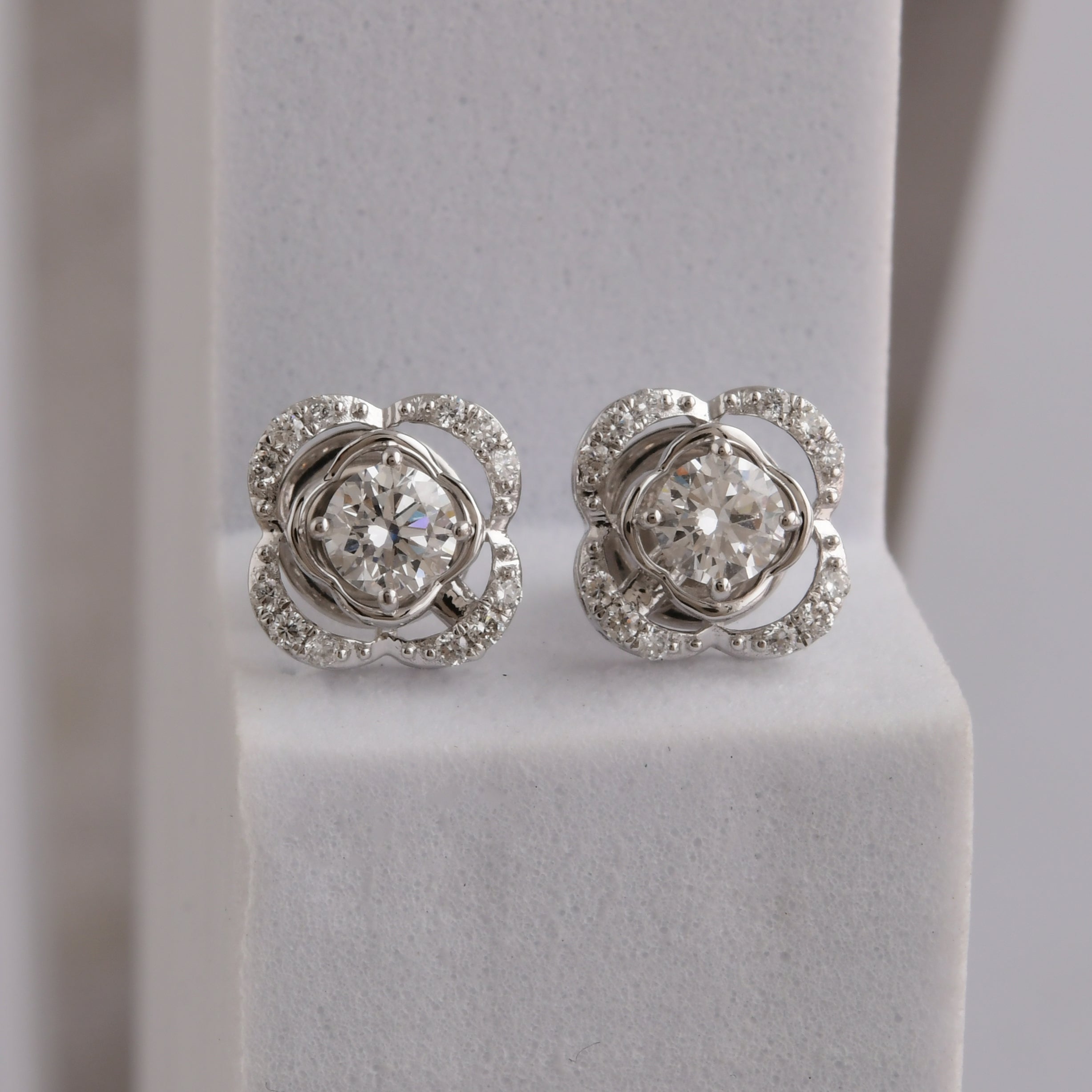 Floral inspired Lab Grown Diamond Stud Earrings 0.93Ct 14K Fine Gold