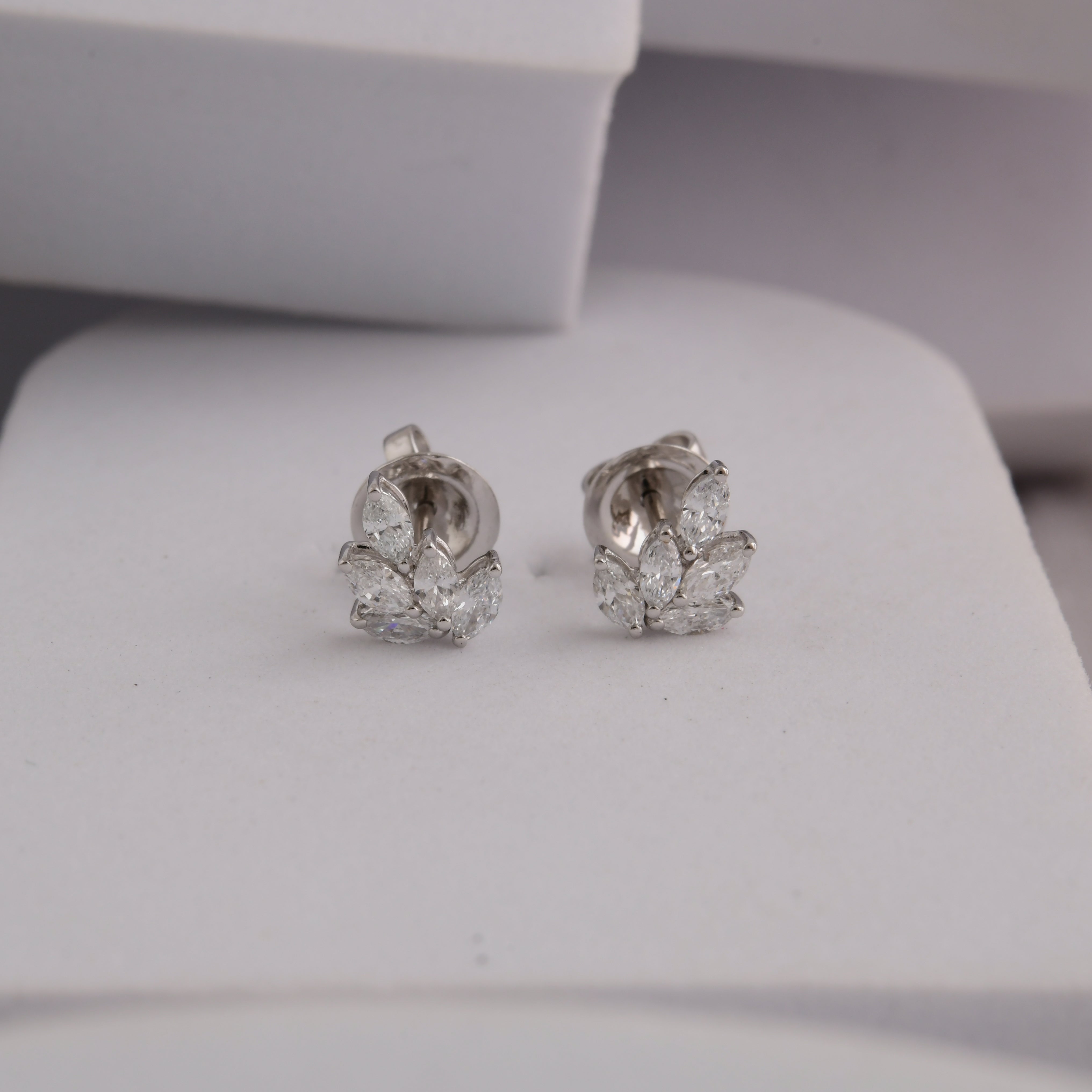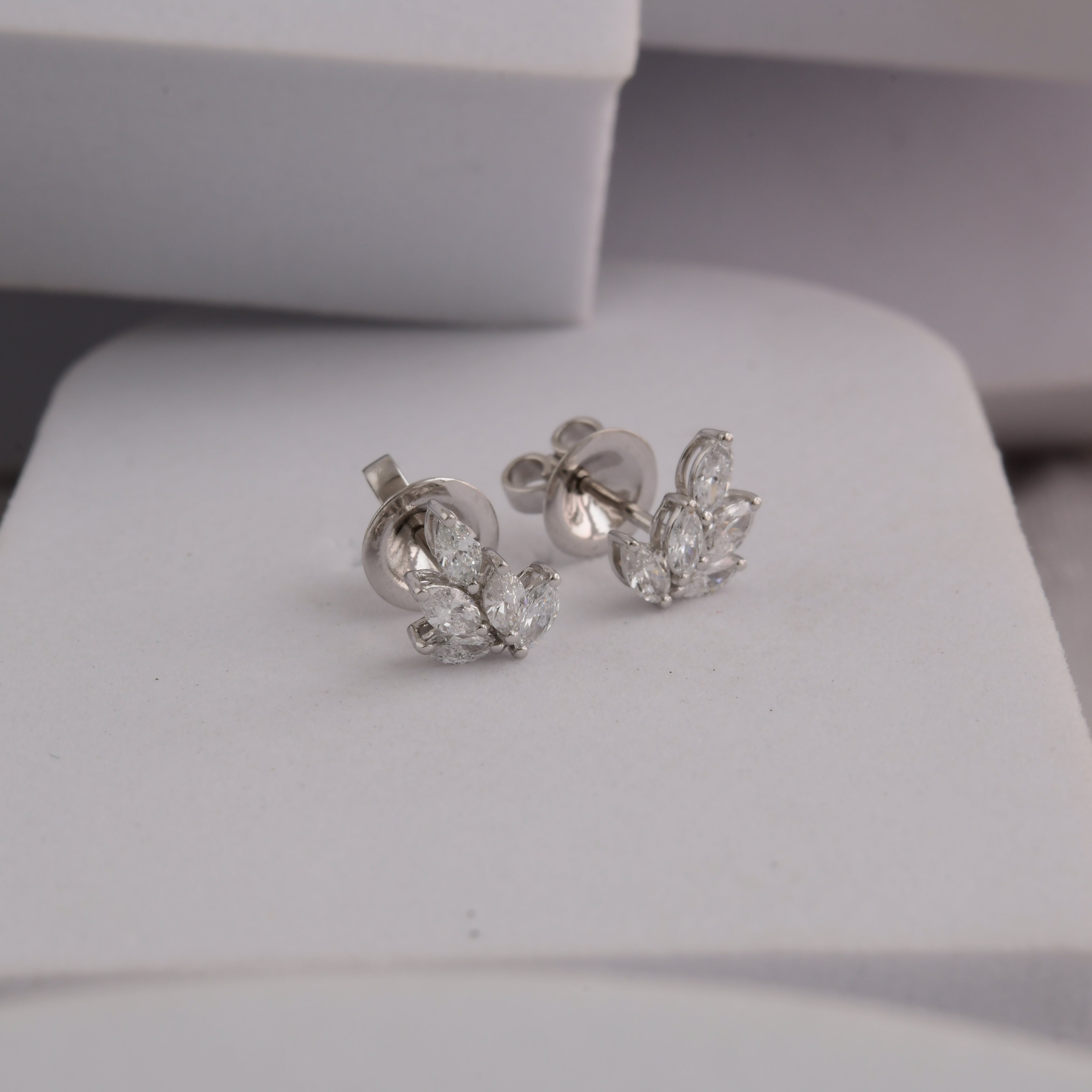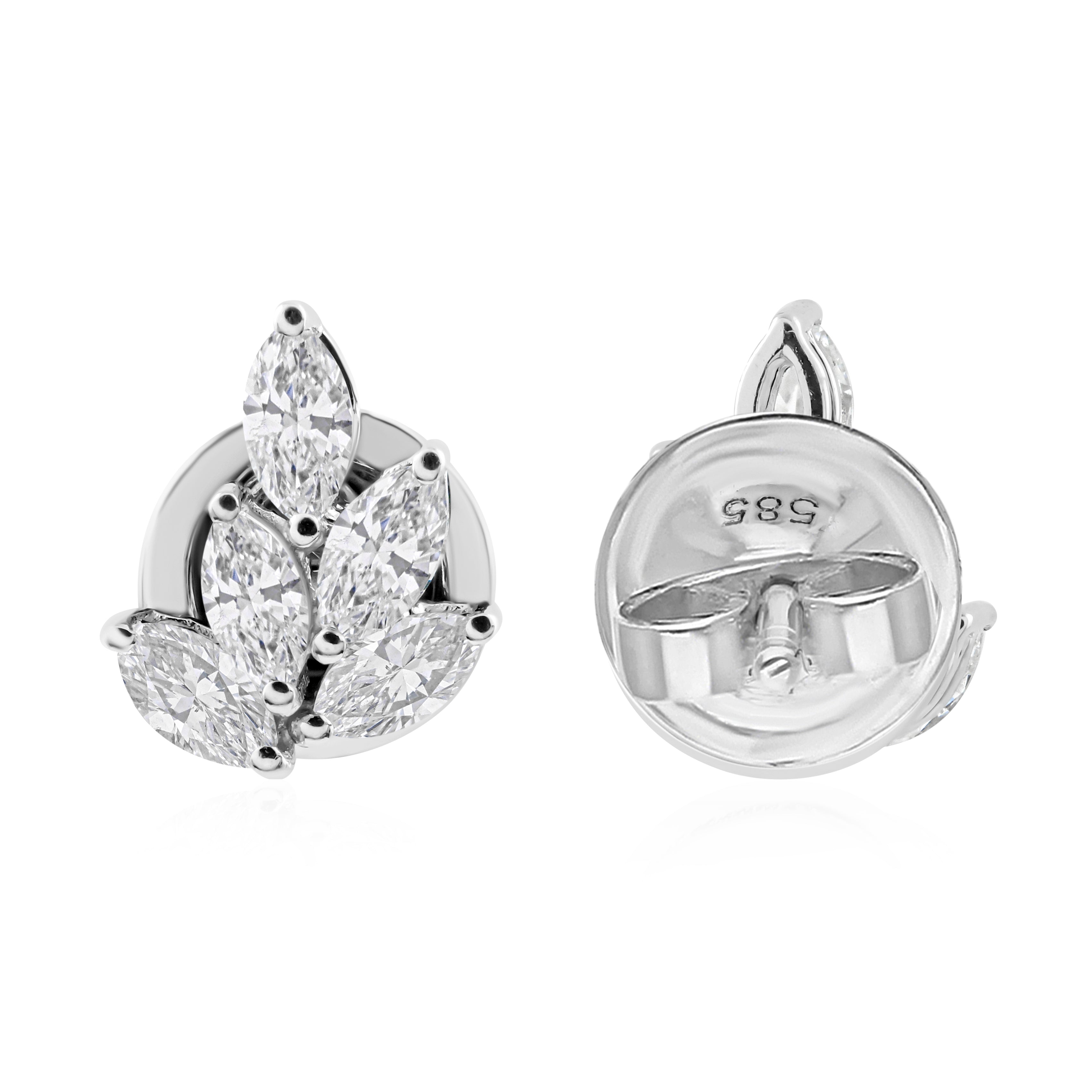 Lab Grown Diamond 14K Fine Gold Cluster Marquise Cut 1.00Ct Stud Earrings